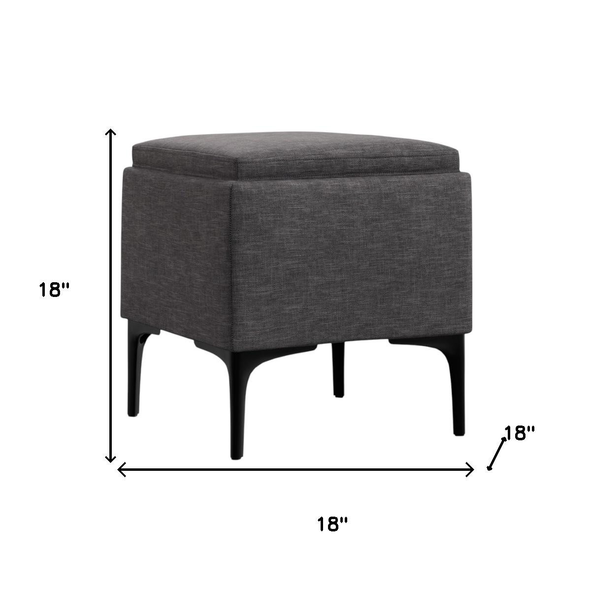 Optimize your space and add some charm to your room with the 18-inch black and slate gray upholstery storage ottoman. Designed to discretely add hidden storage to your room without sacrificing seating or foot rest space. This multi-function ottoman features a cabinet area in addition to seating to help keep your space neat and tidy. Easy to blend into most any room, a ottoman is a way to add a good looking accent to your space that can also be practical and useful. 18.00-inch h x 18.00-inch w x 18.00-inch d.