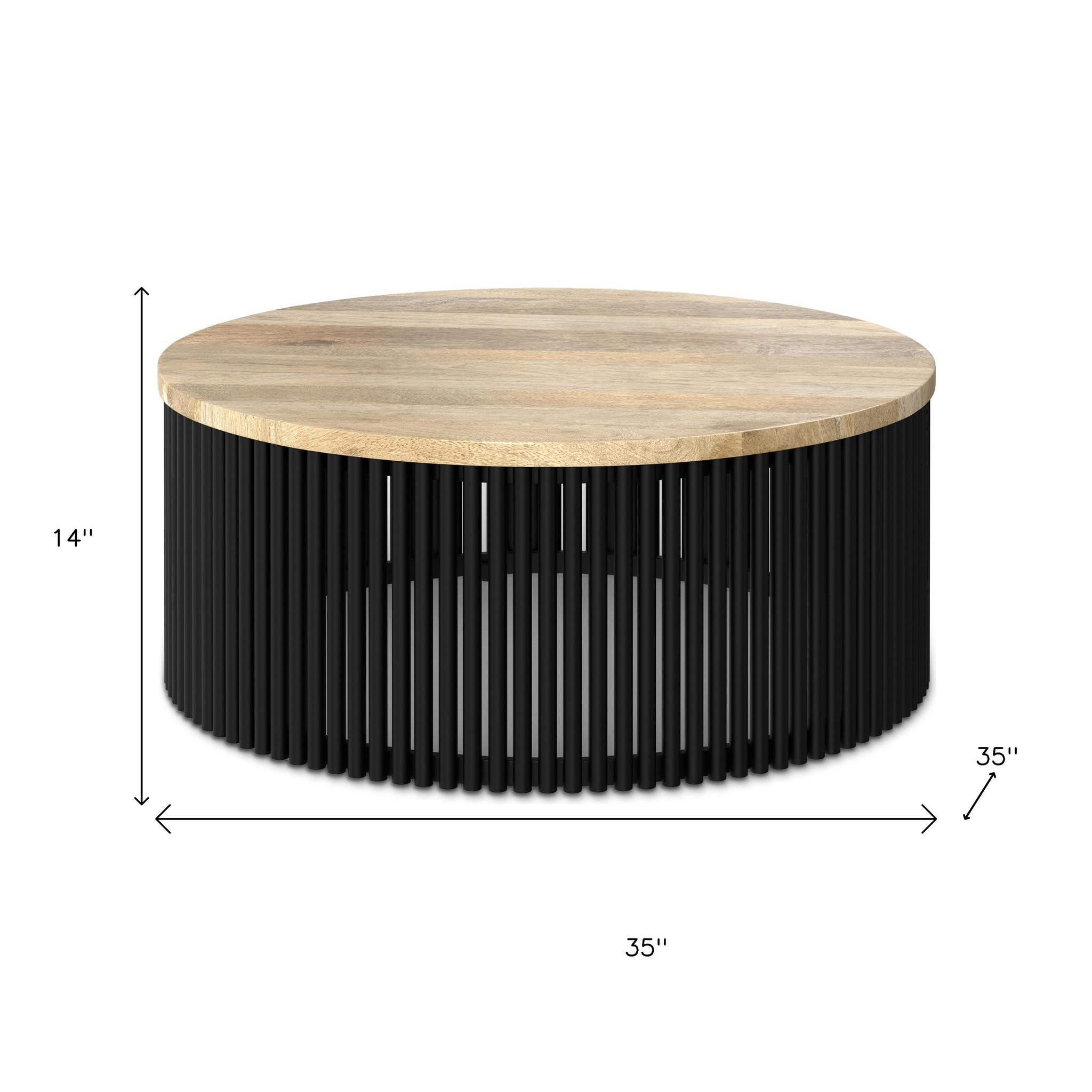 wood round solid coffee table, solid coffee table, round solid coffee table, solid wood round solid coffee, 35" black solid wood round |