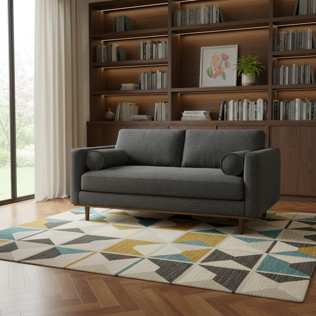 Add an air of fashion to your space with this fabulous 72-inch gray fabric sofa with brown legs. Solid colors give you lots of decorative options and are easy to work into your decor scheme. Web suspension construction gives this piece strong support and makes it comfortable to sit even for long periods of time. Removable back cushions make this sofa easy to manage. Fixed arms offer a comfy place to rest. Built to last, this sofa will be a great centerpiece for your room. 34.00-inch h x 72.00-inch w x 38.20-inch d.