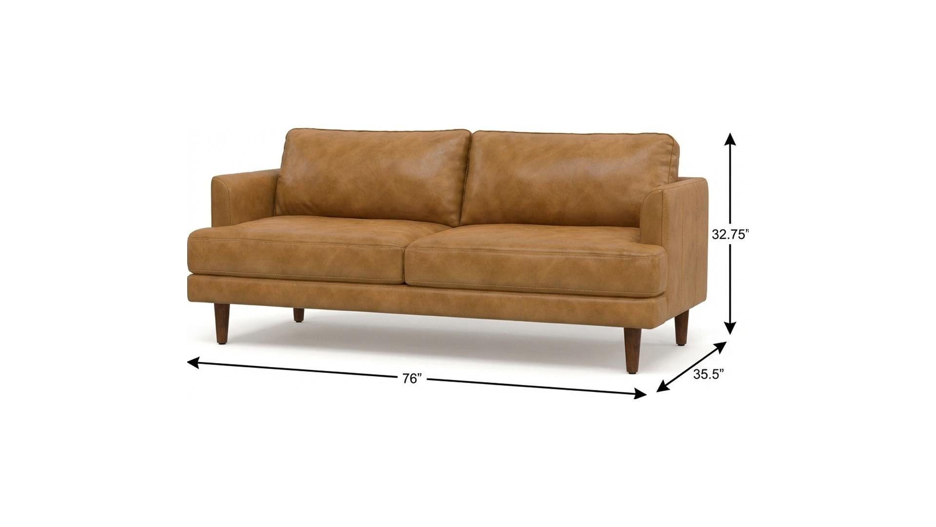 Made of the highest quality, supple leather, this 76-inch sienna leather sofa with brown legs will be the star of your space. The high grade premium leather used makes your lounging luxuriously comfortable and adds an elegant appeal to your space. Solid colors give you lots of decorative options and are easy to work into your decor scheme. Web suspension construction gives this piece strong support and makes it comfortable to sit even for long periods of time. Removable back cushions make this sofa easy to manage. Fixed arms offer a comfy place to rest. A great showpiece for your room, this sofa is a must have. 32.75-inch h x 76.00-inch w x 35.50-inch d.