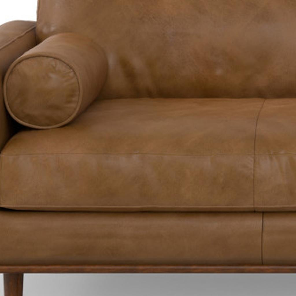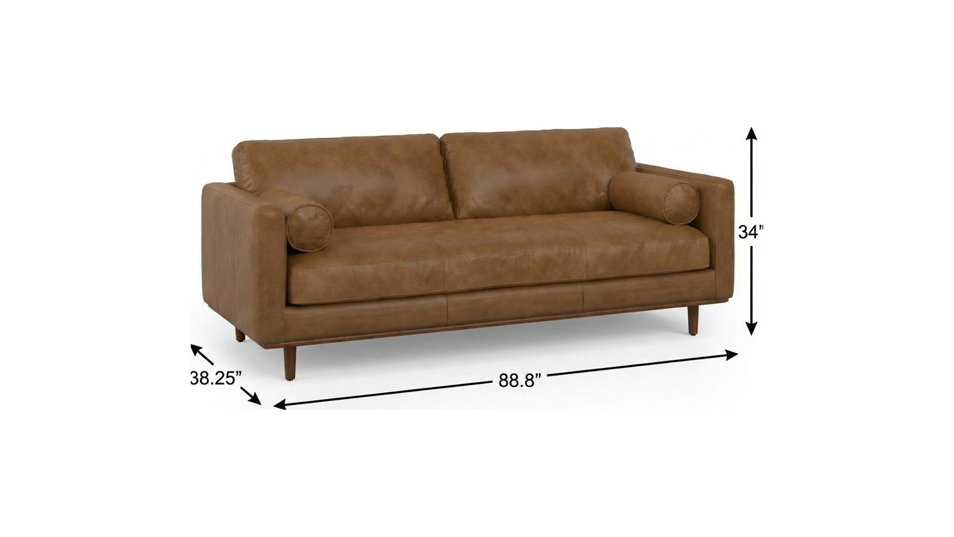 Superior construction from fabulously soft and high grade leather gives this 89-inch brown leather sofa a leg up on the competition. The premium leather used makes your lounging luxuriously comfortable and adds an elegant appeal to your space. Solid colors give you lots of decorative options and are easy to work into your decor scheme. Web suspension construction gives this piece strong support and makes it comfortable to sit even for long periods of time. Removable back cushions make this sofa easy to manage. Fixed arms offer a comfy place to rest. A great showpiece for your room, this sofa is a must have. 34.00-inch h x 88.80-inch w x 38.25-inch d.