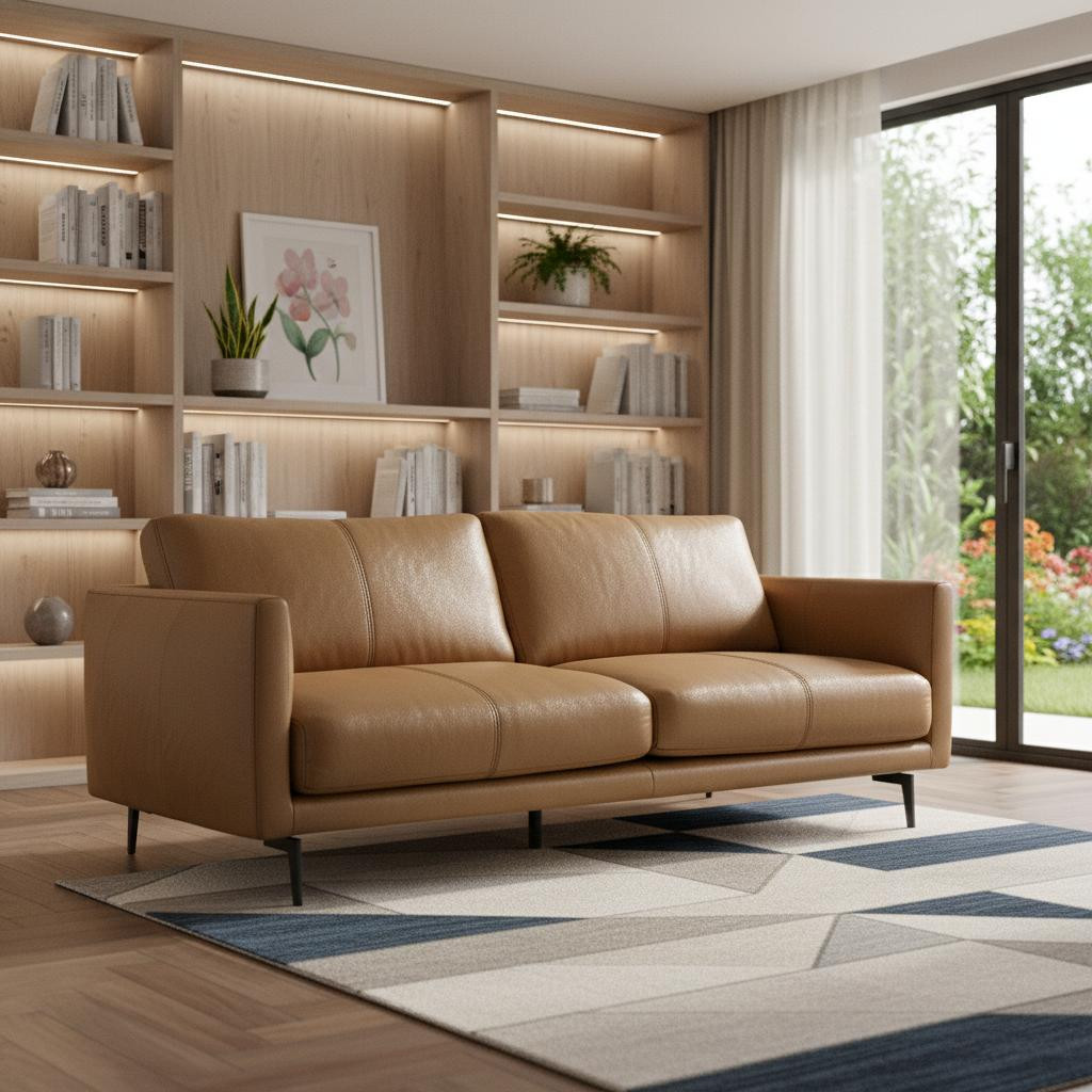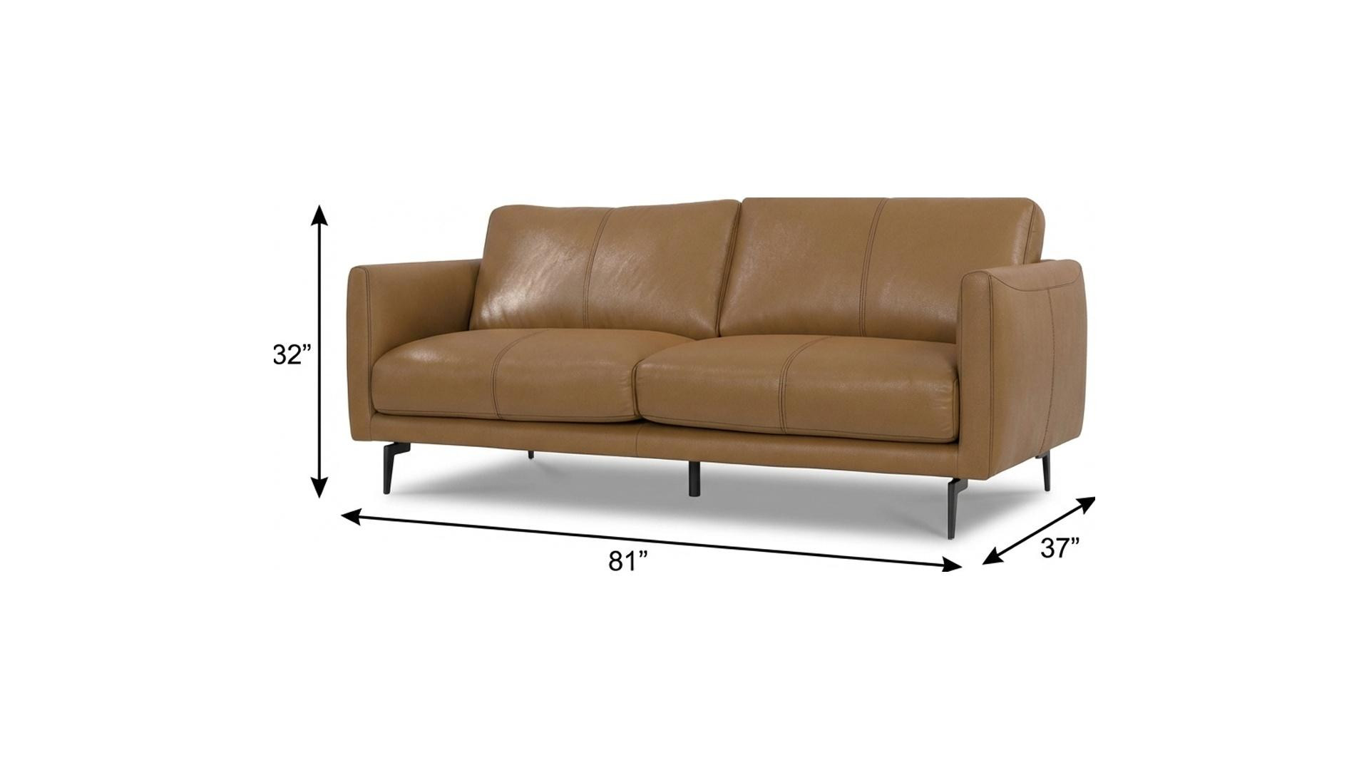 Made of the highest quality, supple leather, this 81-inch brown leather sofa with black legs will be the star of your space. The high grade premium leather used makes your lounging luxuriously comfortable and adds an elegant appeal to your space. Solid colors give you lots of decorative options and are easy to work into your decor scheme. Web suspension construction gives this piece strong support and makes it comfortable to sit even for long periods of time. Removable back cushions make this sofa easy to manage. Fixed arms offer a comfy place to rest. Black metal legs effortlessly elevate the room and add a touch of contemporary design. Built to last, this sofa will be a great centerpiece for your room. 32.00-inch h x 81.00-inch w x 37.00-inch d.