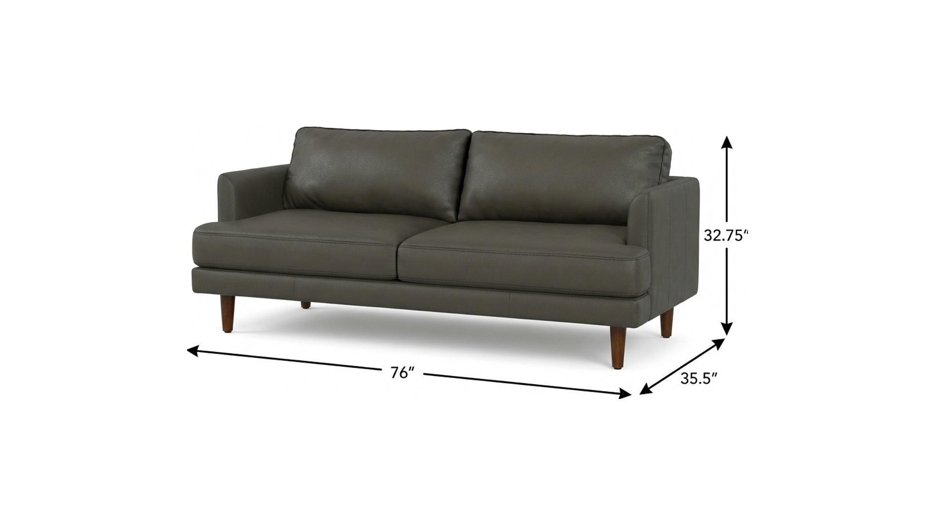 Made of the highest quality, supple leather, this 76-inch black leather sofa with brown legs will be the star of your space. The high grade premium leather used makes your lounging luxuriously comfortable and adds an elegant appeal to your space. Solid colors give you lots of decorative options and are easy to work into your decor scheme. Web suspension construction gives this piece strong support and makes it comfortable to sit even for long periods of time. Removable back cushions make this sofa easy to manage. Fixed arms offer a comfy place to rest. A great showpiece for your room, this sofa is a must have. 32.75-inch h x 76.00-inch w x 35.50-inch d.