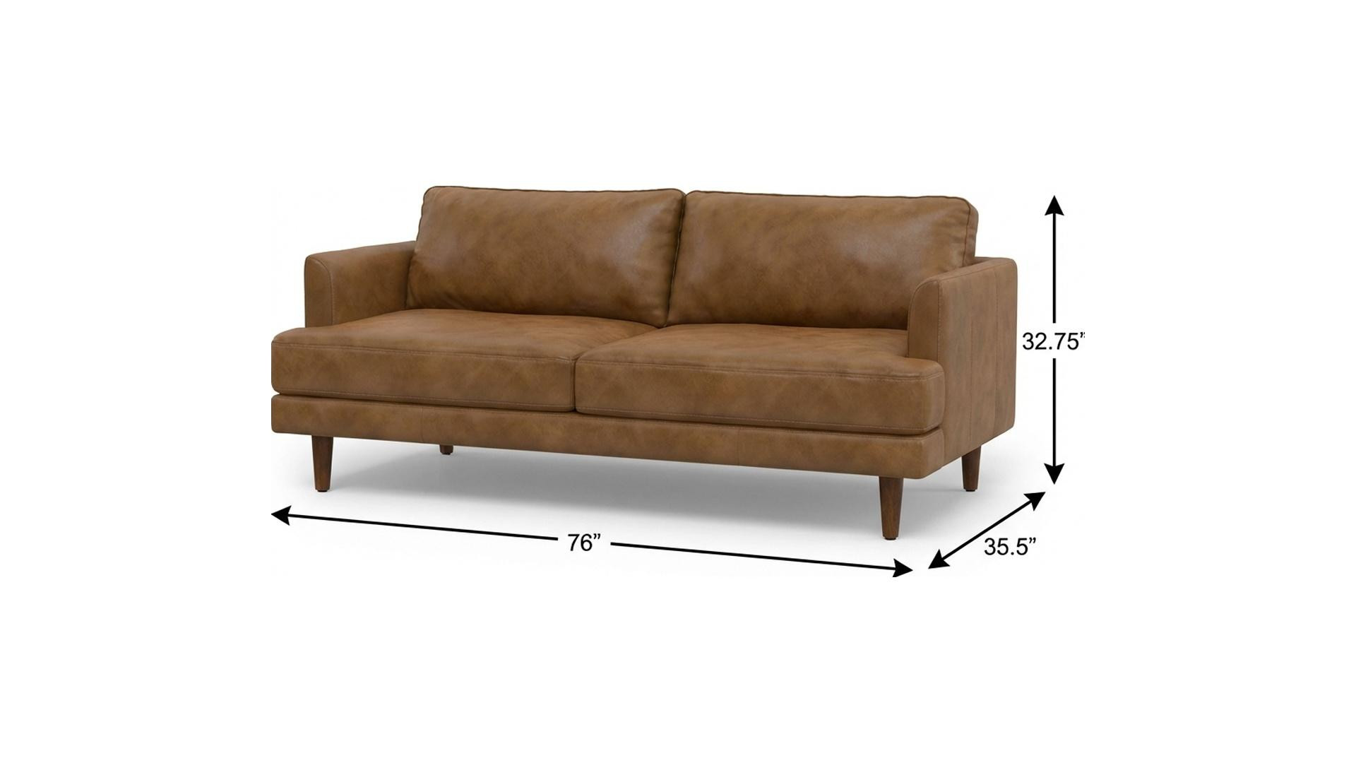 An interior designer's dream, this buttery soft high grade leather 76-inch brown leather sofa will bring just the right touch to your space. The premium leather used makes your lounging luxuriously comfortable and adds an elegant appeal to your space. Solid colors give you lots of decorative options and are easy to work into your decor scheme. Web suspension construction gives this piece strong support and makes it comfortable to sit even for long periods of time. Removable back cushions make this sofa easy to manage. Fixed arms offer a comfy place to rest. A great showpiece for your room, this sofa is a must have. 32.75-inch h x 76.00-inch w x 35.50-inch d.