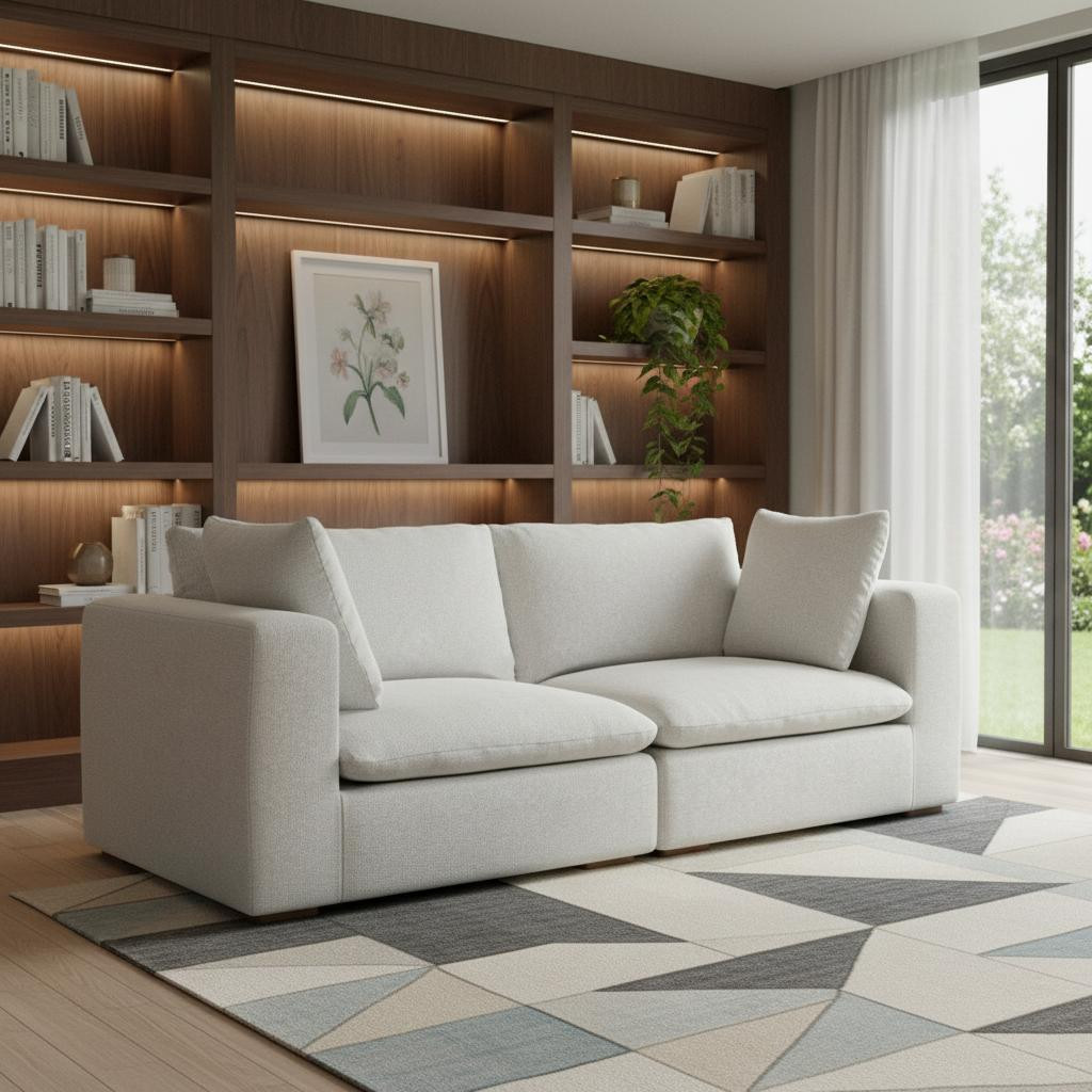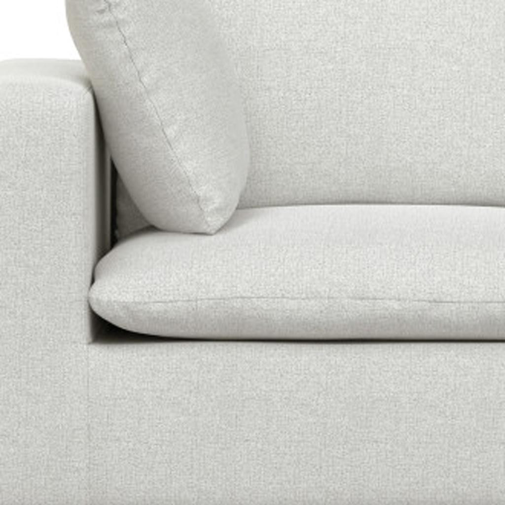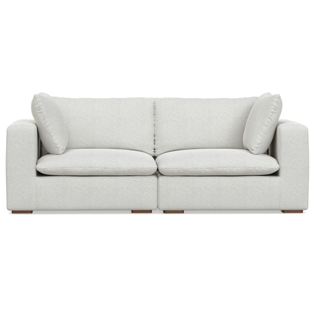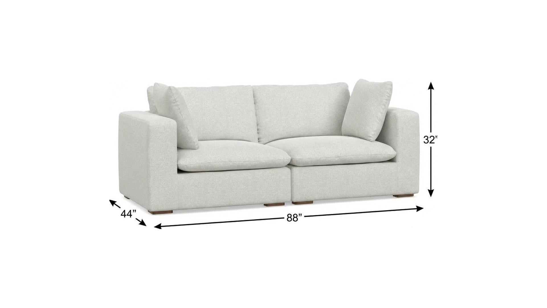 Designed for comfort and good looks, this 88-inch gray fabric modular sofa with brown legs is a great option to anchor your space. Solid colors give you lots of decorative options and are easy to work into your decor scheme. Web suspension construction gives this piece strong support and makes it comfortable to sit even for long periods of time. Removable back cushions make this sofa easy to manage. Fixed arms offer a comfy place to rest. Built to last, this sofa will be a great centerpiece for your room. 32.00-inch h x 88.00-inch w x 44.00-inch d.
