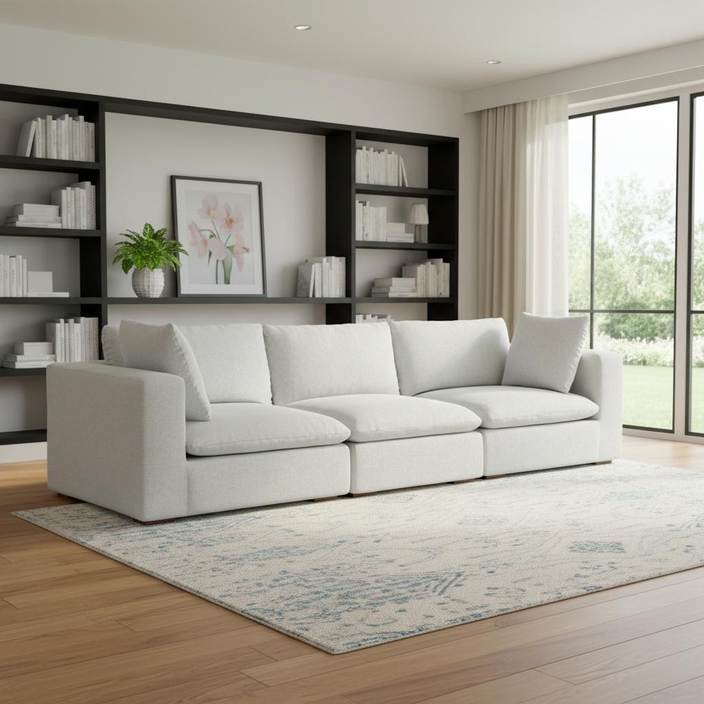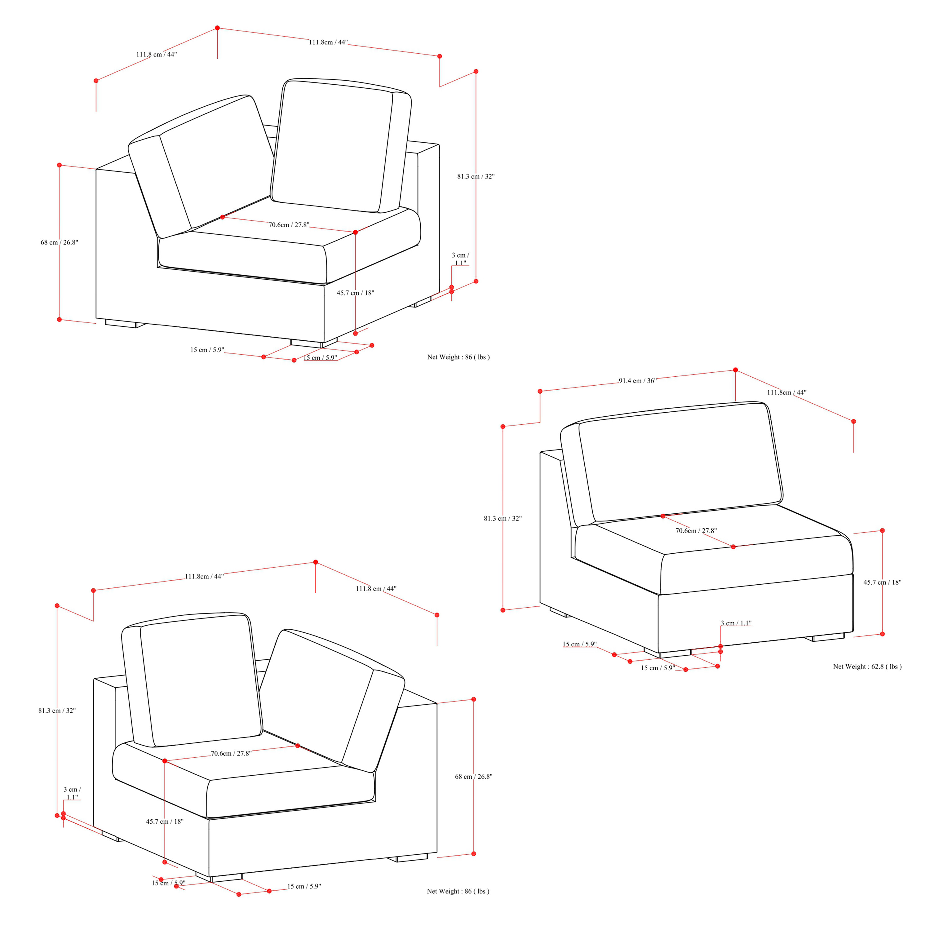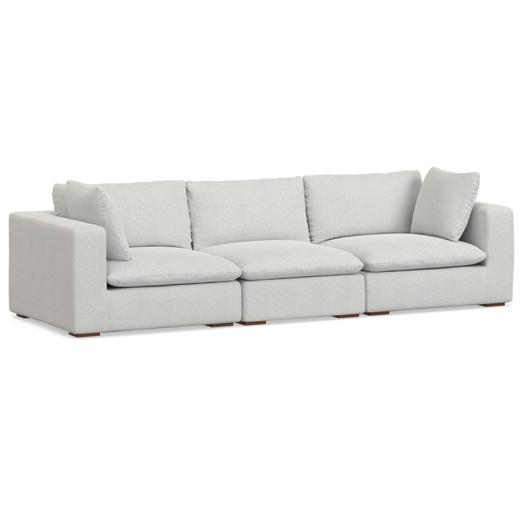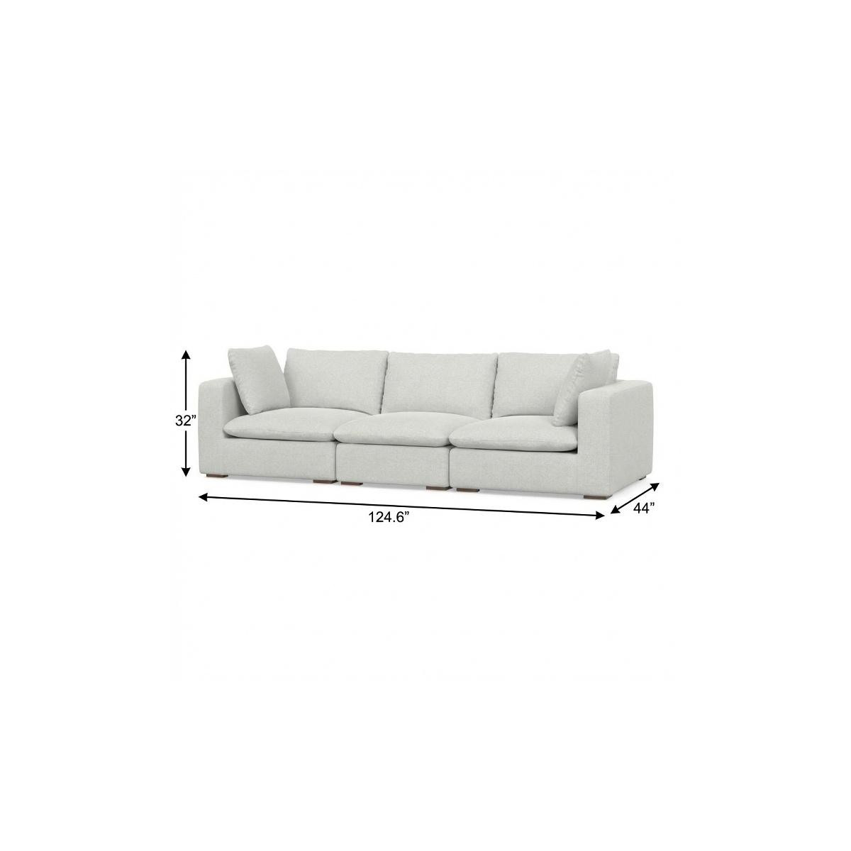 Designed for comfort and good looks, this 125-inch gray fabric modular sofa with brown legs is a great option to anchor your space. Solid colors give you lots of decorative options and are easy to work into your decor scheme. Web suspension construction gives this piece strong support and makes it comfortable to sit even for long periods of time. Removable back cushions make this sofa easy to manage. Fixed arms offer a comfy place to rest. A great showpiece for your room, this sofa is a must have. 32.00-inch h x 124.60-inch w x 44.00-inch d.