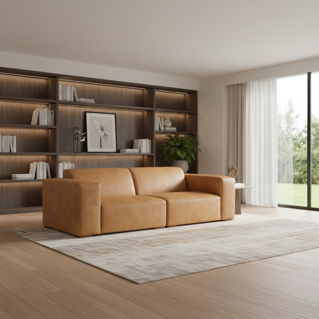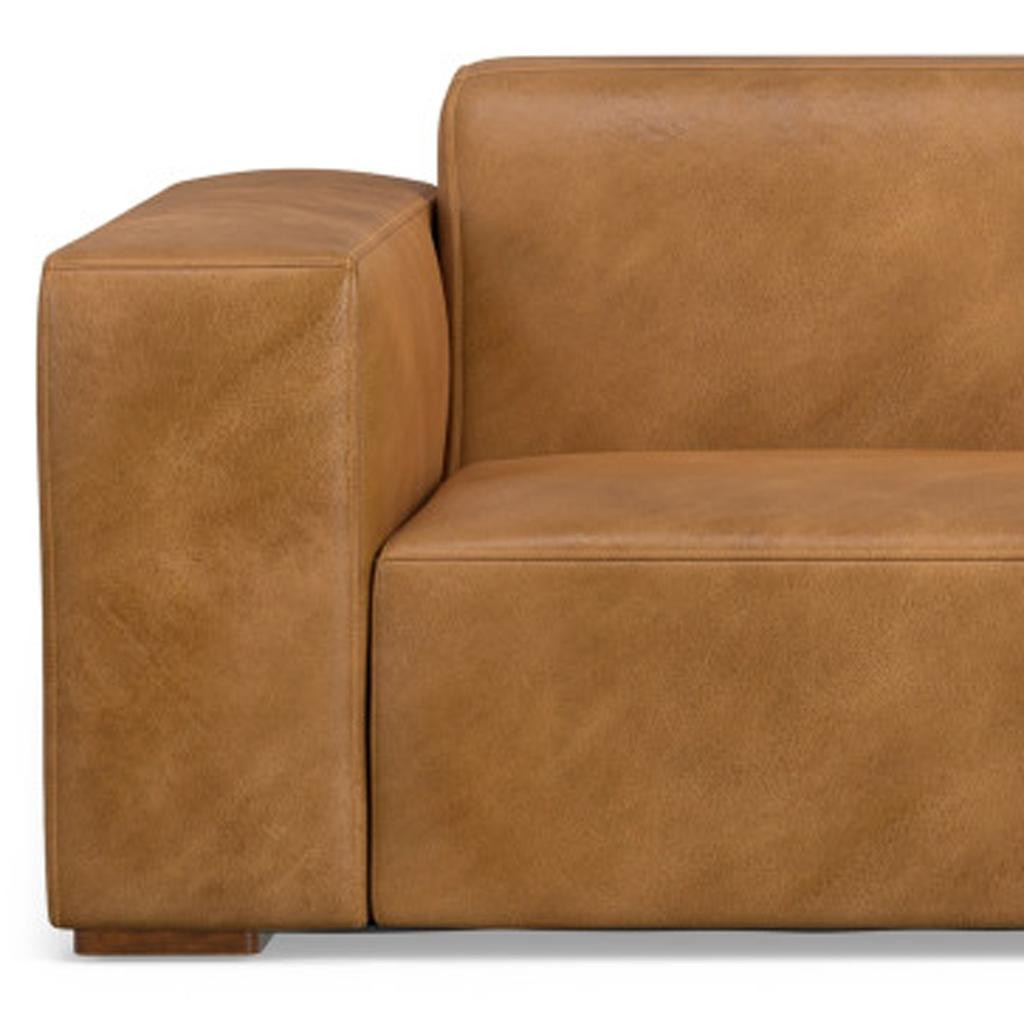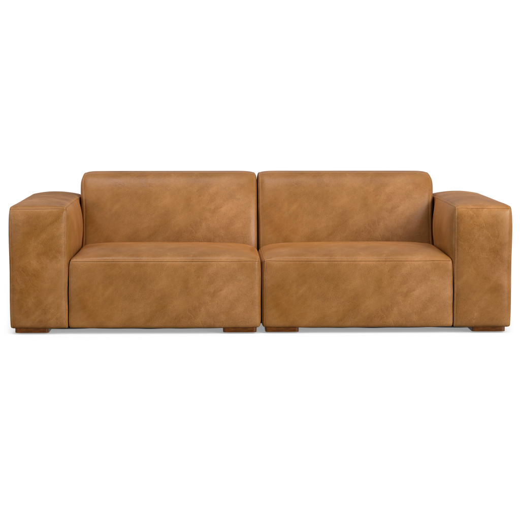 Superior construction from fabulously soft and high grade leather gives this 88-inch sienna leather modular sofa with brown legs a leg up on the competition. The premium leather used makes your lounging luxuriously comfortable and adds an elegant appeal to your space. Solid colors give you lots of decorative options and are easy to work into your decor scheme. Web suspension construction gives this piece strong support and makes it comfortable to sit even for long periods of time. Fixed arms offer a comfy place to rest. Built to last, this sofa will be a great centerpiece for your room. 27.00-inch h x 88.00-inch w x 38.00-inch d.