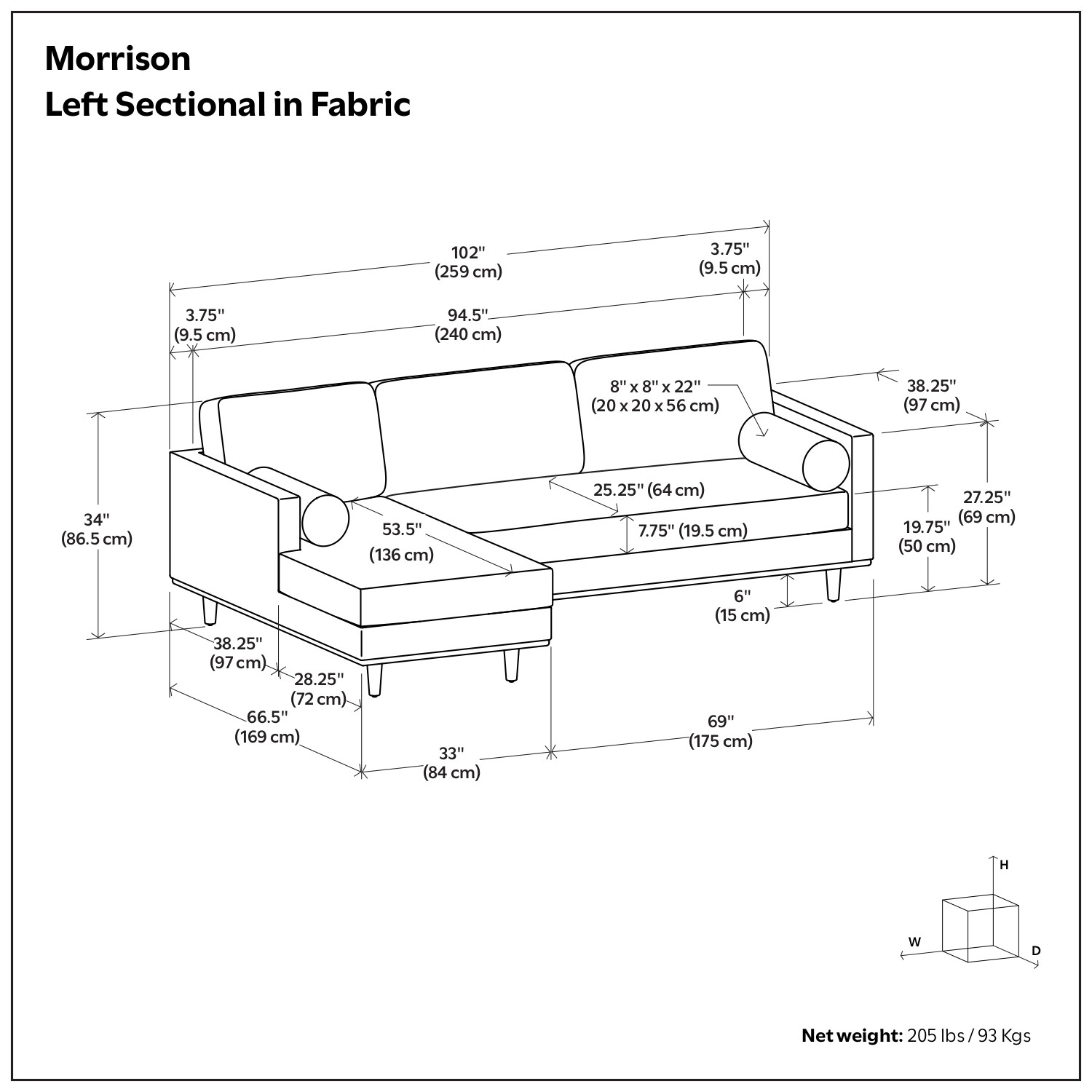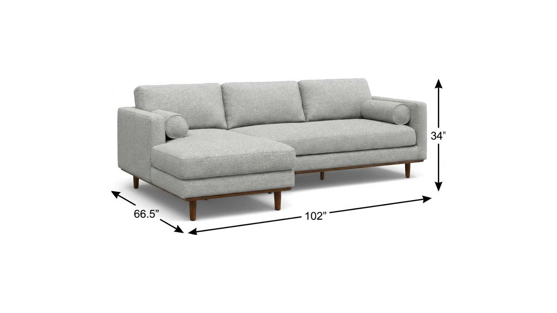 Designed for comfort and good looks, this 102-inch gray fabric sofa with brown legs is a great option to anchor your space. Solid colors give you lots of decorative options and are easy to work into your decor scheme. Web suspension construction gives this piece strong support and makes it comfortable to sit even for long periods of time. Removable back cushions make this sofa easy to manage. Fixed arms offer a comfy place to rest. A great showpiece for your room, this sofa is a must have. 34.00-inch h x 102.00-inch w x 66.50-inch d.