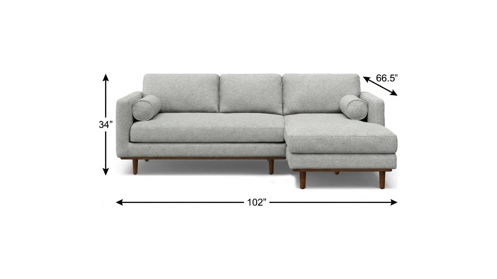 Transform your home's interior with this luxurious 102-inch gray fabric sofa with brown legs. Solid colors give you lots of decorative options and are easy to work into your decor scheme. Web suspension construction gives this piece strong support and makes it comfortable to sit even for long periods of time. Removable back cushions make this sofa easy to manage. Fixed arms offer a comfy place to rest. Built to last, this sofa will be a great centerpiece for your room. 34.00-inch h x 102.00-inch w x 66.50-inch d.
