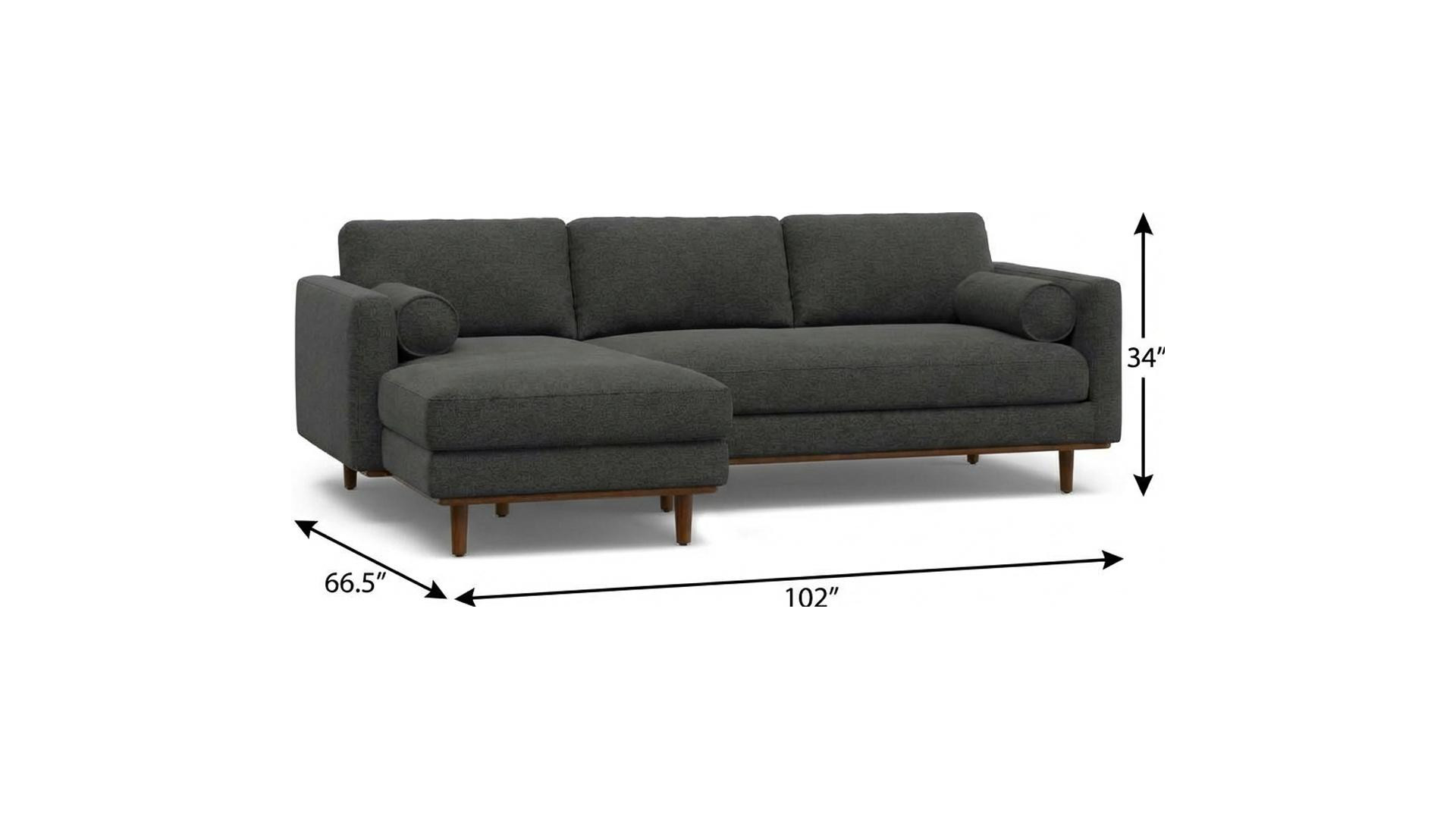 Add an air of fashion to your space with this fabulous 102-inch gray fabric sofa with brown legs. Solid colors give you lots of decorative options and are easy to work into your decor scheme. Web suspension construction gives this piece strong support and makes it comfortable to sit even for long periods of time. Removable back cushions make this sofa easy to manage. Fixed arms offer a comfy place to rest. Built to last, this sofa will be a great centerpiece for your room. 34.00-inch h x 102.00-inch w x 66.50-inch d.