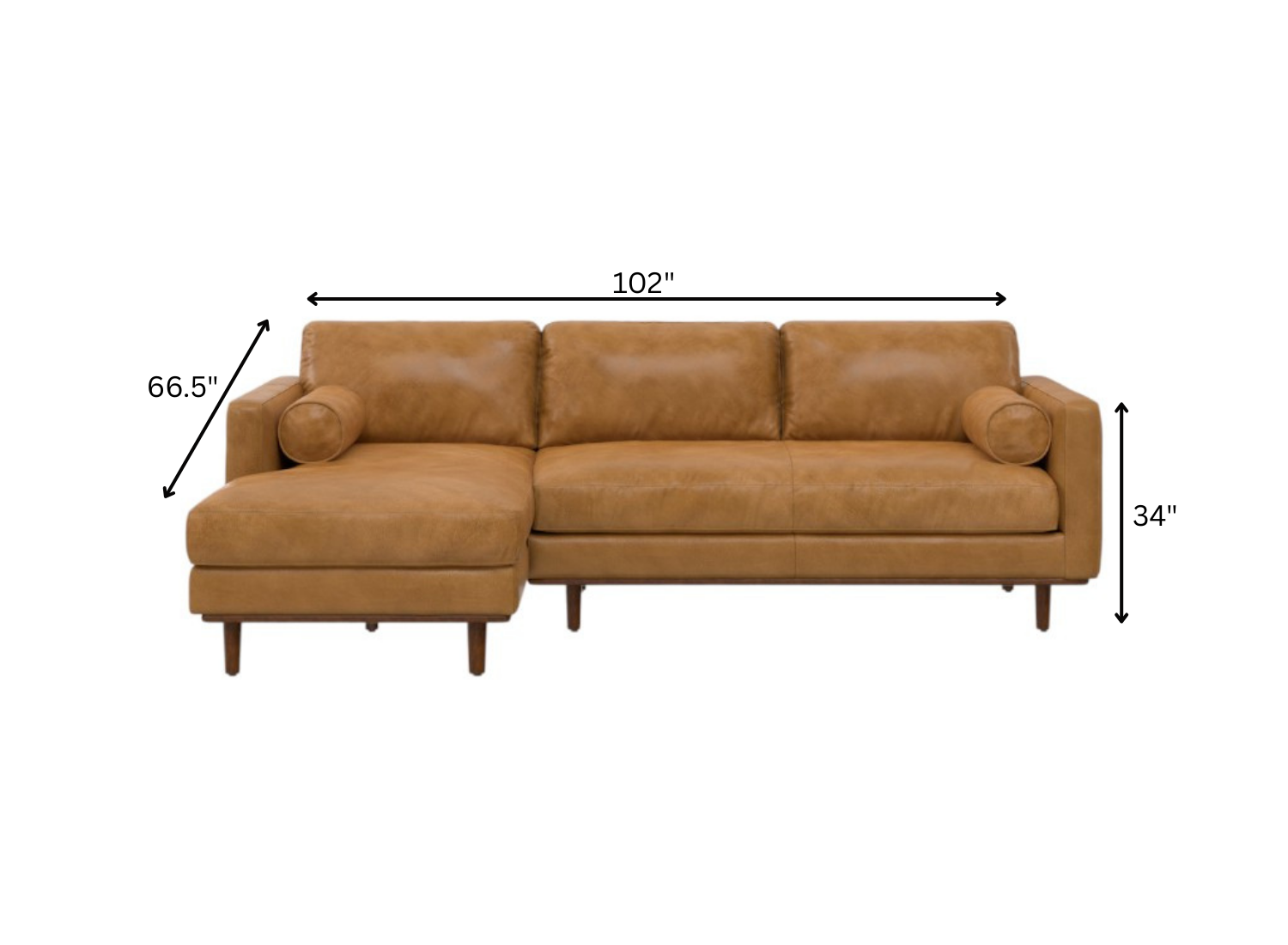 An interior designer's dream, this buttery soft high grade leather 102-inch sienna leather sofa with brown legs will bring just the right touch to your space. The premium leather used makes your lounging luxuriously comfortable and adds an elegant appeal to your space. Solid colors give you lots of decorative options and are easy to work into your decor scheme. Web suspension construction gives this piece strong support and makes it comfortable to sit even for long periods of time. Removable back cushions make this sofa easy to manage. Fixed arms offer a comfy place to rest. Built to last, this sofa will be a great centerpiece for your room. 34.00-inch h x 102.00-inch w x 66.50-inch d.