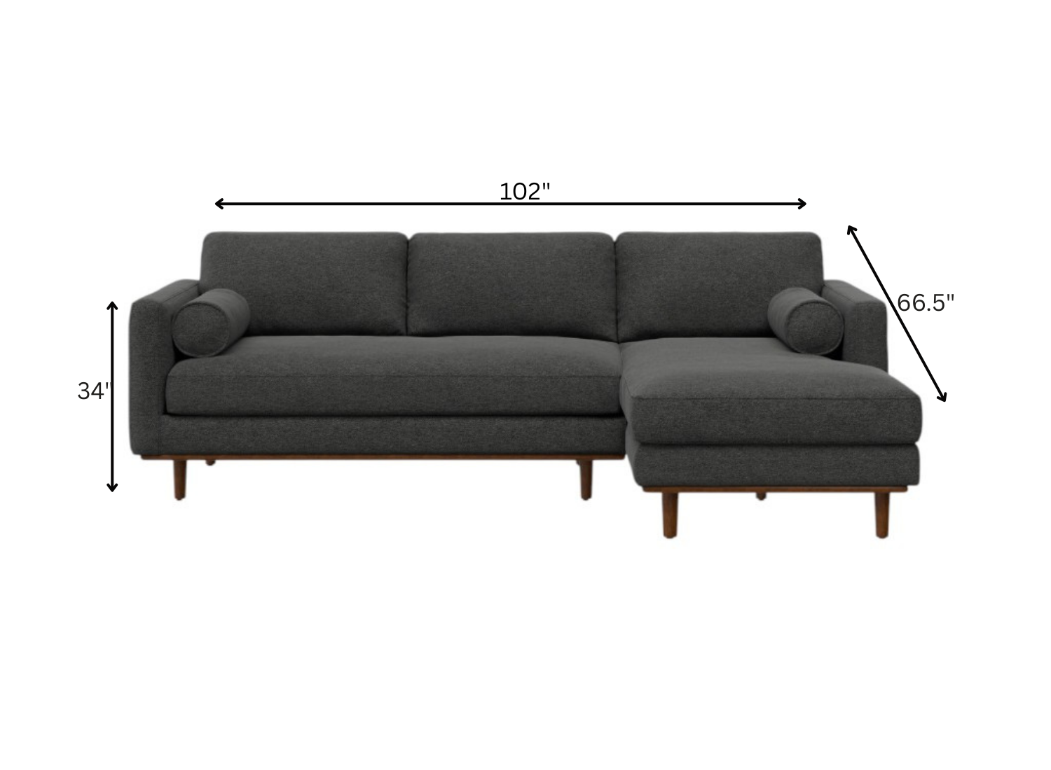 Transform your home's interior with this luxurious 102-inch gray fabric sofa with brown legs. Solid colors give you lots of decorative options and are easy to work into your decor scheme. Web suspension construction gives this piece strong support and makes it comfortable to sit even for long periods of time. Removable back cushions make this sofa easy to manage. Fixed arms offer a comfy place to rest. A great showpiece for your room, this sofa is a must have. 34.00-inch h x 102.00-inch w x 66.50-inch d.
