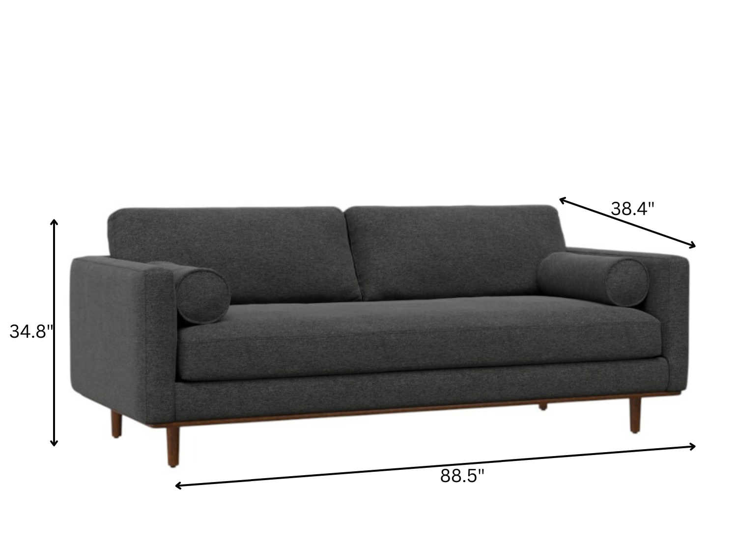 Designed for comfort and good looks, this 89-inch gray fabric sofa with ottoman with brown legs is a great option to anchor your space. Solid colors give you lots of decorative options and are easy to work into your decor scheme. Web suspension construction gives this piece strong support and makes it comfortable to sit even for long periods of time. Removable back cushions make this sofa easy to manage. Comes complete with a coordinating ottoman to rest your feet. The ottoman can also be used as additional seating option if needed. Fixed arms offer a comfy place to rest. Built to last, this sofa will be a great centerpiece for your room. 34.80-inch h x 88.50-inch w x 38.40-inch d.