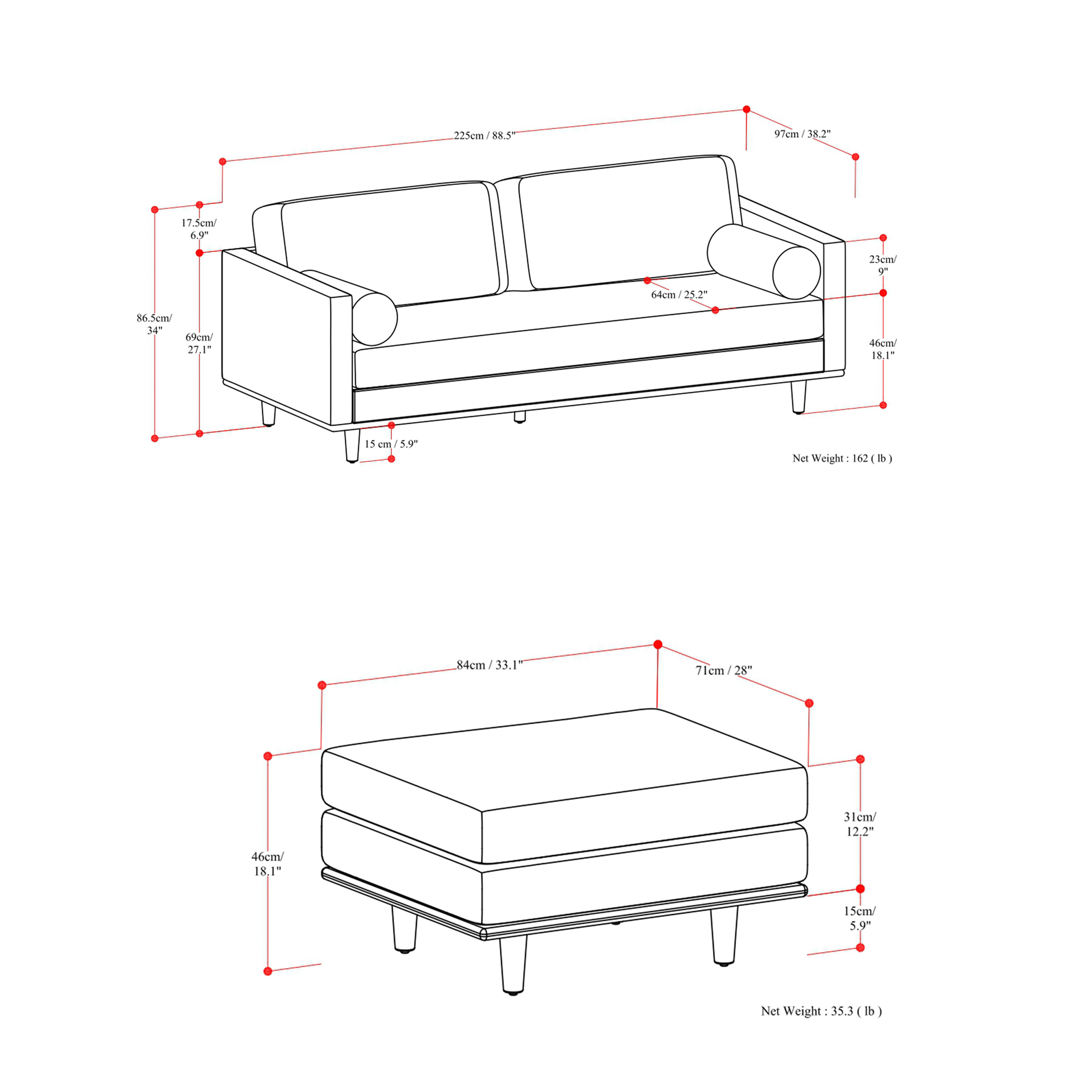 | Ottoman Width - Side to Side: |