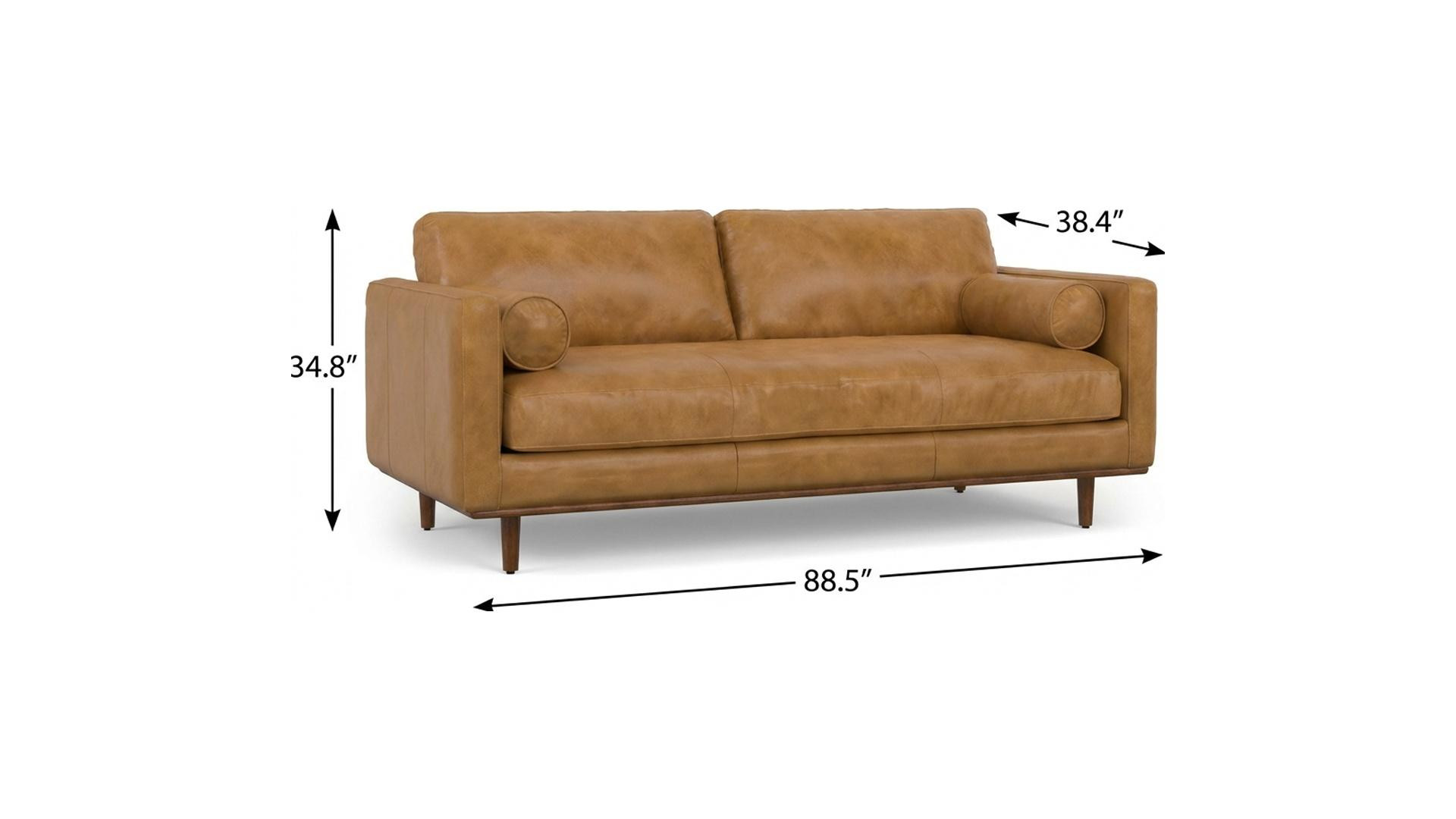 An interior designer's dream, this buttery soft high grade leather 89-inch sienna leather sofa with ottoman with brown legs will bring just the right touch to your space. The premium leather used makes your lounging luxuriously comfortable and adds an elegant appeal to your space. Solid colors give you lots of decorative options and are easy to work into your decor scheme. Web suspension construction gives this piece strong support and makes it comfortable to sit even for long periods of time. Removable back cushions make this sofa easy to manage. A comfy ottoman is included as part of the package. Great to rest your feet or provide extra seating in a pinch. Fixed arms offer a comfy place to rest. Built to last, this sofa will be a great centerpiece for your room. 34.80-inch h x 88.50-inch w x 38.40-inch d.