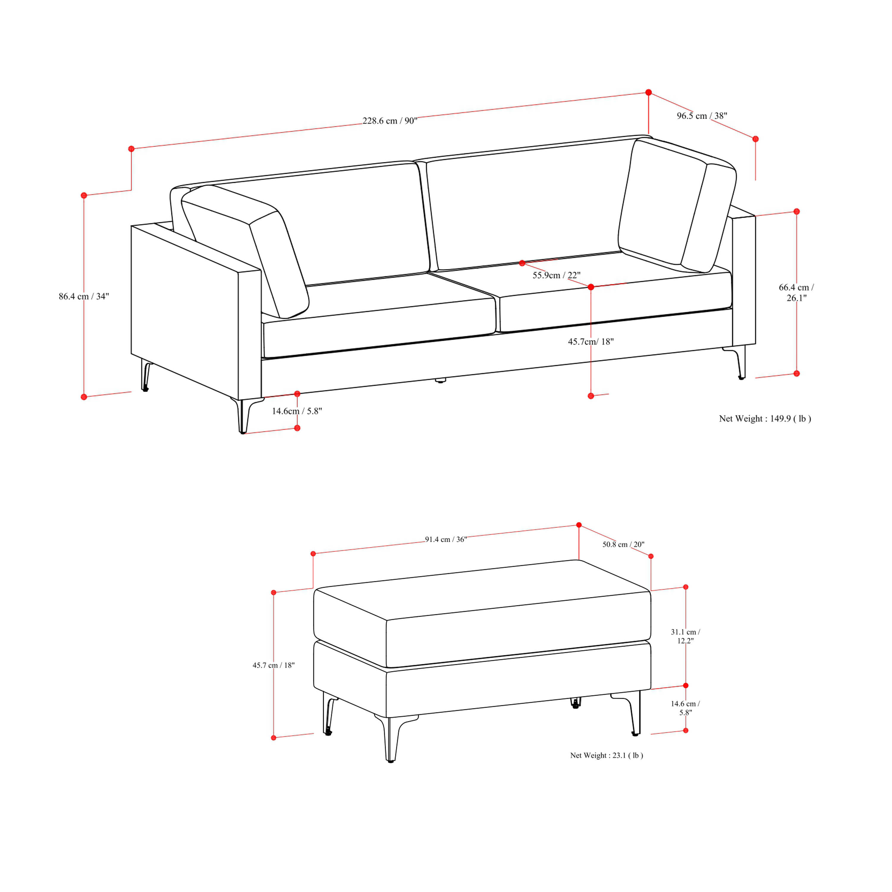 | Ottoman Width - Side to Side: |