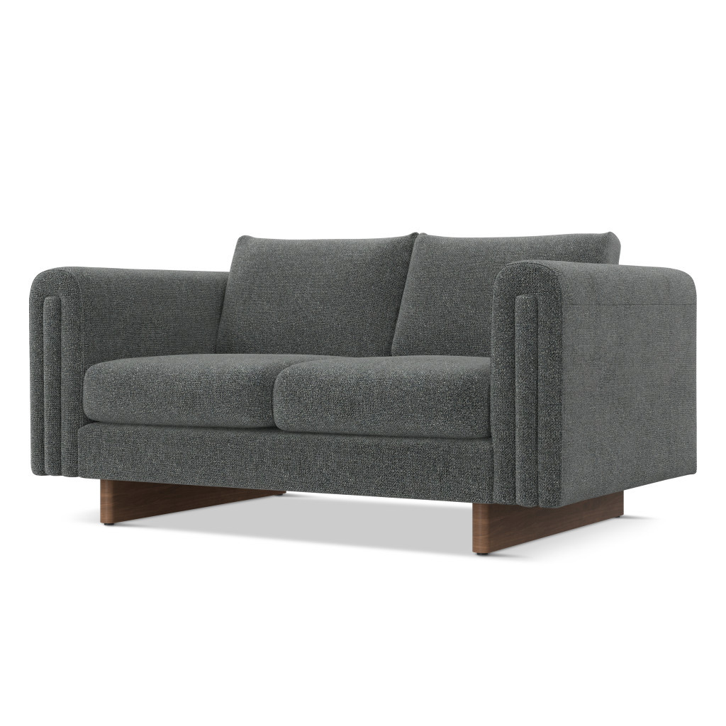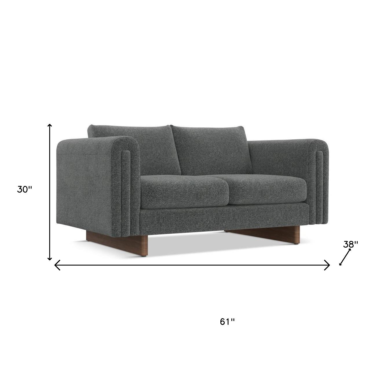 Designed for comfort and good looks, this 61-inch dark gray fabric sofa is a great option to anchor your space. Solid colors give you lots of decorative options and are easy to work into your decor scheme. Web suspension construction gives this piece strong support and makes it comfortable to sit even for long periods of time. Removable back cushions make this sofa easy to manage. Fixed arms offer a comfy place to rest. Walnut solid wood legs effortlessly elevate the room and add a touch of contemporary design. Built to last, this sofa will be a great centerpiece for your room. 30.00-inch h x 61.00-inch w x 38.00-inch d.