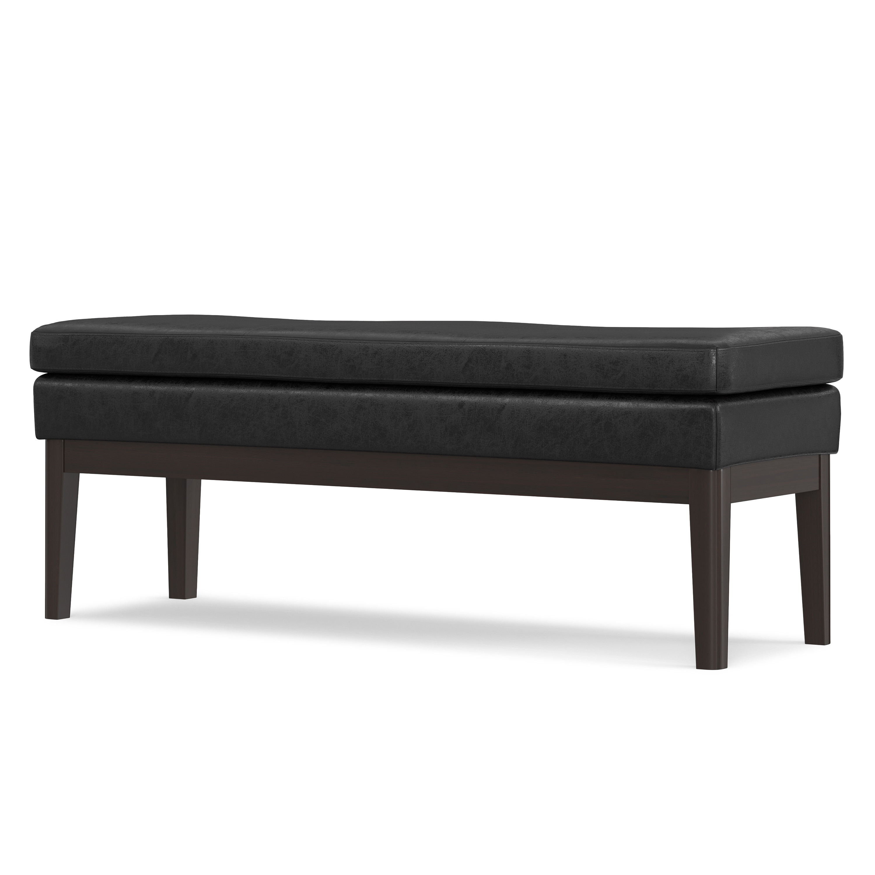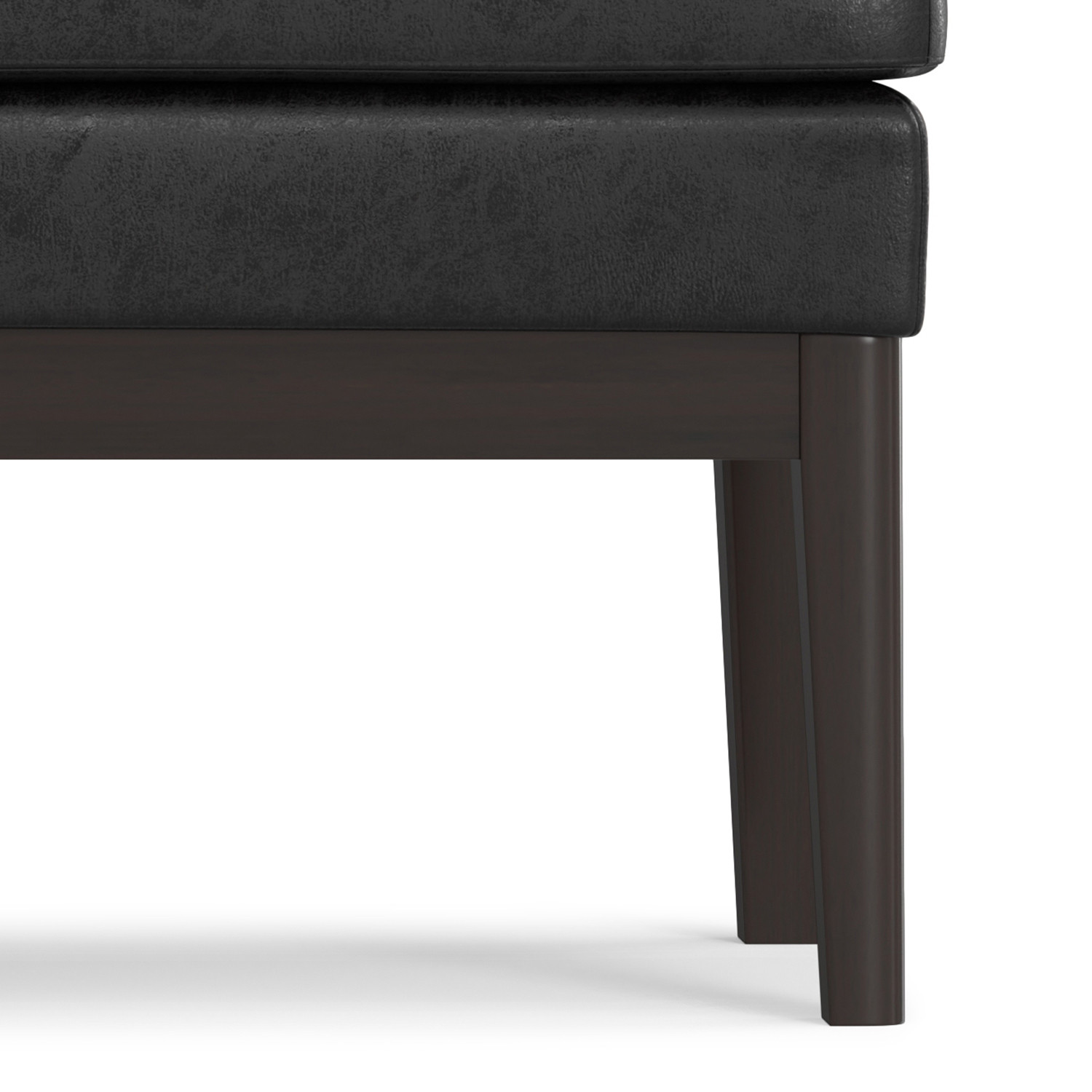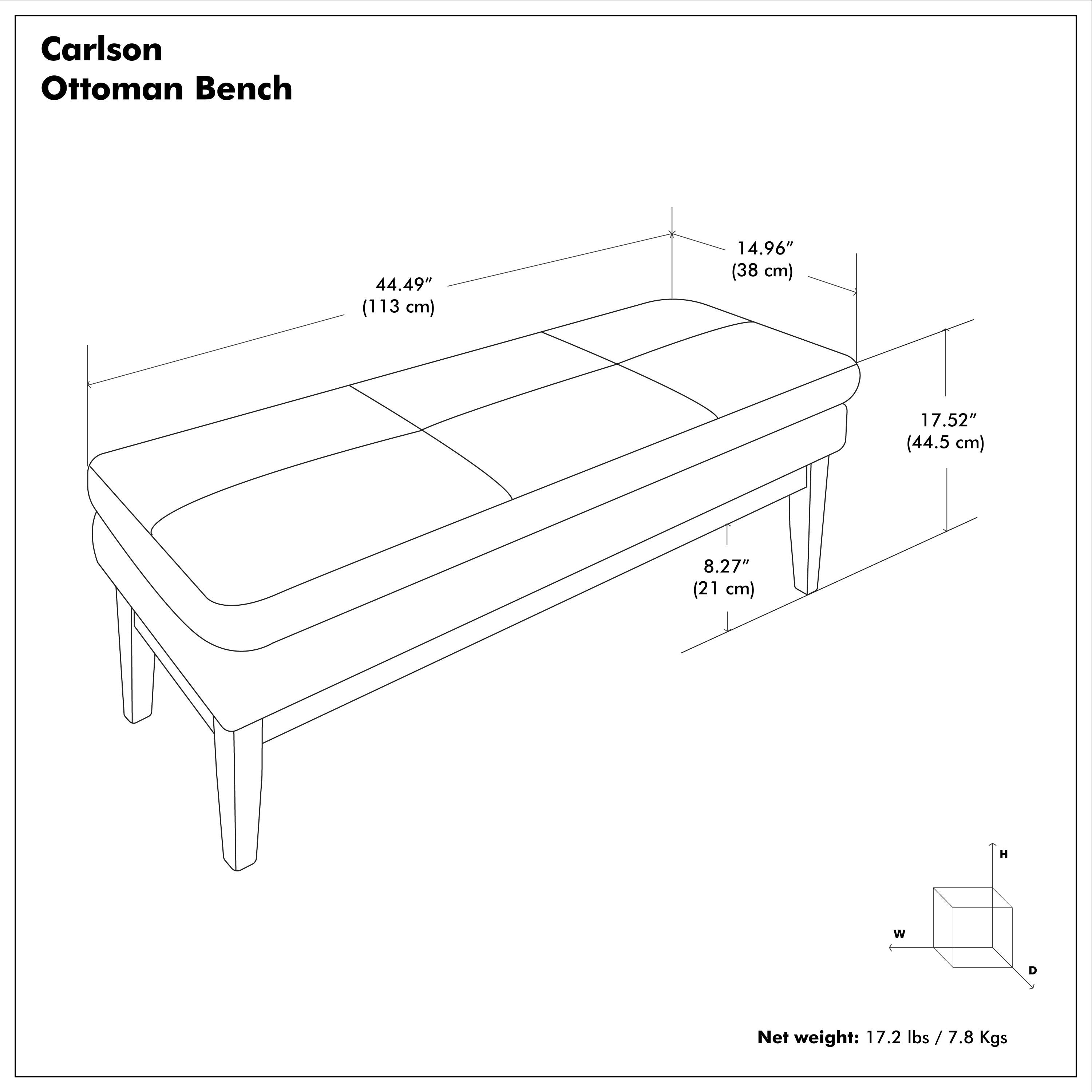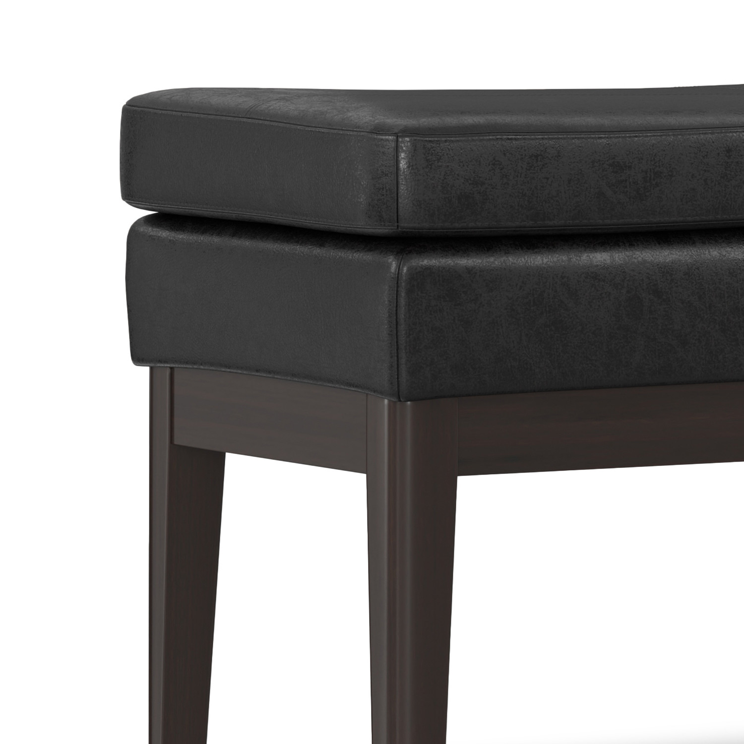 Optimize your space and add some charm to your room with the 45-inch black and walnut leather ottoman. The upholstery top of this ottoman is a nice contrast to the upholstery material. Expertly upholstered with padding in a soft solid color leather, this ottoman is as comfortable as it is good looking. Easy to blend into most any room, a ottoman is a way to add a good looking accent to your space that can also be practical and useful. 17.50-inch h x 44.50-inch w x 15.00-inch d.