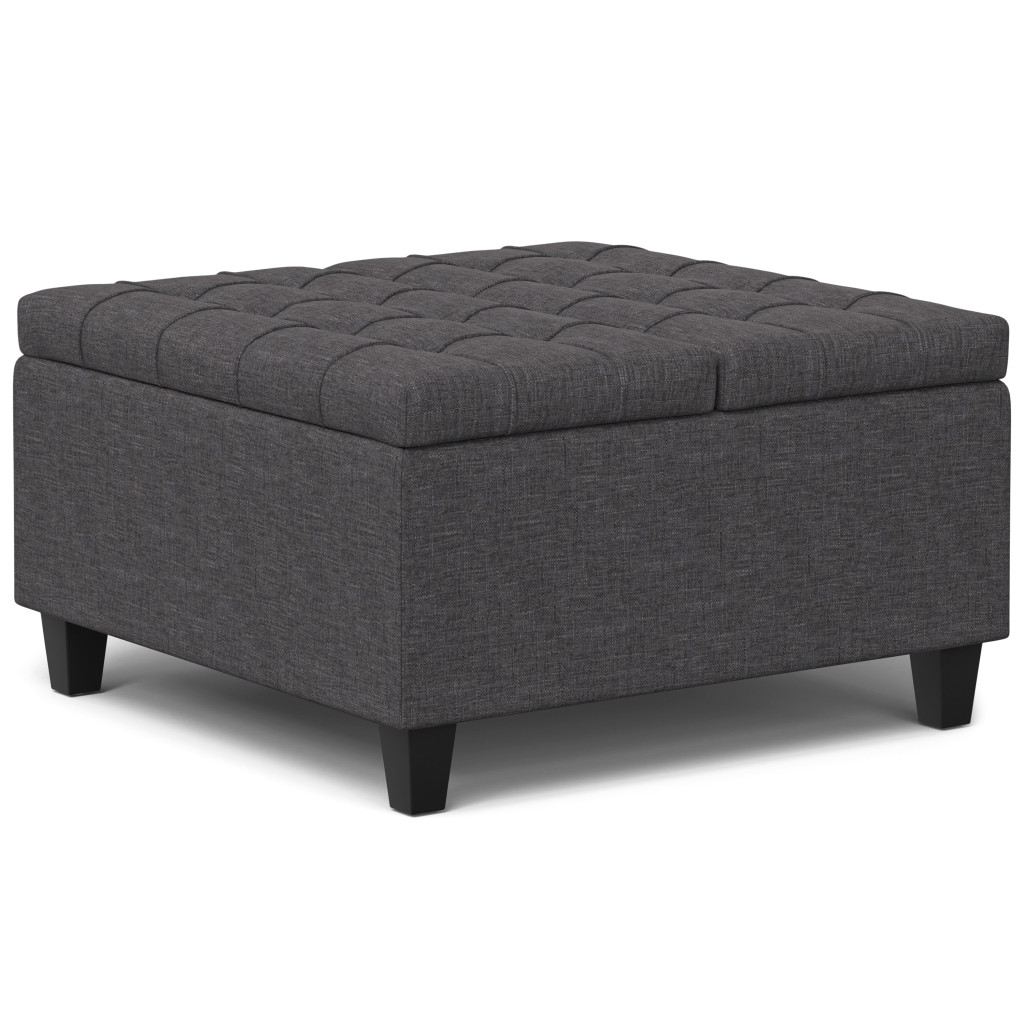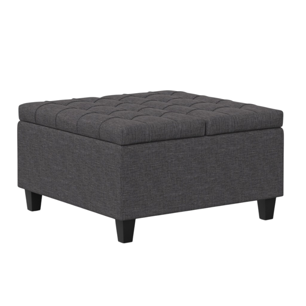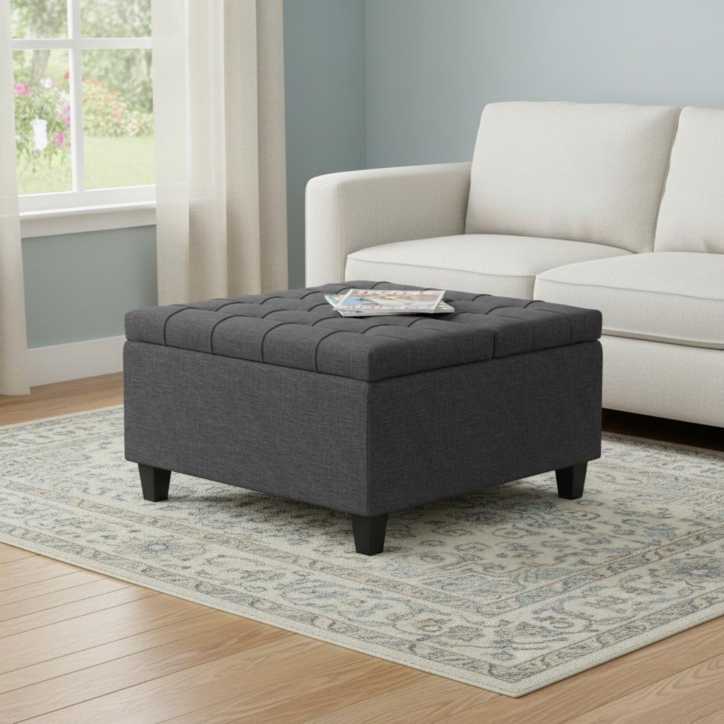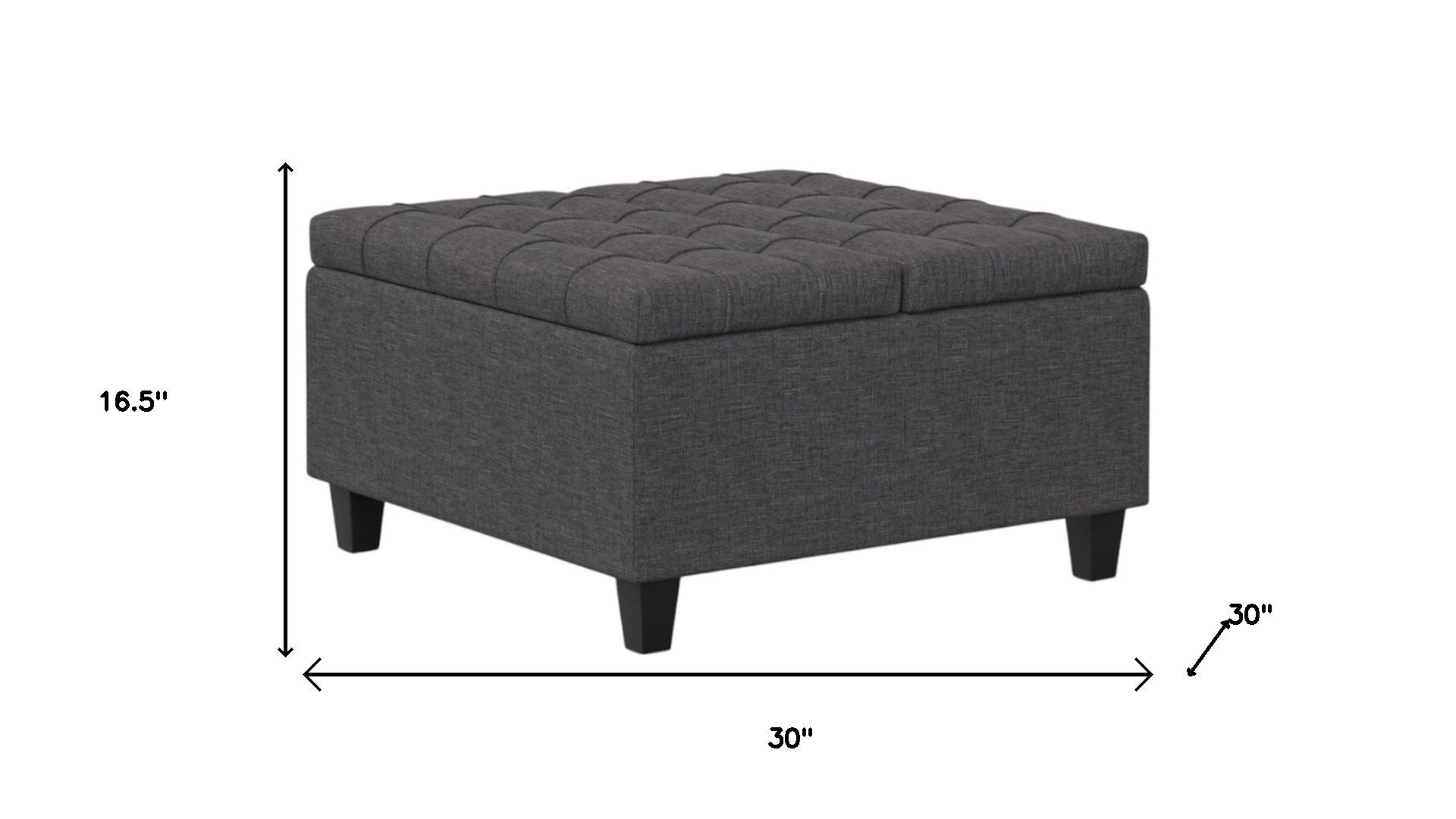 Get ready to relax with this 30-inch gray and brown fabric cocktail ottoman with storage. This chic cocktail ottoman is larger in size and designed to serve as a make-shift coffee table during parties. The surface is wide and flat which is not only suitable for a footrest or seat but also ready to hold trays of appetizers, drinks, or desserts. The upholstery top of this ottoman is a nice contrast to the upholstery material. Expertly upholstered with padding in a soft solid color polyester, this ottoman is as comfortable as it is good looking. Easy to blend into most any room, a ottoman is a way to add a good looking accent to your space that can also be practical and useful. 16.50-inch h x 30.00-inch w x 30.00-inch d.