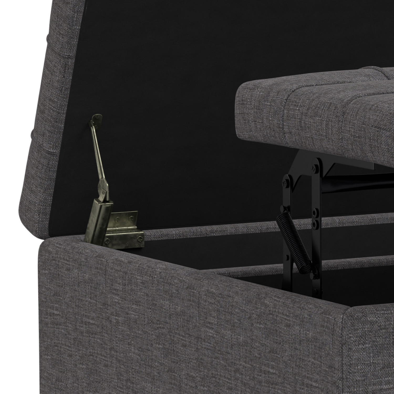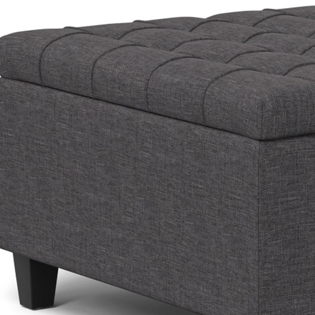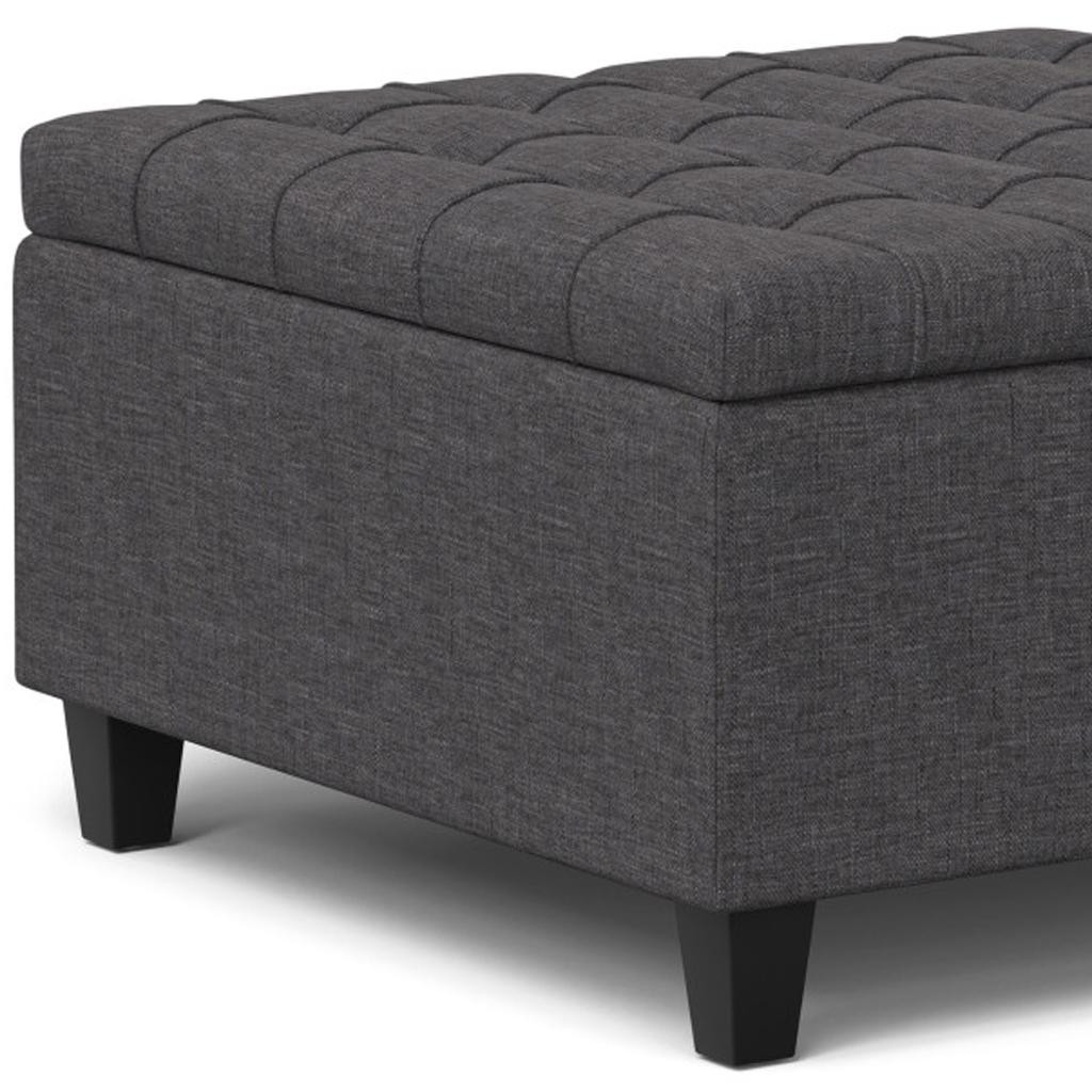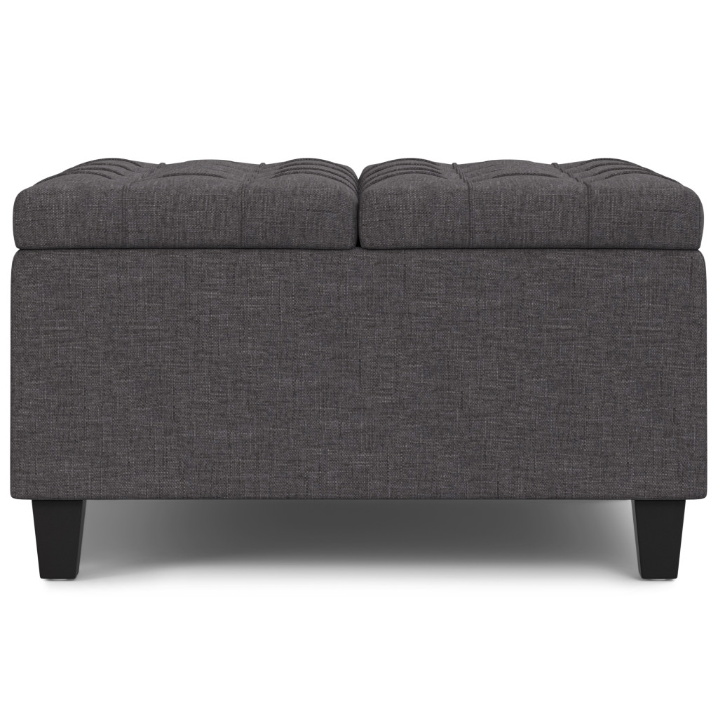 Get ready to relax with this 30-inch gray and brown fabric cocktail ottoman with storage. This chic cocktail ottoman is larger in size and designed to serve as a make-shift coffee table during parties. The surface is wide and flat which is not only suitable for a footrest or seat but also ready to hold trays of appetizers, drinks, or desserts. The upholstery top of this ottoman is a nice contrast to the upholstery material. Expertly upholstered with padding in a soft solid color polyester, this ottoman is as comfortable as it is good looking. Easy to blend into most any room, a ottoman is a way to add a good looking accent to your space that can also be practical and useful. 16.50-inch h x 30.00-inch w x 30.00-inch d.