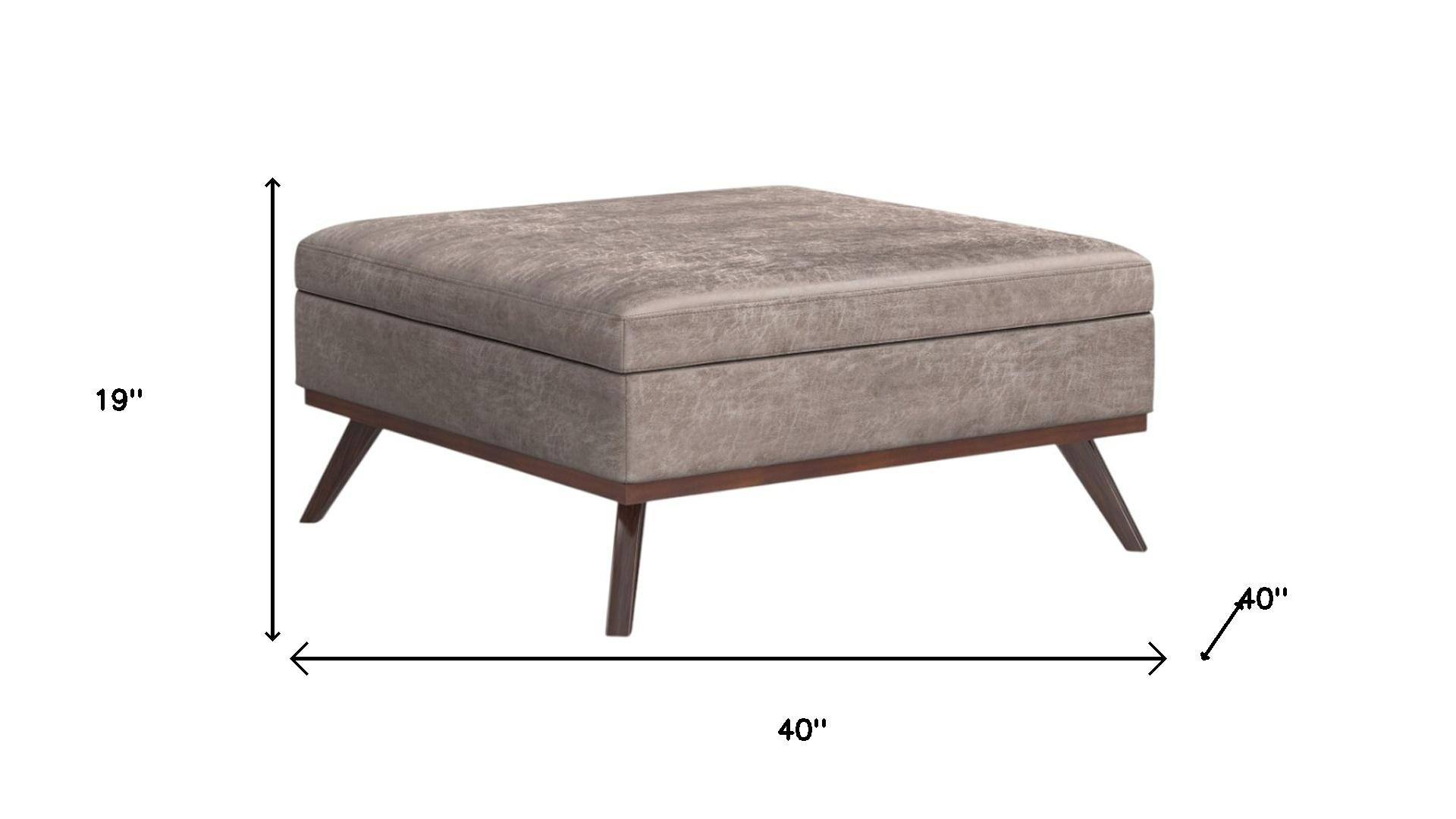 Practicality and fashion mix together with this handy 40-inch gray and brown leather cocktail ottoman with storage. This chic cocktail ottoman is larger in size and designed to serve as a make-shift coffee table during parties. The surface is wide and flat which is not only suitable for a footrest or seat but also ready to hold trays of appetizers, drinks, or desserts. The upholstery top of this ottoman is a nice contrast to the upholstery material. Expertly upholstered with padding in a soft solid color leather, this ottoman is as comfortable as it is good looking. Easy to blend into most any room, a ottoman is a way to add a good looking accent to your space that can also be practical and useful. 19.00-inch h x 40.00-inch w x 40.00-inch d.