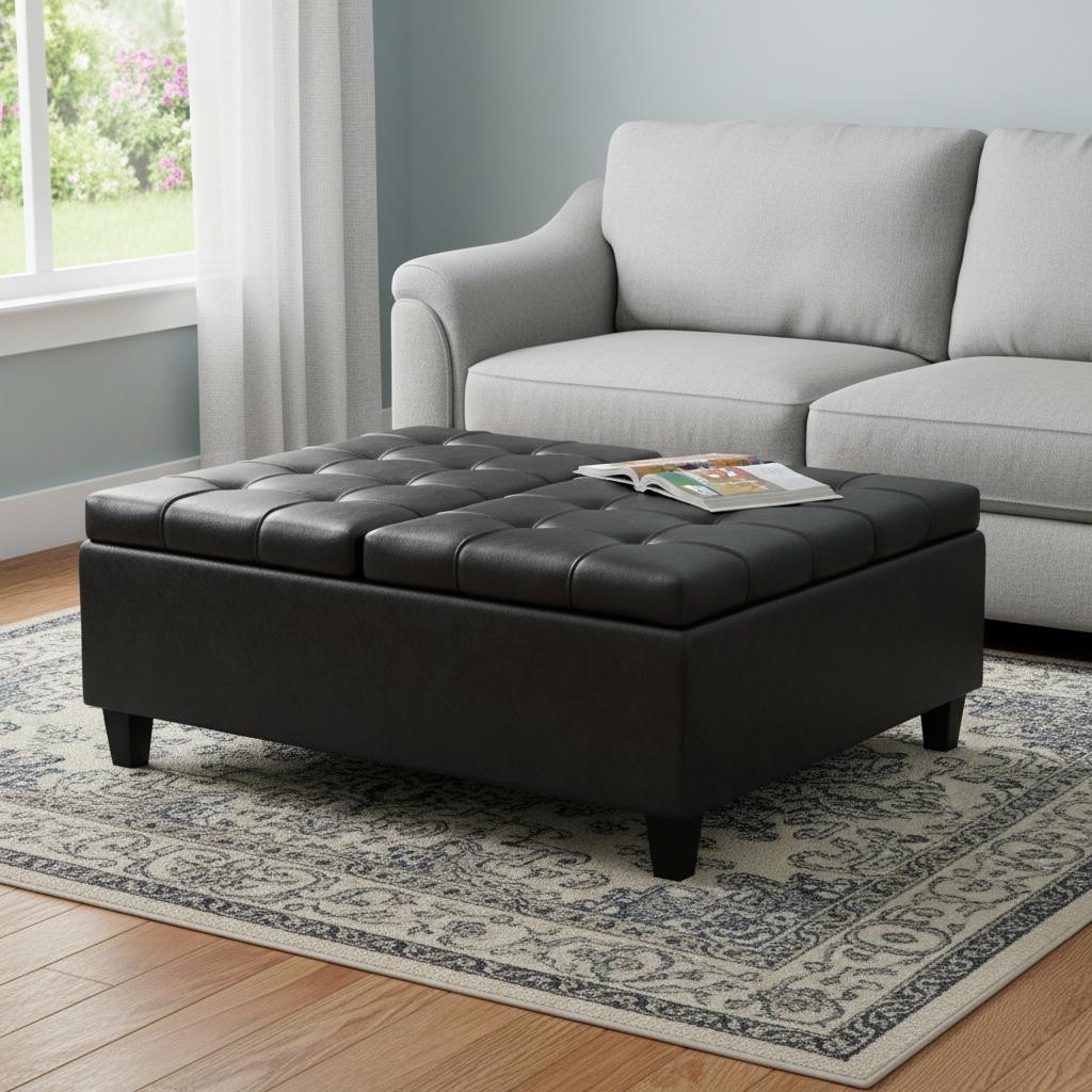 black leather cocktail ottoman storage, leather cocktail ottoman storage, 40" black leather cocktail ottoman, cocktail ottoman storage, leather cocktail ottoman |