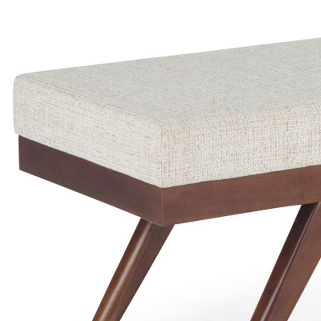 Optimize your space and add some charm to your room with the 48-inch platinum and brown fabric ottoman. The upholstery top of this ottoman is a nice contrast to the upholstery material. Expertly upholstered with padding in a soft solid color polyester, this ottoman is as comfortable as it is good looking. Ottomans are multi-functional additions to your space that add fashion and practical value. 18.50-inch h x 47.80-inch w x 18.10-inch d.