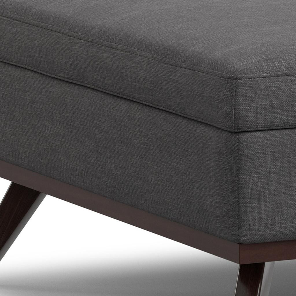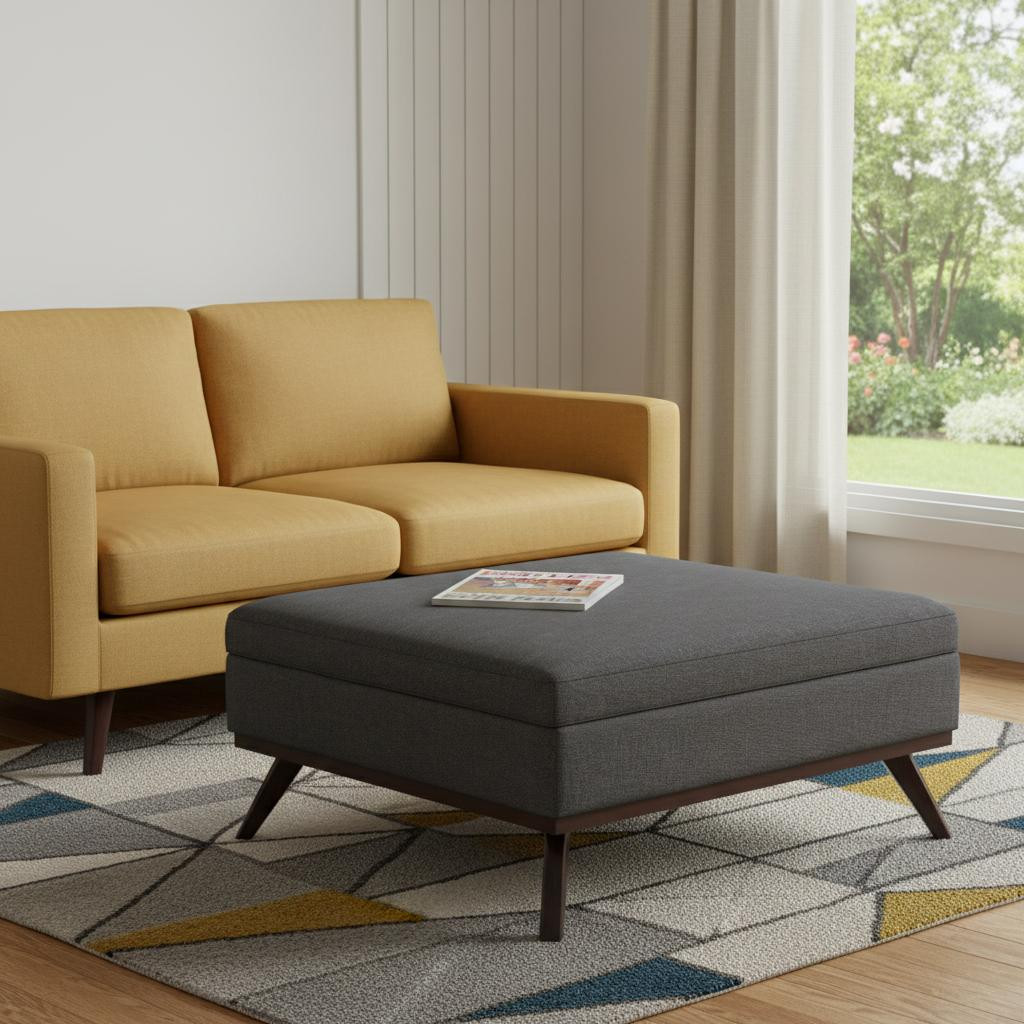 Optimize your space and add some charm to your room with the 40-inch gray and brown fabric cocktail ottoman with storage. This chic cocktail ottoman is larger in size and designed to serve as a make-shift coffee table during parties. The surface is wide and flat which is not only suitable for a footrest or seat but also ready to hold trays of appetizers, drinks, or desserts. The upholstery top of this ottoman is a nice contrast to the upholstery material. Expertly upholstered with padding in a soft solid color polyester, this ottoman is as comfortable as it is good looking. Easy to blend into most any room, a ottoman is a way to add a good looking accent to your space that can also be practical and useful. 19.00-inch h x 40.00-inch w x 40.00-inch d.