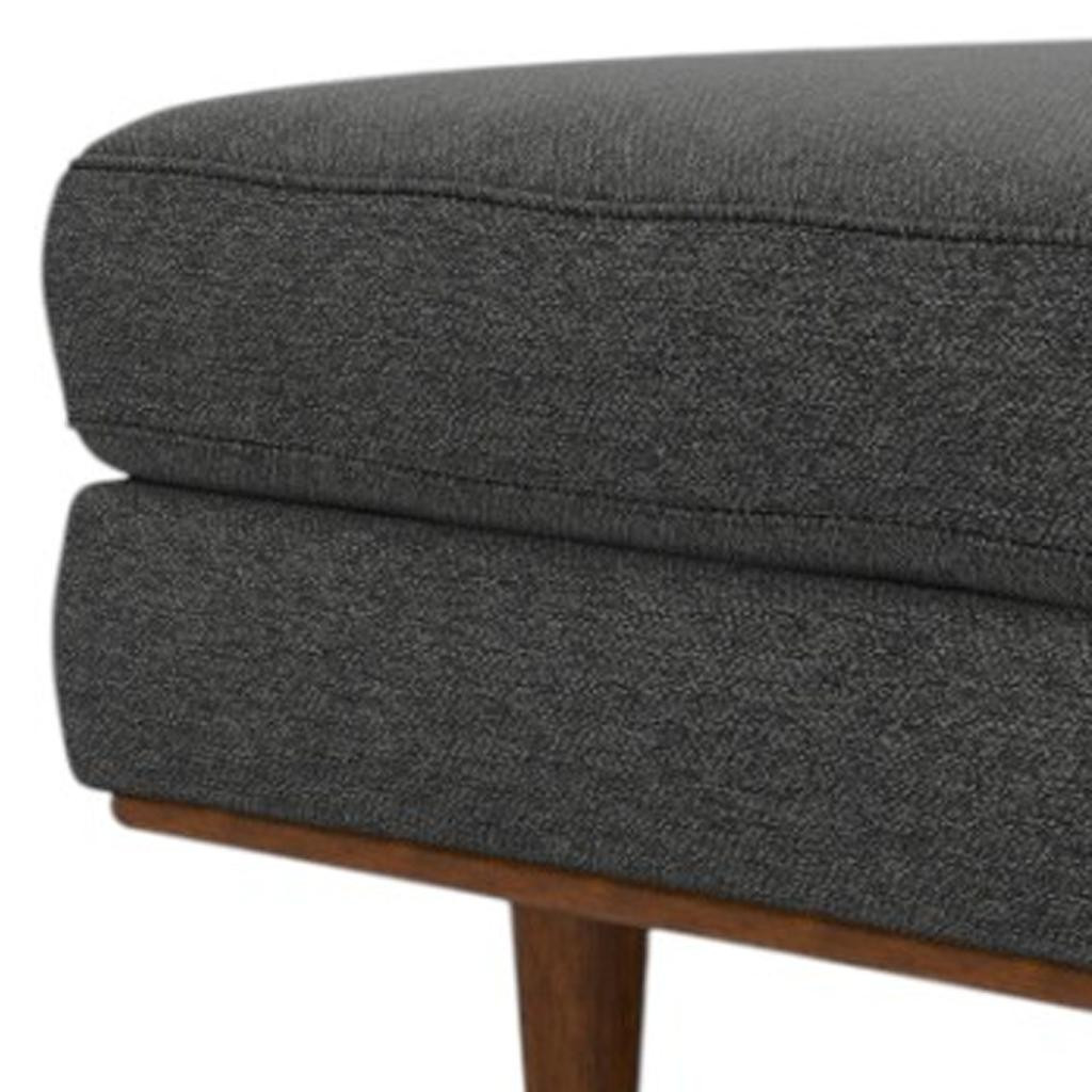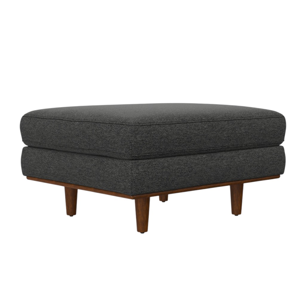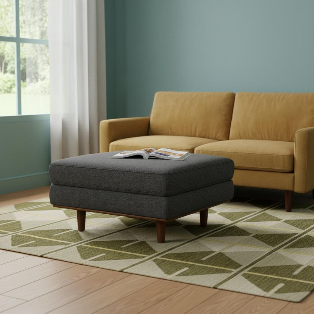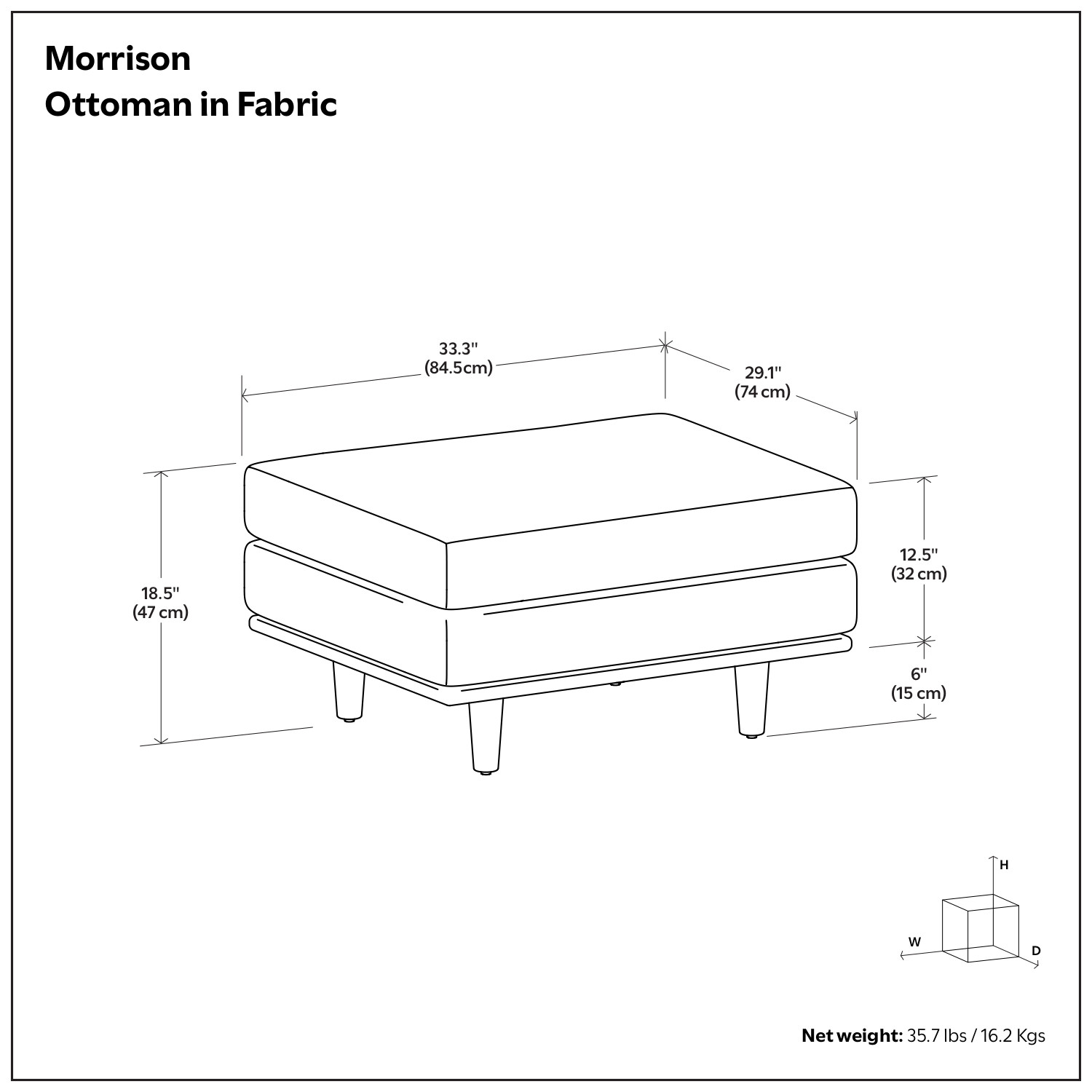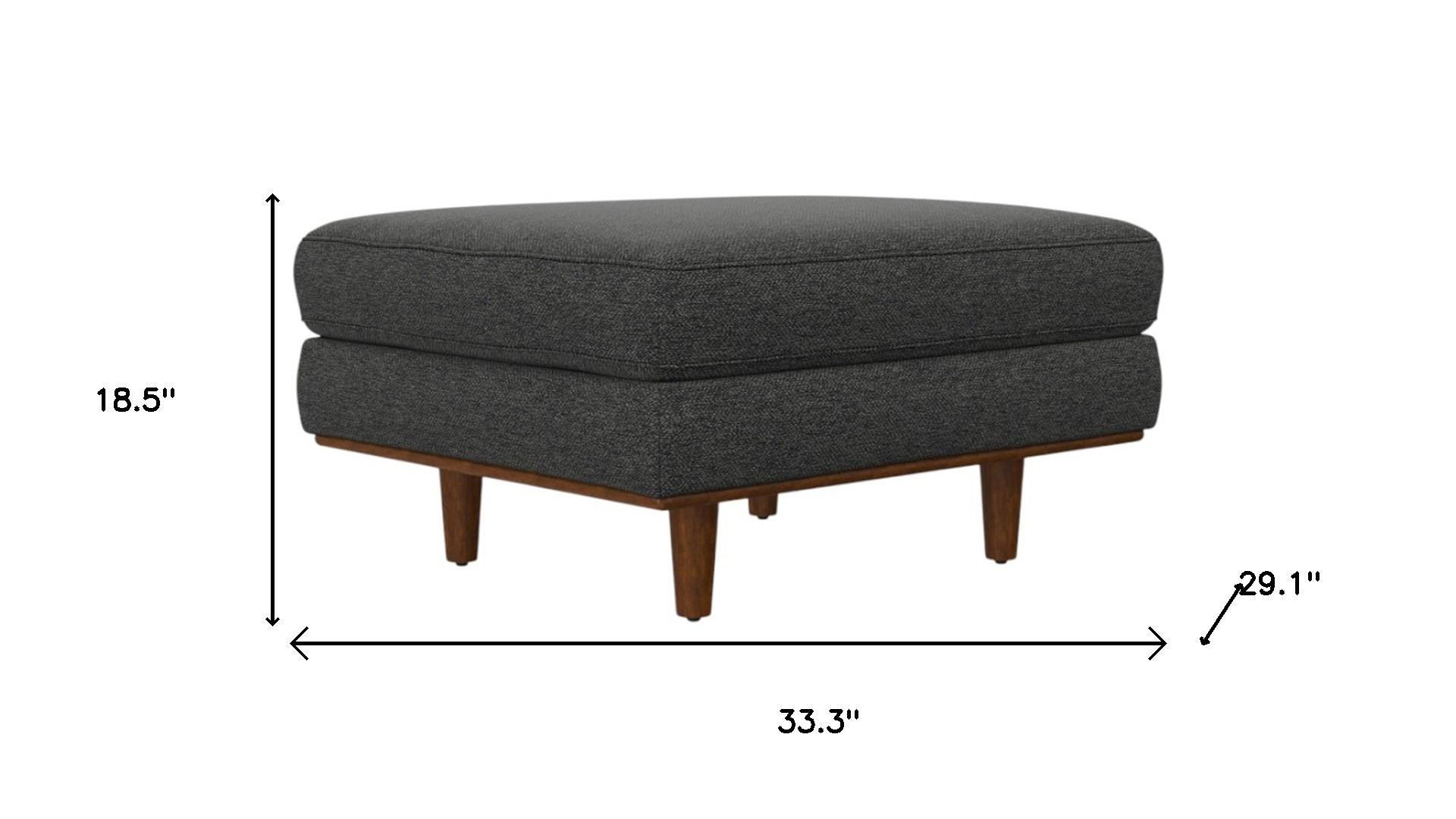 Practicality and fashion mix together with this handy 33-inch gray and brown fabric cocktail ottoman. This chic cocktail ottoman is larger in size and designed to serve as a make-shift coffee table during parties. The surface is wide and flat which is not only suitable for a footrest or seat but also ready to hold trays of appetizers, drinks, or desserts. The upholstery top of this ottoman is a nice contrast to the upholstery material. Expertly upholstered with padding in a soft solid color polyester, this ottoman is as comfortable as it is good looking. Ottomans are multi-functional additions to your space that add fashion and practical value. 18.50-inch h x 33.30-inch w x 29.10-inch d.