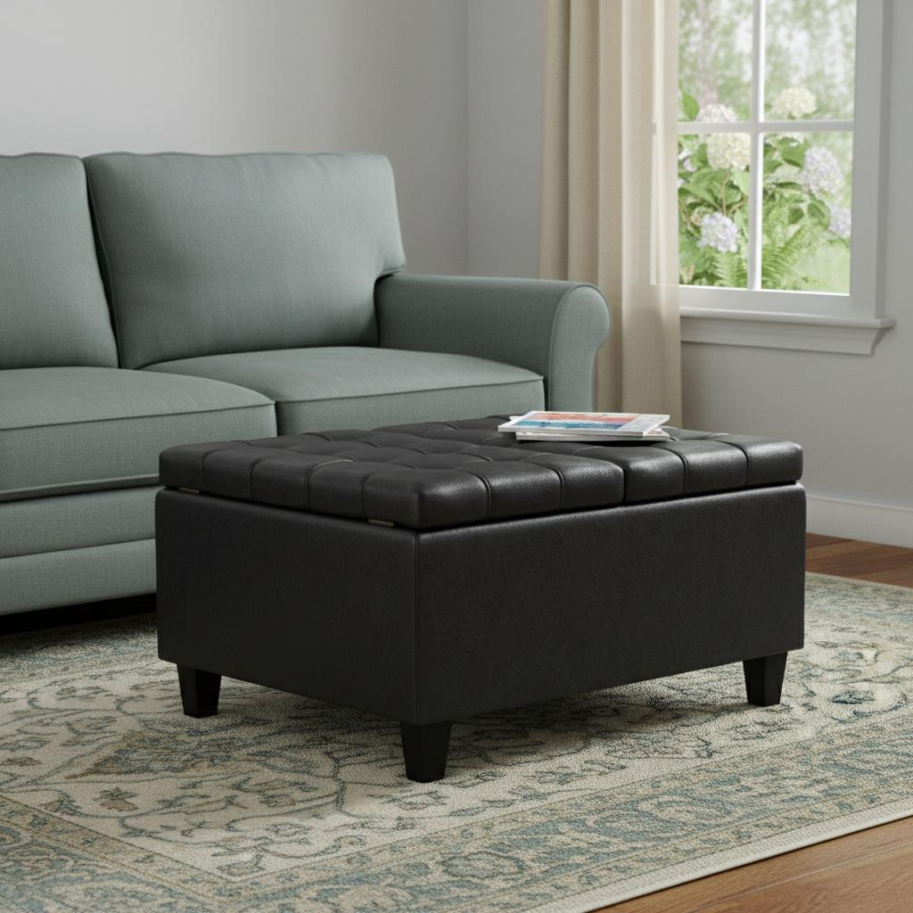 black leather cocktail ottoman storage, leather cocktail ottoman storage, 30" black leather cocktail ottoman, cocktail ottoman storage, leather cocktail ottoman |