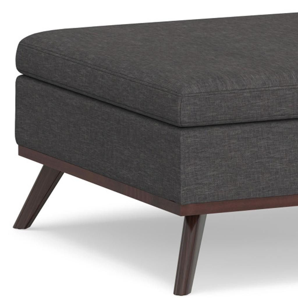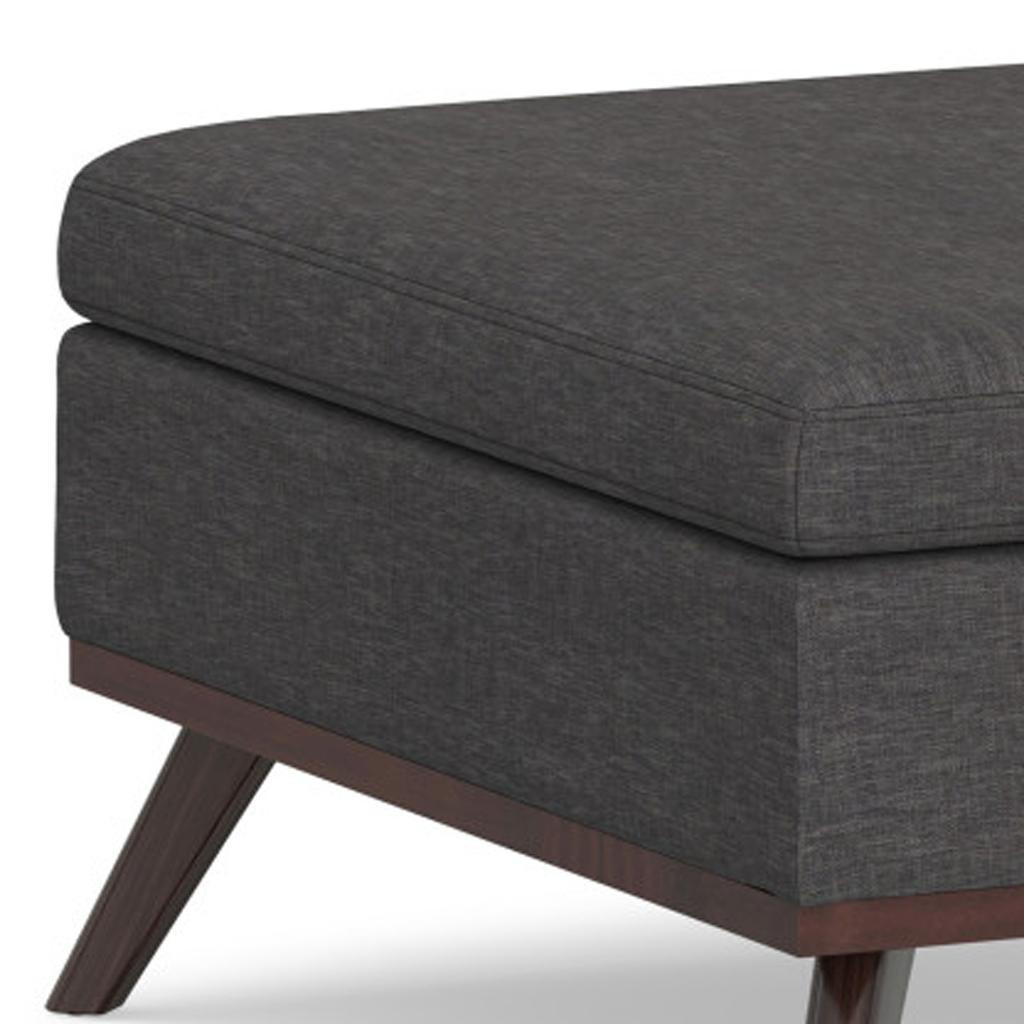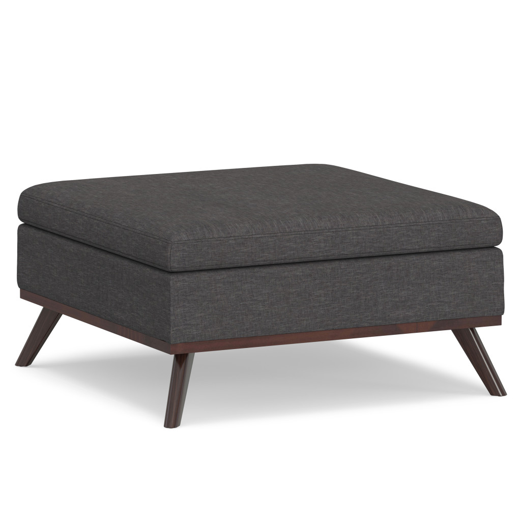 Get ready to relax with this 36-inch gray and brown linen cocktail ottoman with storage. This chic cocktail ottoman is larger in size and designed to serve as a make-shift coffee table during parties. The surface is wide and flat which is not only suitable for a footrest or seat but also ready to hold trays of appetizers, drinks, or desserts. The upholstery top of this ottoman is a nice contrast to the upholstery material. Expertly upholstered with padding in a soft solid color linen, this ottoman is as comfortable as it is good looking. Ottomans are multi-functional additions to your space that add fashion and practical value. 19.30-inch h x 36.00-inch w x 36.00-inch d.