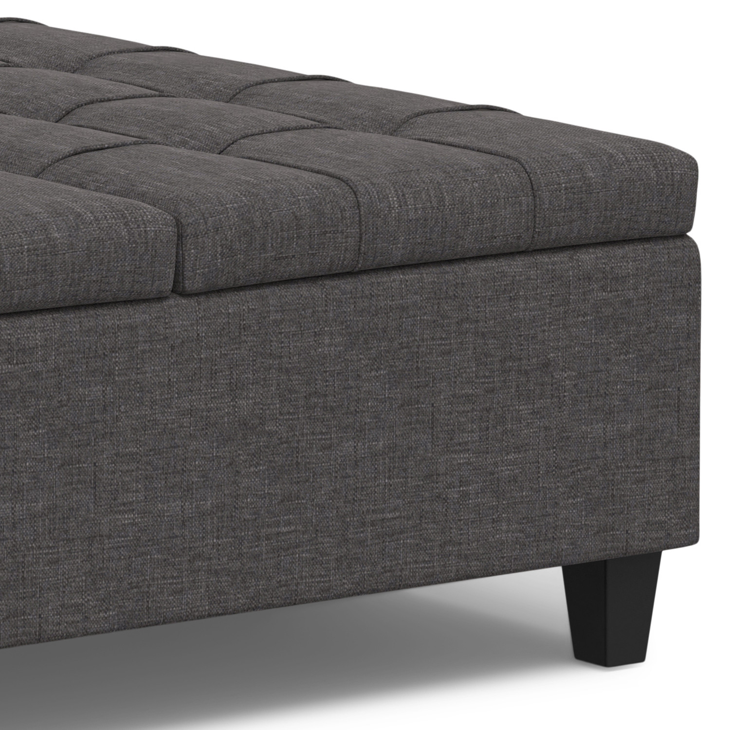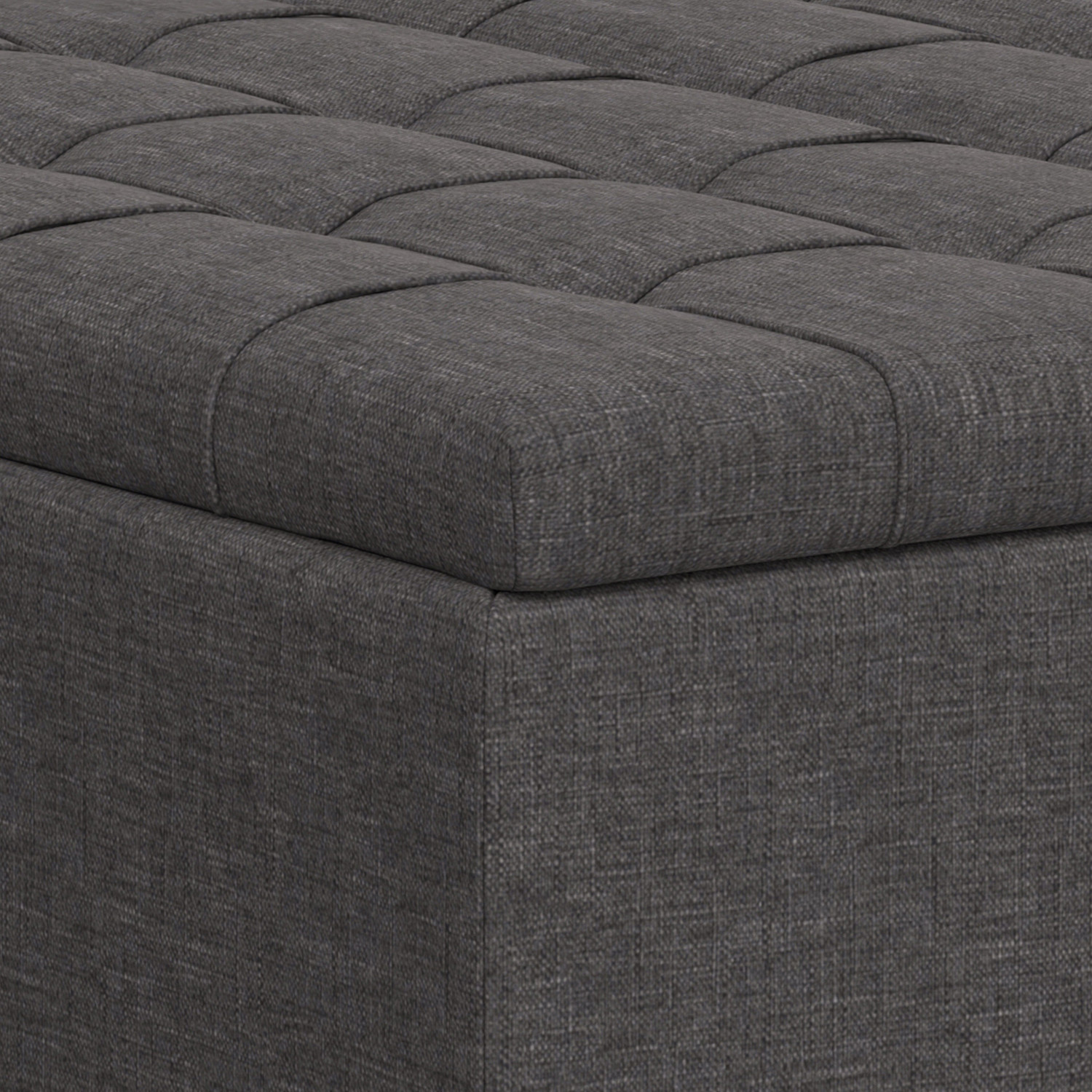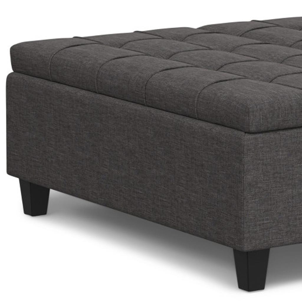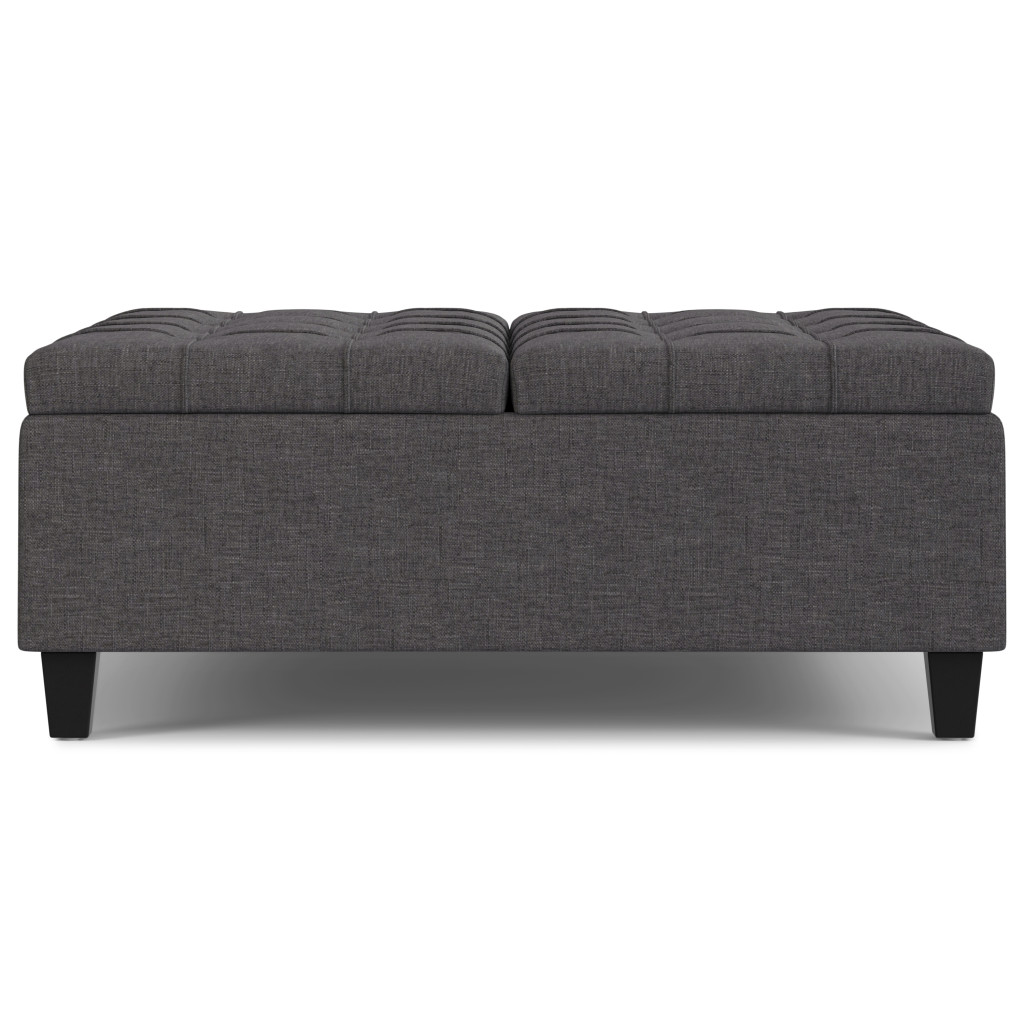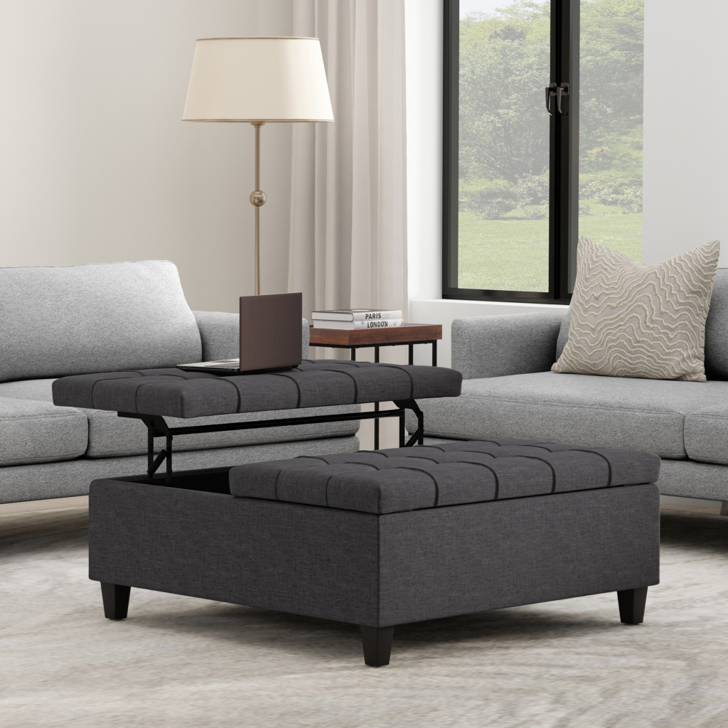 Optimize your space and add some charm to your room with the 40-inch gray and brown fabric cocktail ottoman with storage. This chic cocktail ottoman is larger in size and designed to serve as a make-shift coffee table during parties. The surface is wide and flat which is not only suitable for a footrest or seat but also ready to hold trays of appetizers, drinks, or desserts. The upholstery top of this ottoman is a nice contrast to the upholstery material. Expertly upholstered with padding in a soft solid color polyester, this ottoman is as comfortable as it is good looking. Easy to blend into most any room, a ottoman is a way to add a good looking accent to your space that can also be practical and useful. 16.50-inch h x 40.00-inch w x 40.00-inch d.