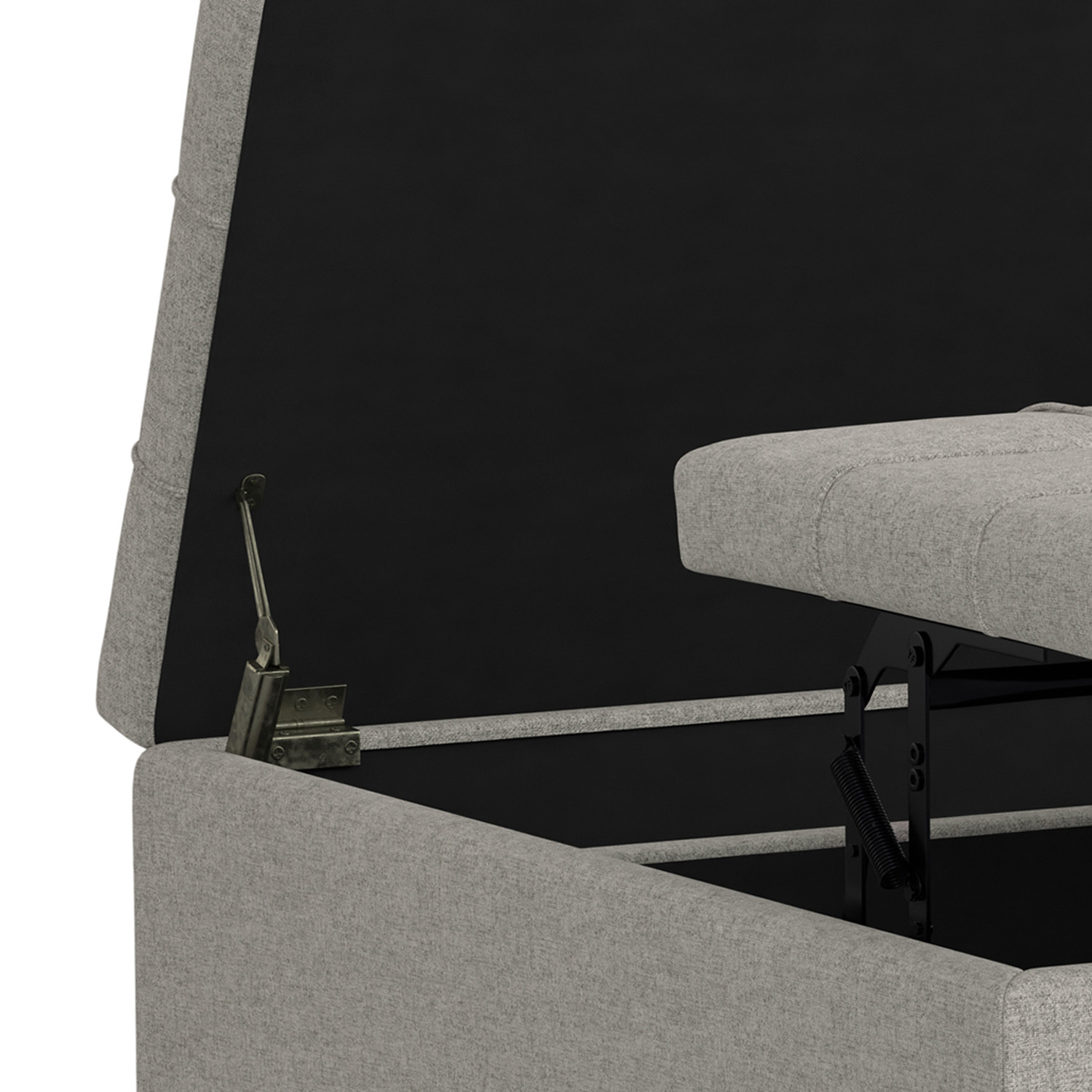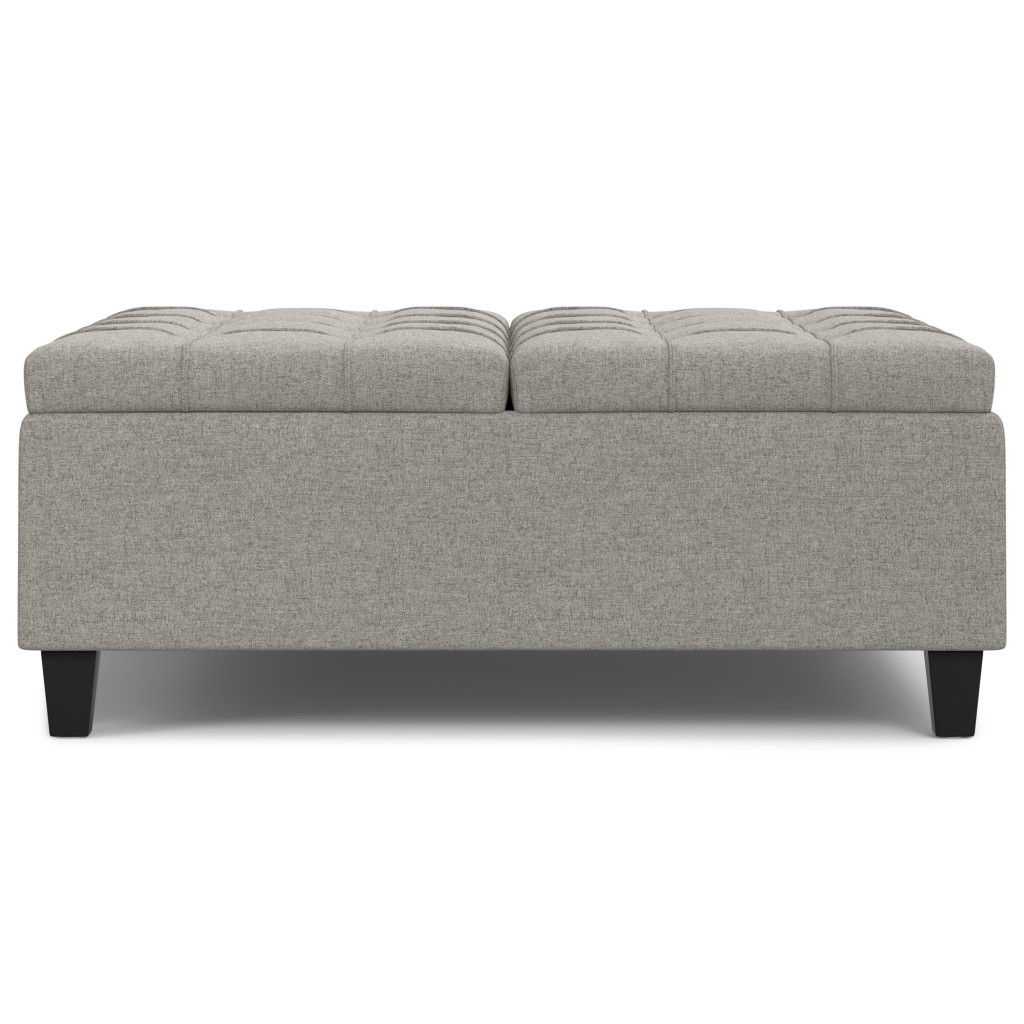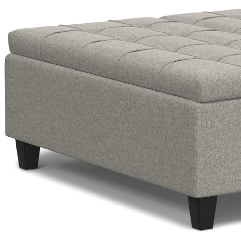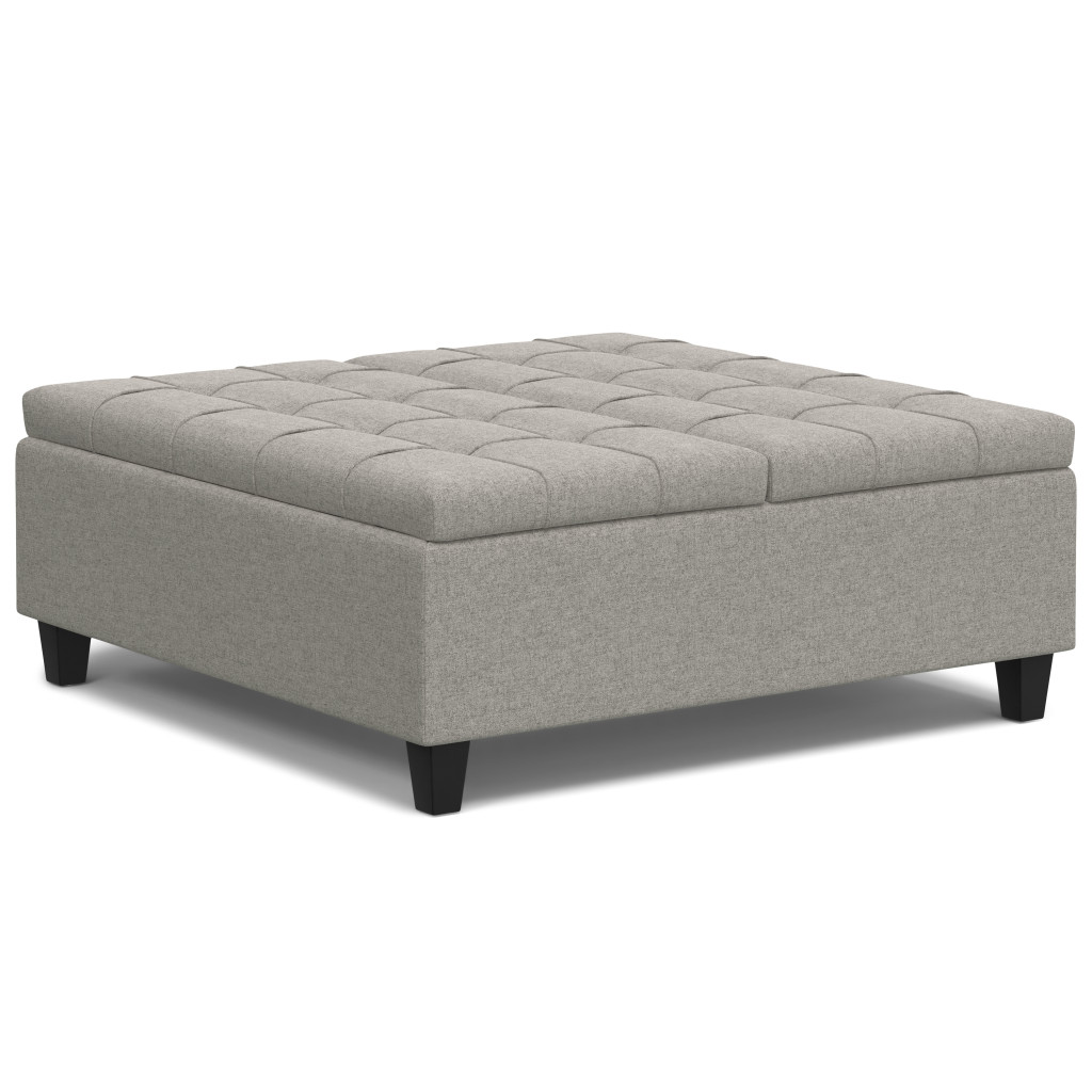 Get ready to relax with this 40-inch gray and brown fabric cocktail ottoman with storage. This chic cocktail ottoman is larger in size and designed to serve as a make-shift coffee table during parties. The surface is wide and flat which is not only suitable for a footrest or seat but also ready to hold trays of appetizers, drinks, or desserts. The upholstery top of this ottoman is a nice contrast to the upholstery material. Expertly upholstered with padding in a soft solid color polyester, this ottoman is as comfortable as it is good looking. Easy to blend into most any room, a ottoman is a way to add a good looking accent to your space that can also be practical and useful. 16.50-inch h x 40.00-inch w x 40.00-inch d.