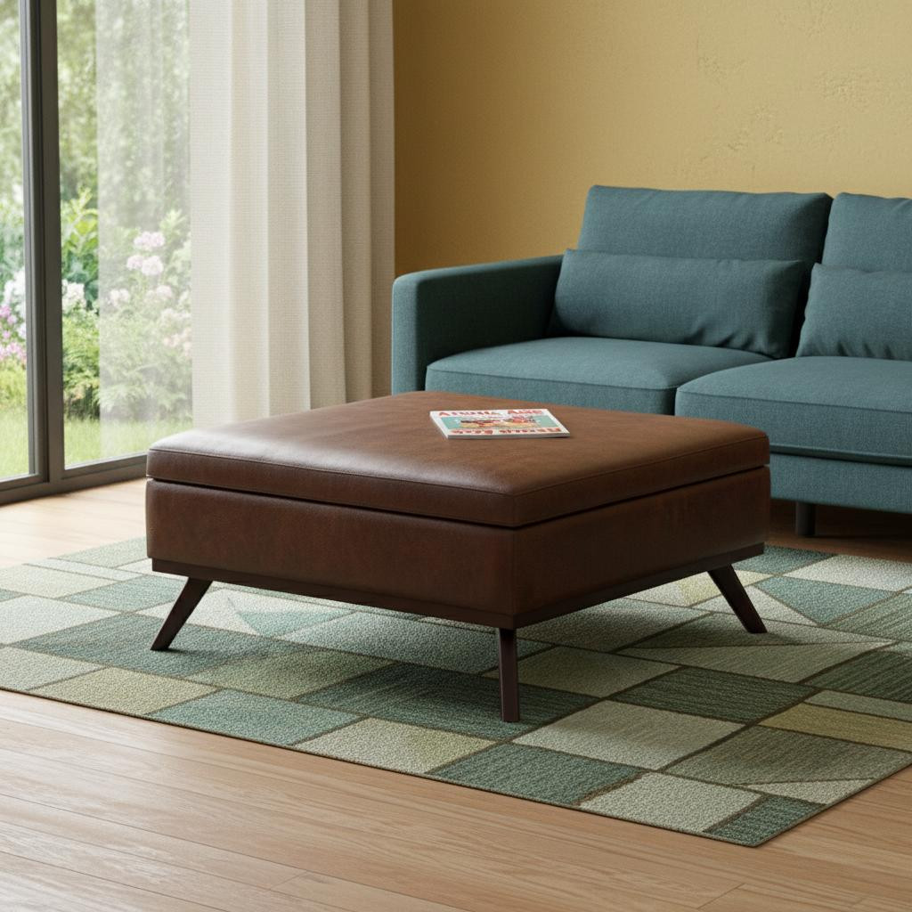 brown leather cocktail ottoman storage, 36" brown leather cocktail ottoman, leather cocktail ottoman storage, brown leather cocktail ottoman, cocktail ottoman storage |