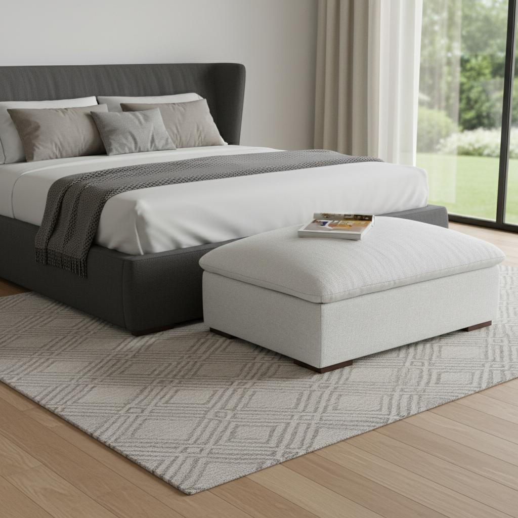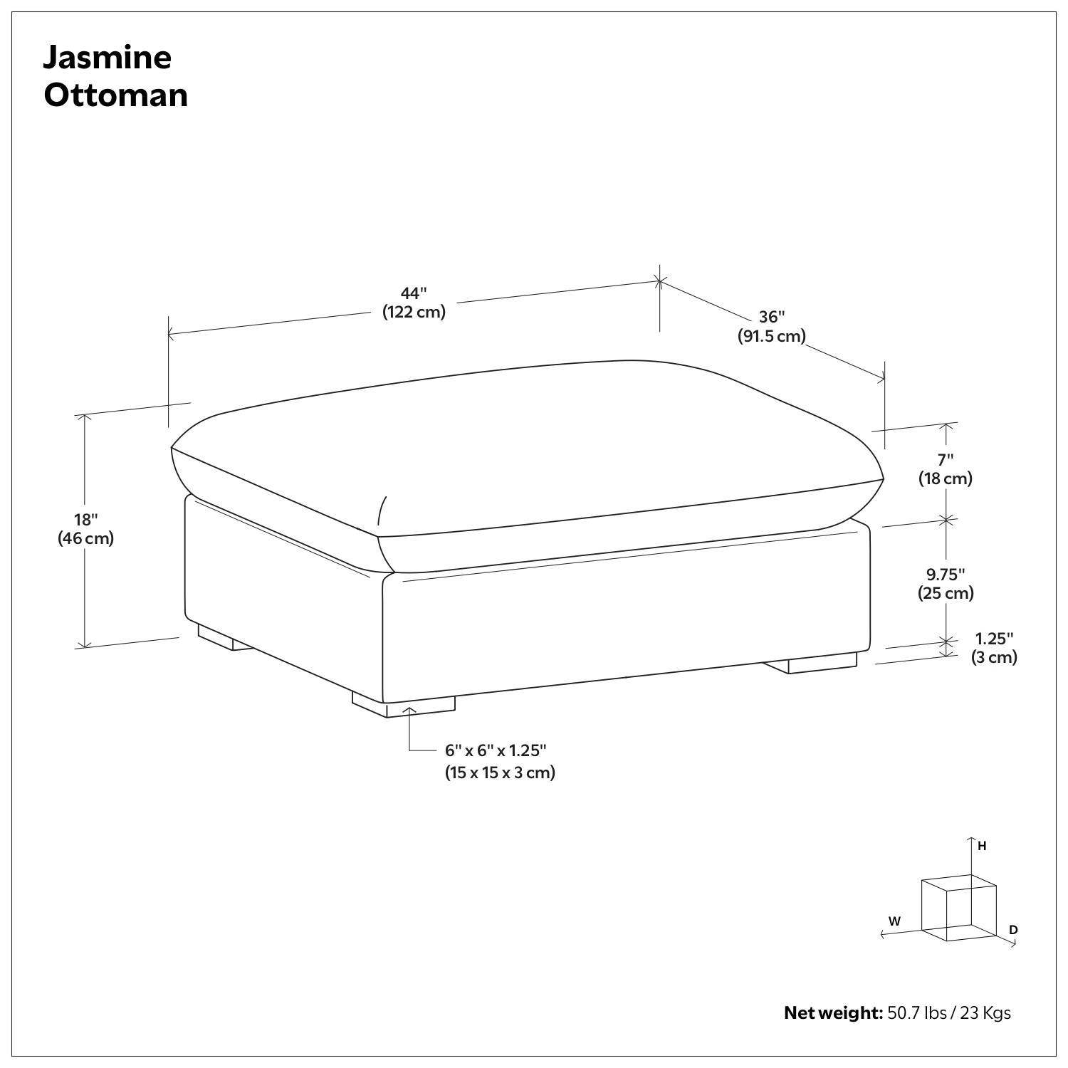 Add a good looking decorative accent to your space that is also practical for seating. The upholstery top of this ottoman is a nice contrast to the upholstery material. Expertly upholstered with padding in a soft solid color fabric, this ottoman is as comfortable as it is good looking. Ottomans are multi-functional additions to your space that add fashion and practical value. 18.00-inch h x 44.00-inch w x 36.00-inch d.