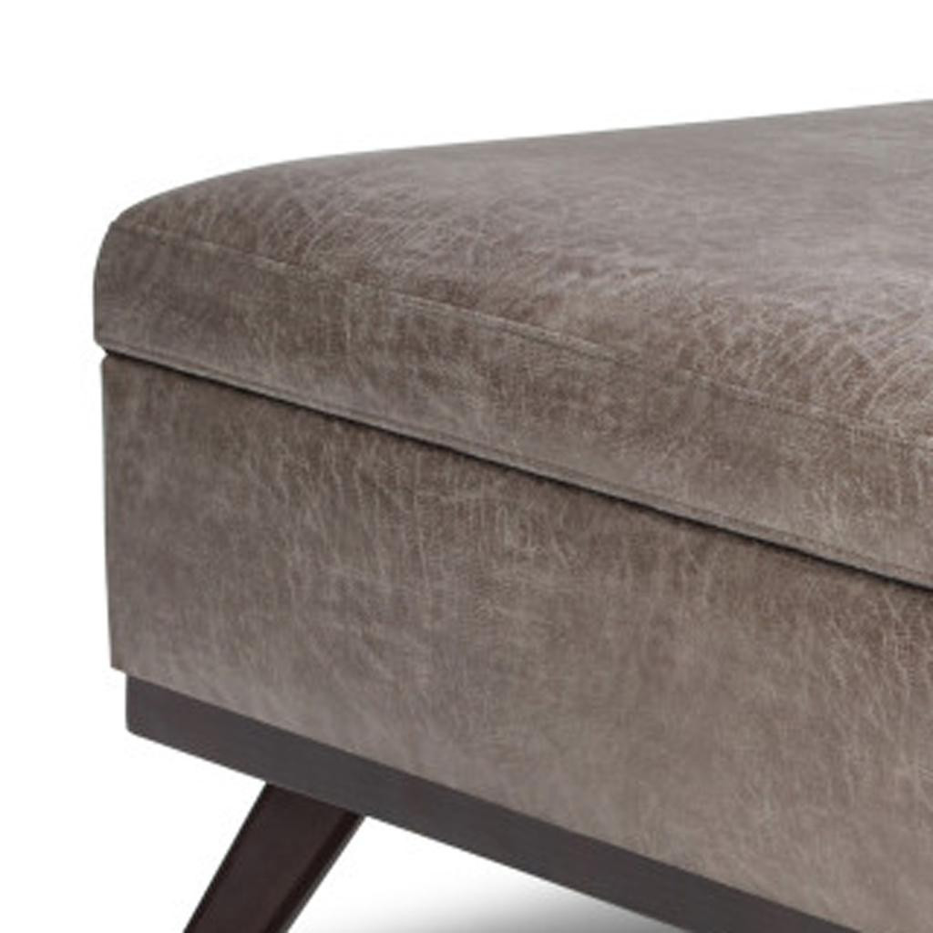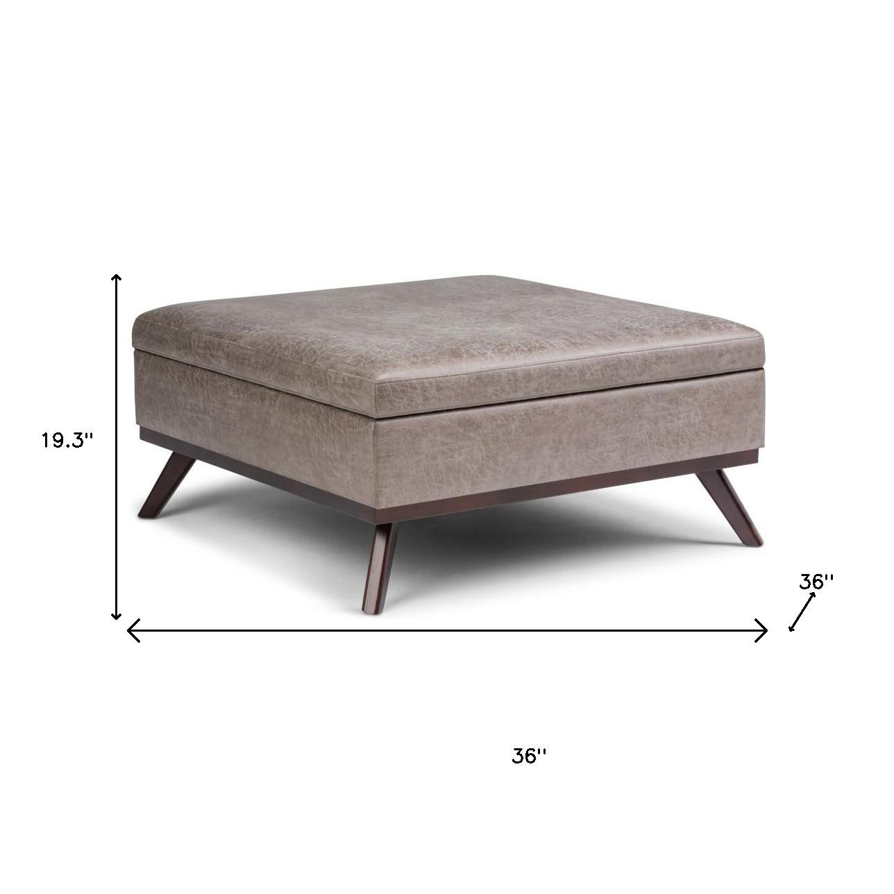 Optimize your space and add some charm to your room with the 36-inch gray and brown leather cocktail ottoman with storage. This chic cocktail ottoman is larger in size and designed to serve as a make-shift coffee table during parties. The surface is wide and flat which is not only suitable for a footrest or seat but also ready to hold trays of appetizers, drinks, or desserts. The purposefully distressed finish gives this versatile ottoman an authentically rustic feel. Expertly upholstered with padding in a soft solid color leather, this ottoman is as comfortable as it is good looking. Easy to blend into most any room, a ottoman is a way to add a good looking accent to your space that can also be practical and useful. 19.30-inch h x 36.00-inch w x 36.00-inch d.