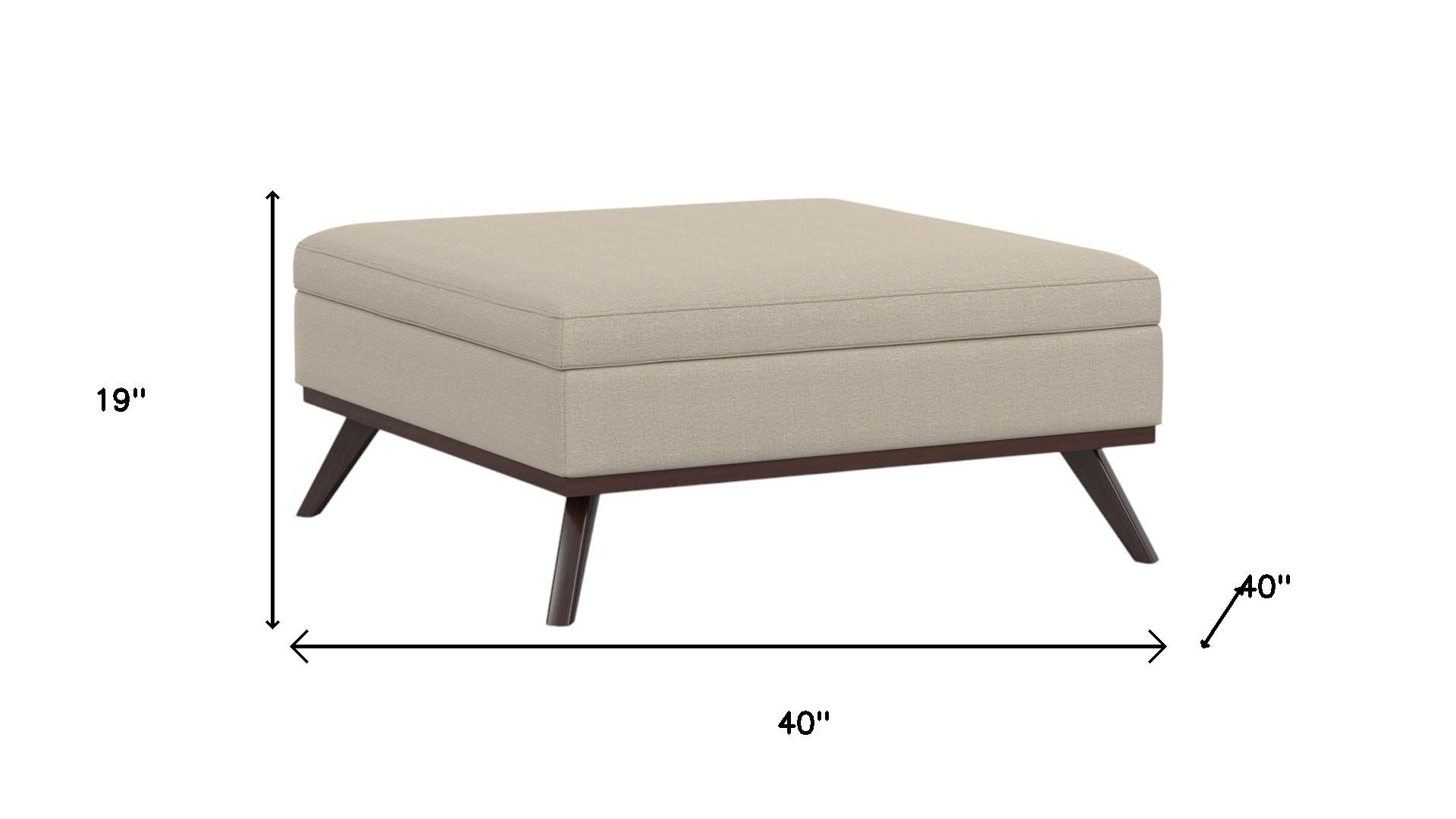 Practicality and fashion mix together with this handy 40-inch natural and brown fabric cocktail ottoman with storage. This chic cocktail ottoman is larger in size and designed to serve as a make-shift coffee table during parties. The surface is wide and flat which is not only suitable for a footrest or seat but also ready to hold trays of appetizers, drinks, or desserts. The upholstery top of this ottoman is a nice contrast to the upholstery material. Expertly upholstered with padding in a soft solid color polyester, this ottoman is as comfortable as it is good looking. Ottomans are multi-functional additions to your space that add fashion and practical value. 19.00-inch h x 40.00-inch w x 40.00-inch d.