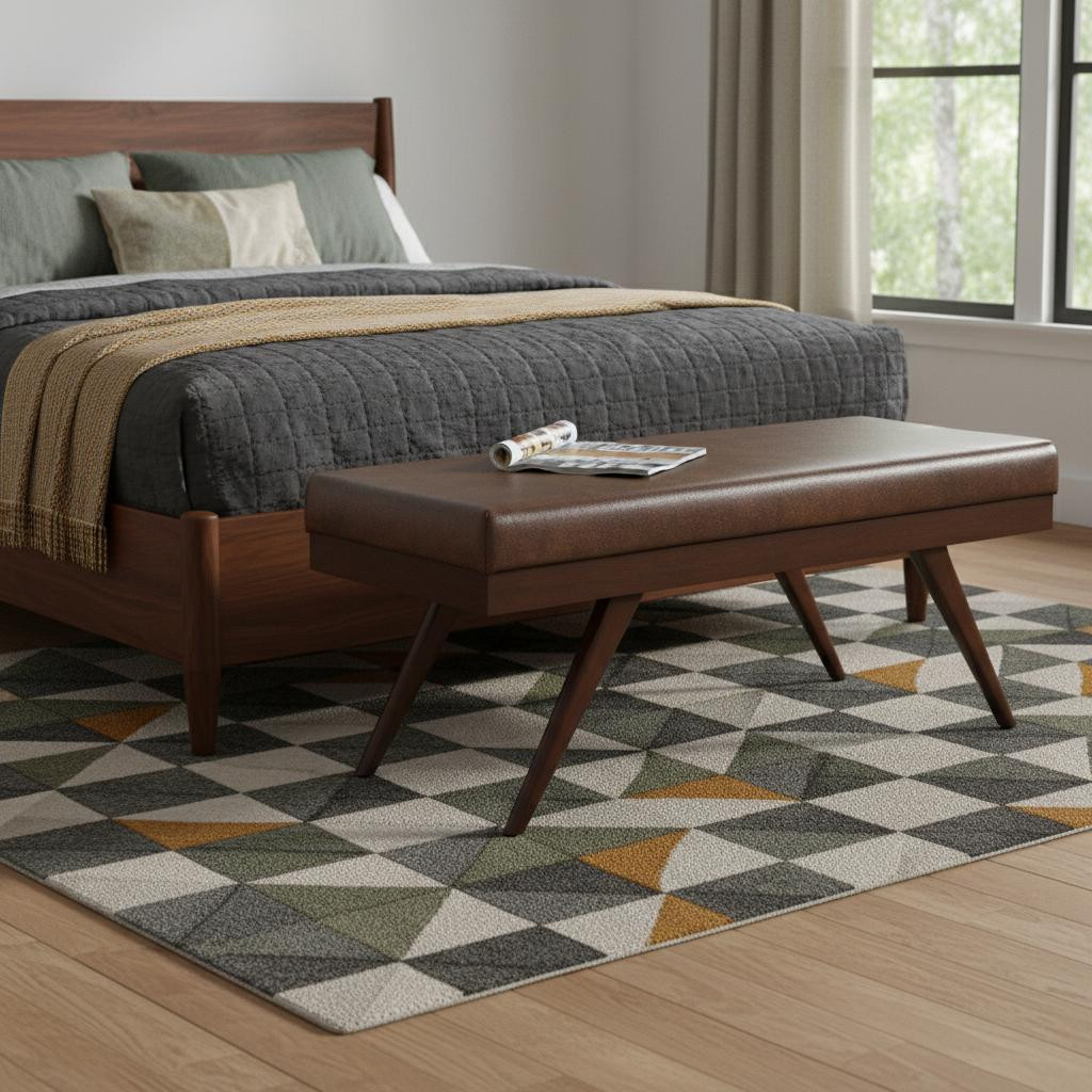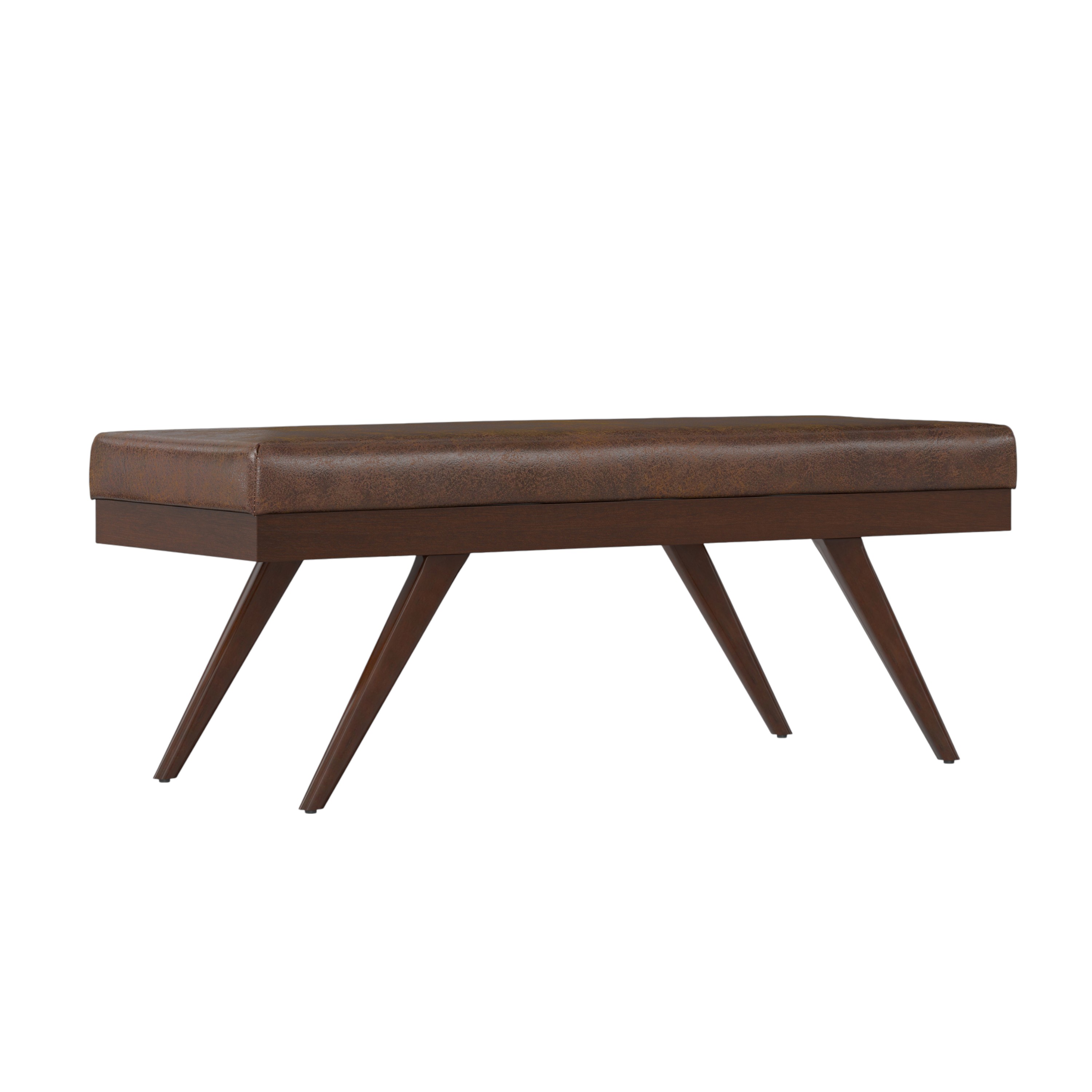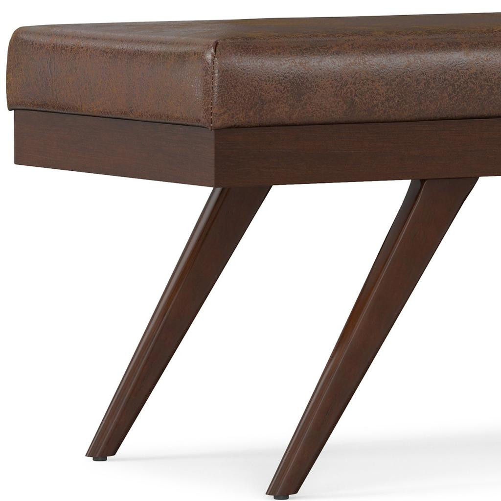 Add a good looking decorative accent to your space that is also practical for seating. The upholstery top of this ottoman is a nice contrast to the upholstery material. A brown monotone coloration gives this solid wood and upholstery ottoman a fresh and updated look. Expertly upholstered with padding in a soft solid color leather, this ottoman is as comfortable as it is good looking. Easy to blend into most any room, a ottoman is a way to add a good looking accent to your space that can also be practical and useful. 18.30-inch h x 47.80-inch w x 18.50-inch d.