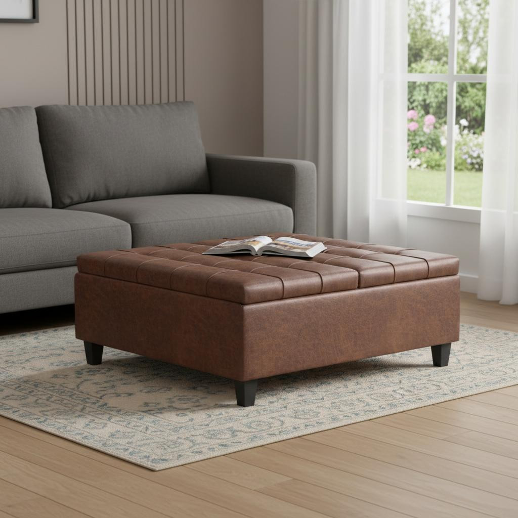 brown leather cocktail ottoman storage, 40" brown leather cocktail ottoman, leather cocktail ottoman storage, brown leather cocktail ottoman, cocktail ottoman storage |