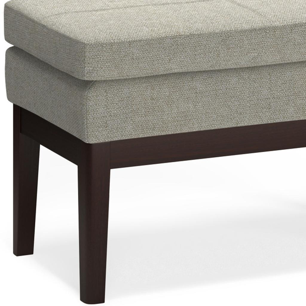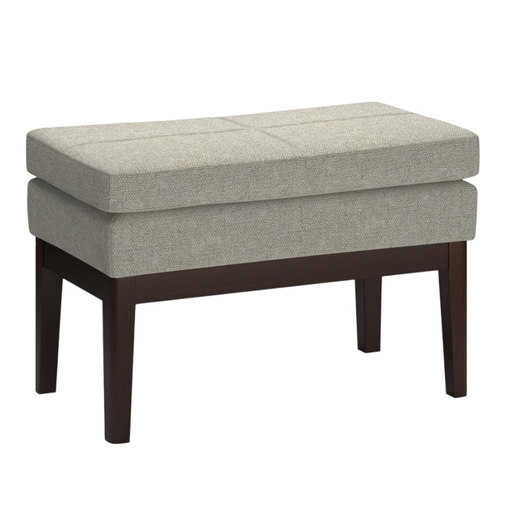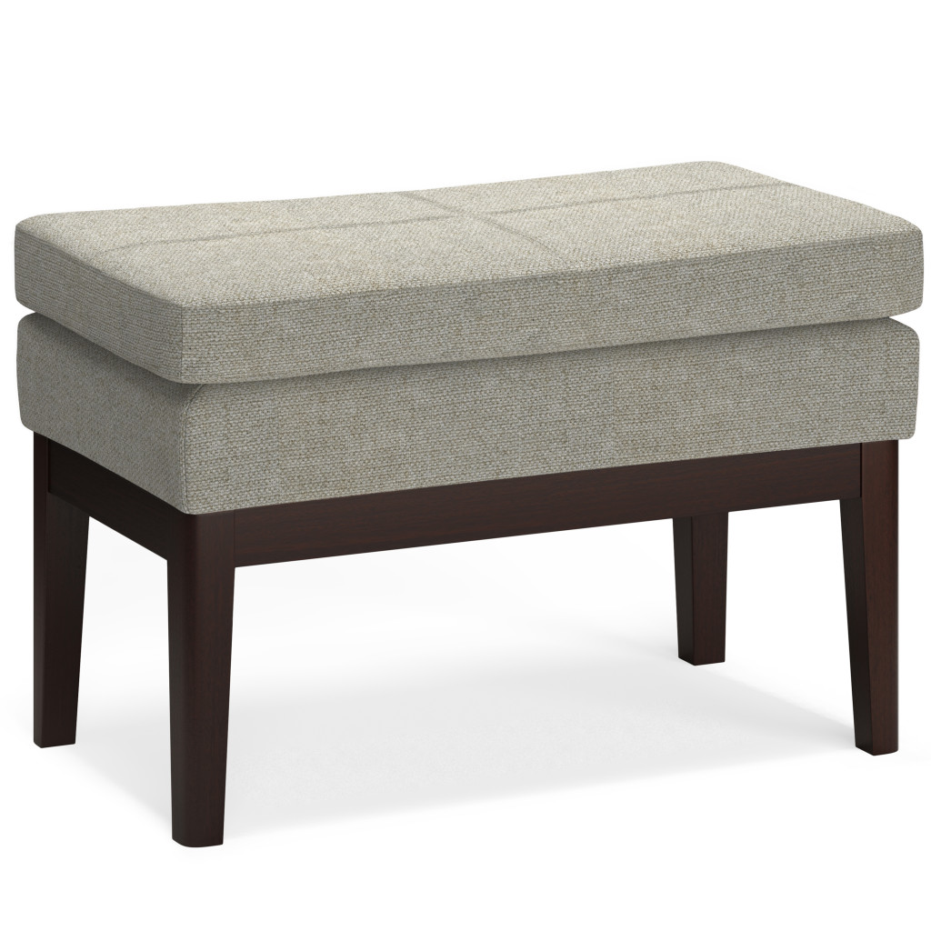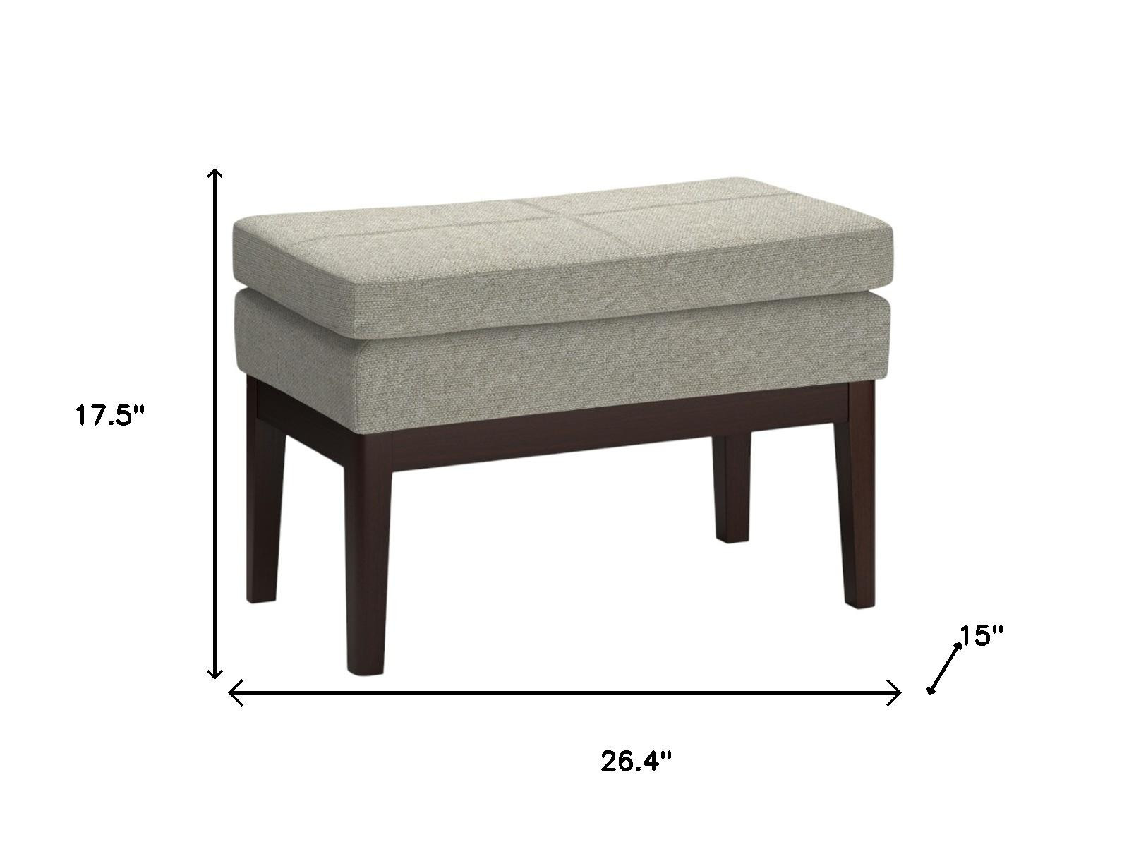Practicality and fashion mix together with this handy 26-inch gray and dark brown fabric ottoman. The upholstery top of this ottoman is a nice contrast to the upholstery material. Expertly upholstered with padding in a soft solid color polyester, this ottoman is as comfortable as it is good looking. Easy to blend into most any room, a ottoman is a way to add a good looking accent to your space that can also be practical and useful. 17.50-inch h x 26.40-inch w x 15.00-inch d.