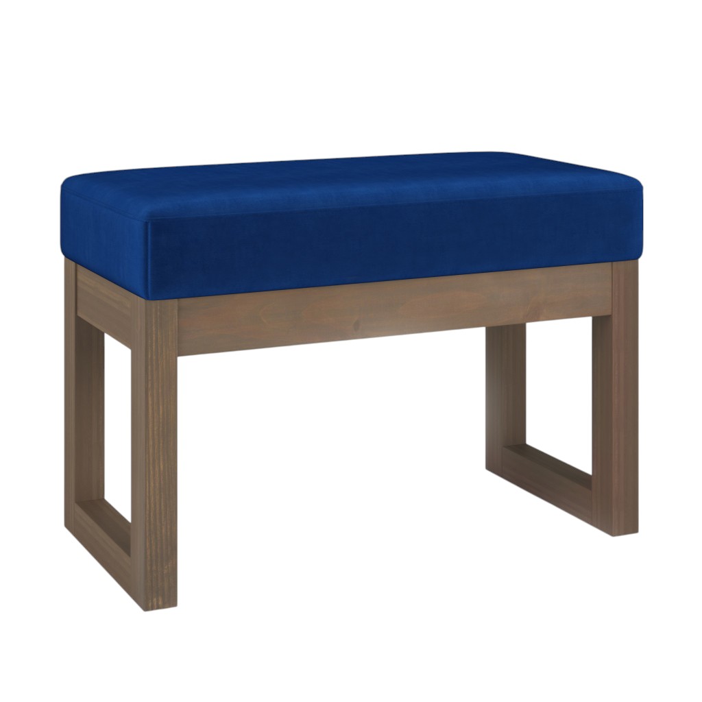 Get ready to relax with this 27-inch blue and brown velvet footstool. This footstool is a treasure at the end of the day as an ideal place to rest your feet and legs and can also be used for extra seating when needed in a pinch. The upholstery top of this ottoman is a nice contrast to the upholstery material. Expertly upholstered with padding in a soft solid color velvet, this ottoman is as comfortable as it is good looking. Ottomans are multi-functional additions to your space that add fashion and practical value. 18.30-inch h x 26.80-inch w x 14.40-inch d.