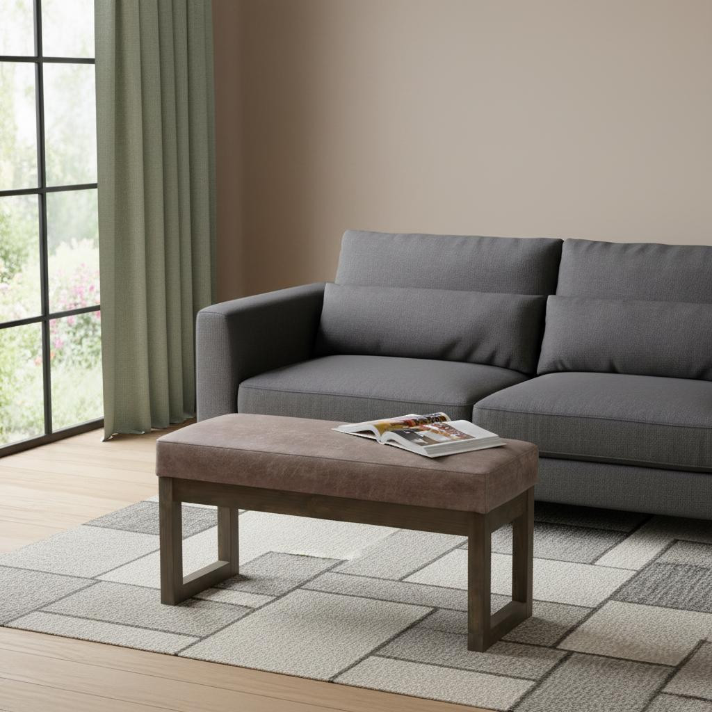 gray dark brown leather footstool, dark brown leather footstool, brown leather footstool, 27" gray dark brown leather, gray dark brown leather |