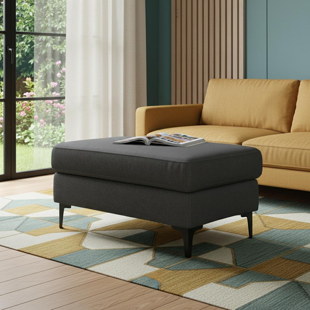 36" gray black fabric ottoman, gray black fabric ottoman, black fabric ottoman, 36" gray black fabric, gray black fabric |