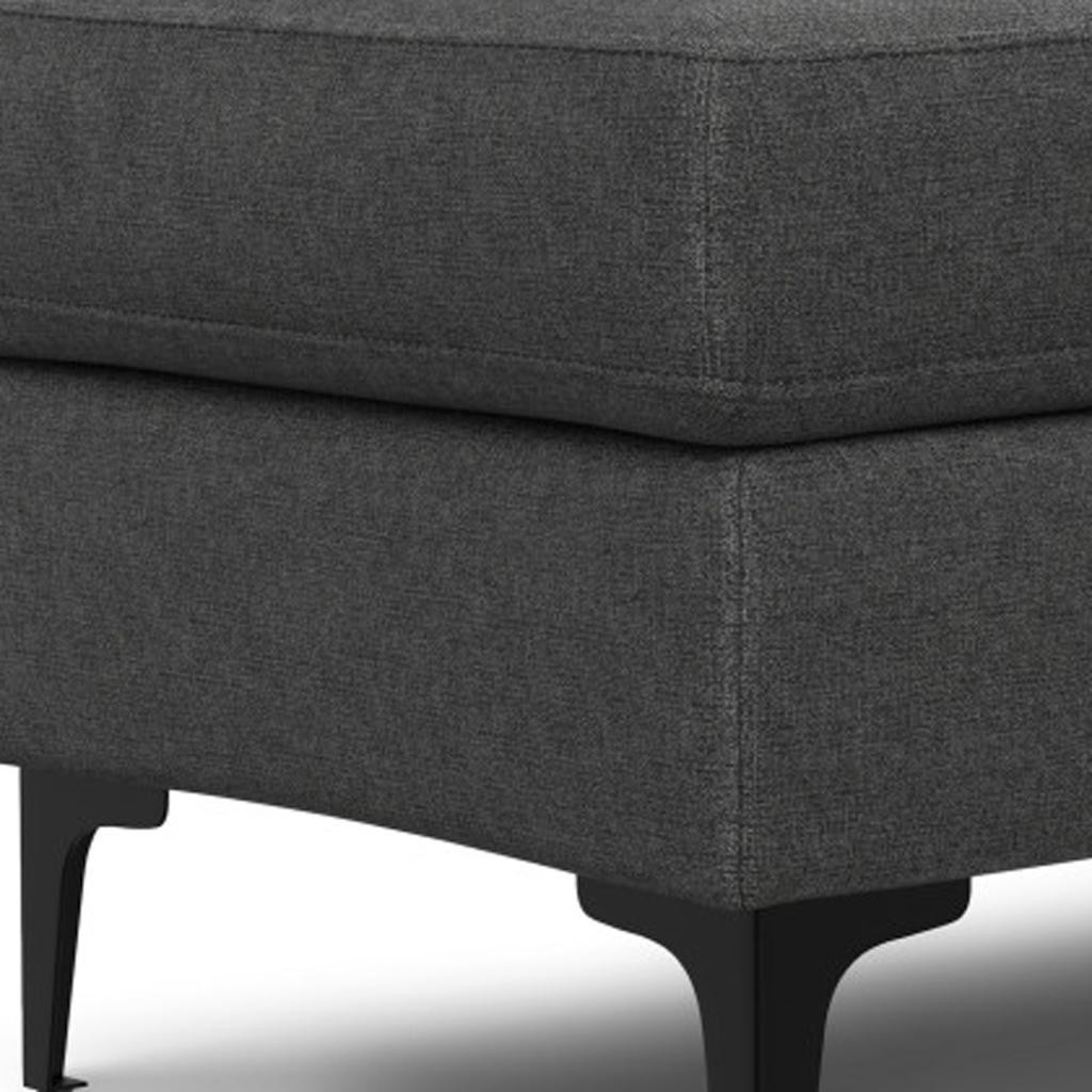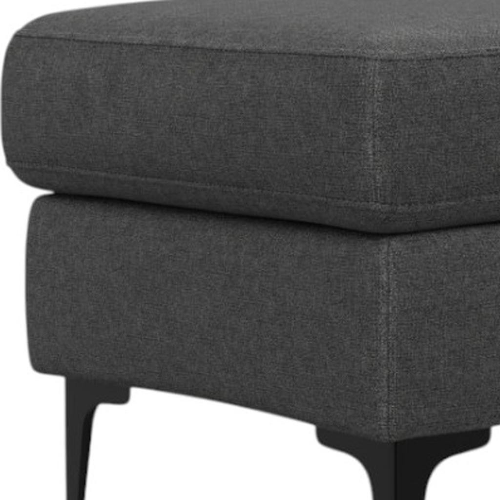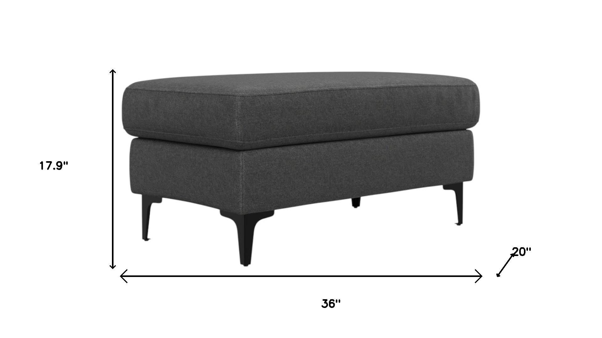 Optimize your space and add some charm to your room with the 36-inch gray and black fabric ottoman. The upholstery top of this ottoman is a nice contrast to the upholstery material. Expertly upholstered with padding in a soft solid color fabric, this ottoman is as comfortable as it is good looking. Easy to blend into most any room, a ottoman is a way to add a good looking accent to your space that can also be practical and useful. 17.90-inch h x 36.00-inch w x 20.00-inch d.