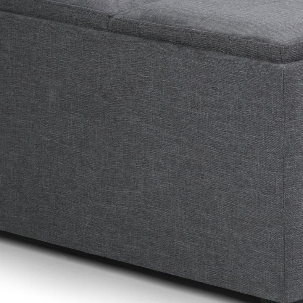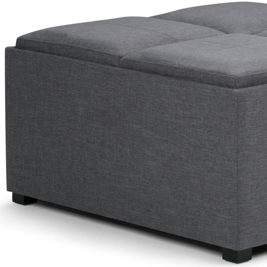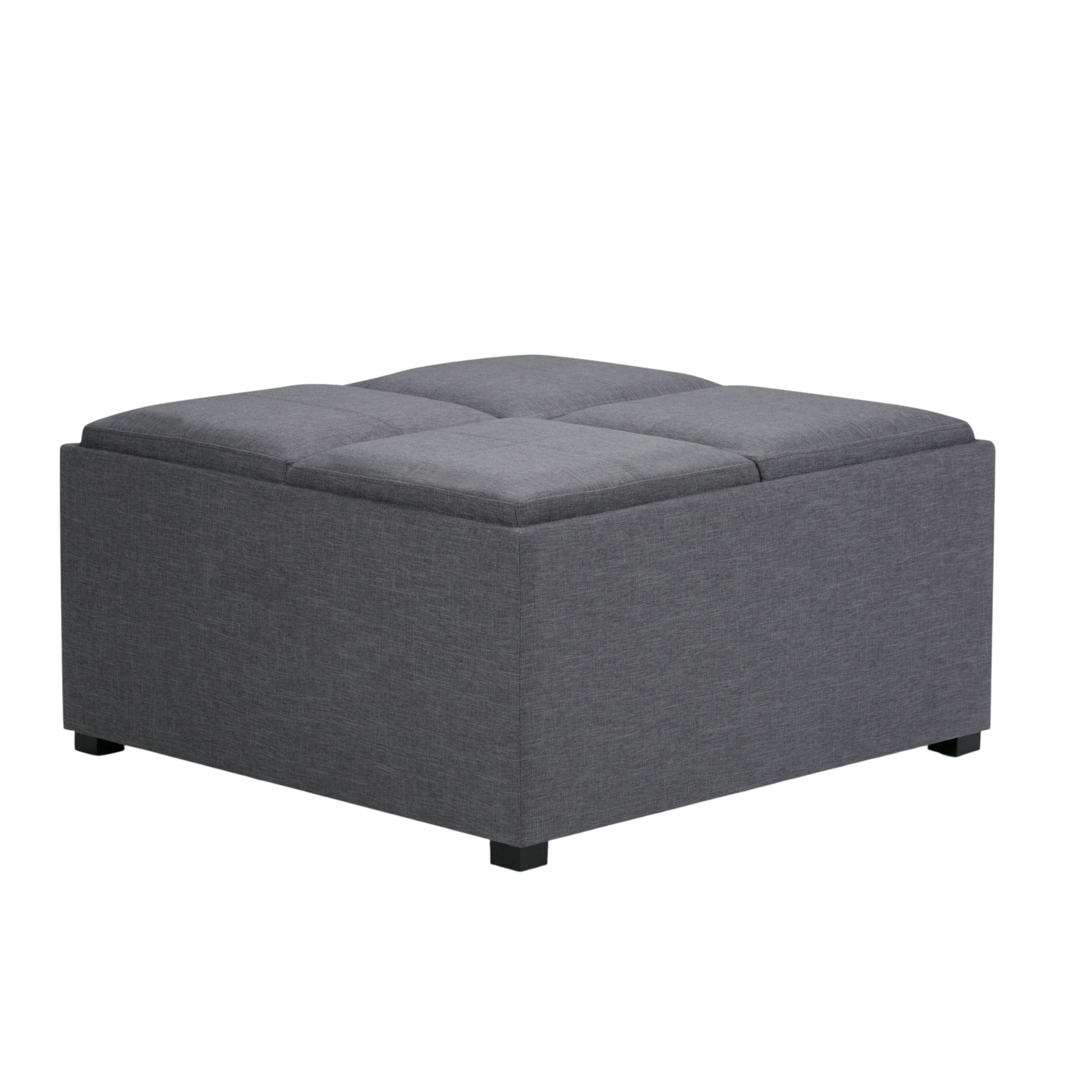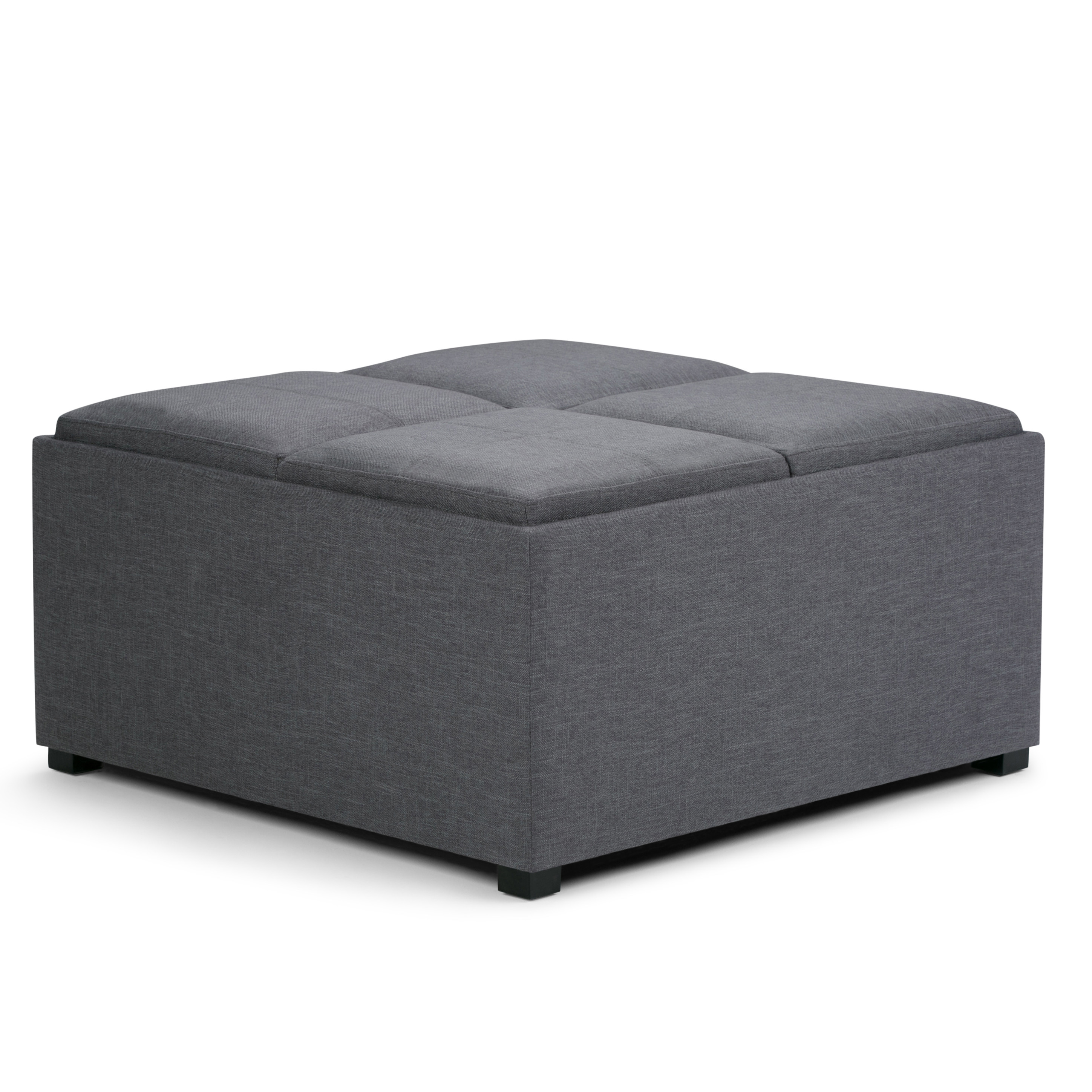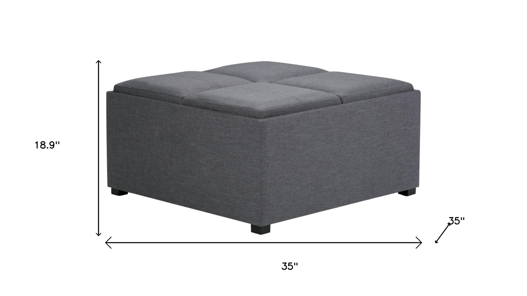 Avalon 35 inch Wide Contemporary Square Coffee Table Storage Ottoman in Slate Grey Linen Look Fabric, Assembled