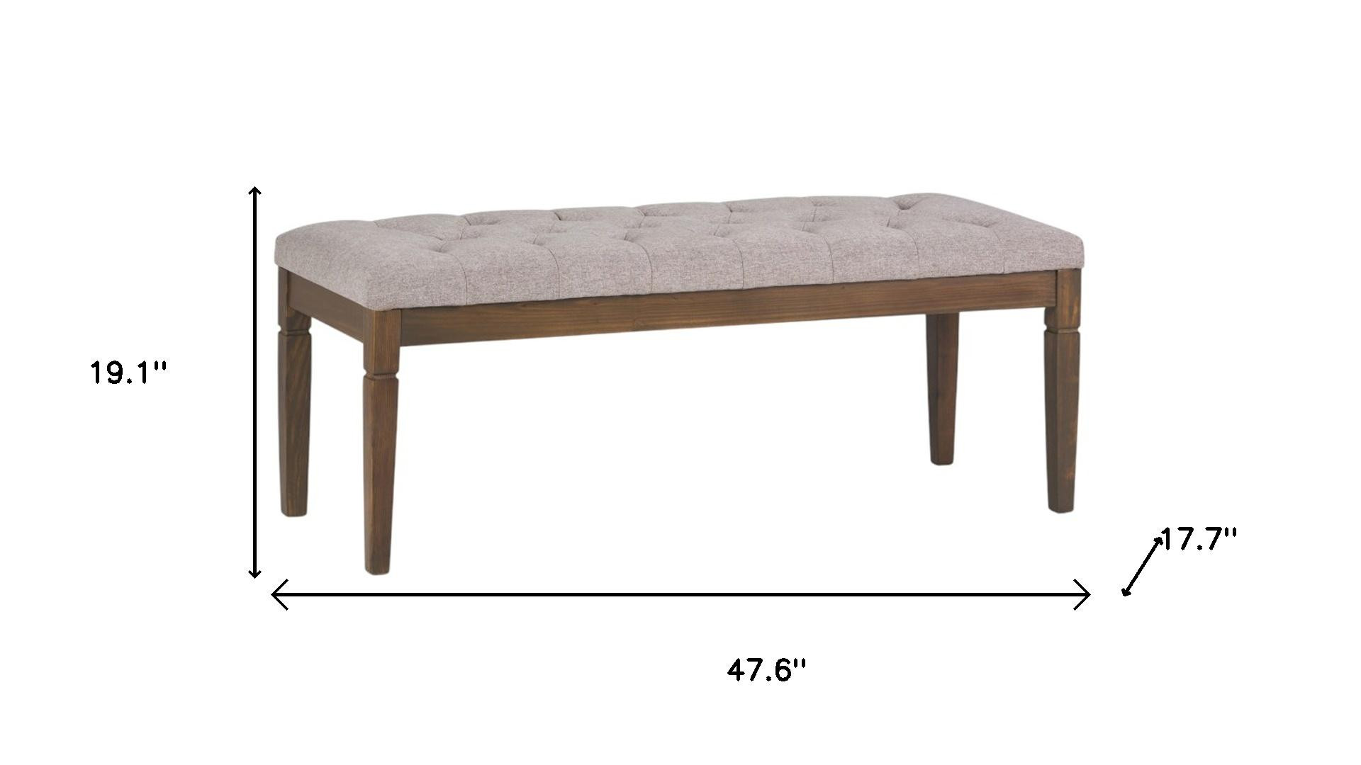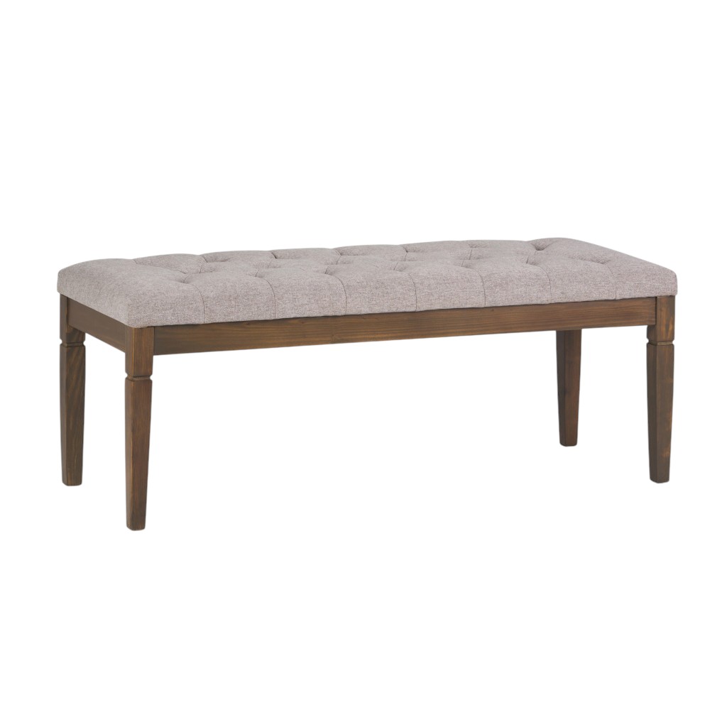 Optimize your space and add some charm to your room with the 48-inch gray and brown fabric ottoman. The upholstery top of this ottoman is a nice contrast to the upholstery material. Expertly upholstered with padding in a soft solid color polyester, this ottoman is as comfortable as it is good looking. Easy to blend into most any room, a ottoman is a way to add a good looking accent to your space that can also be practical and useful. 19.10-inch h x 47.60-inch w x 17.70-inch d.