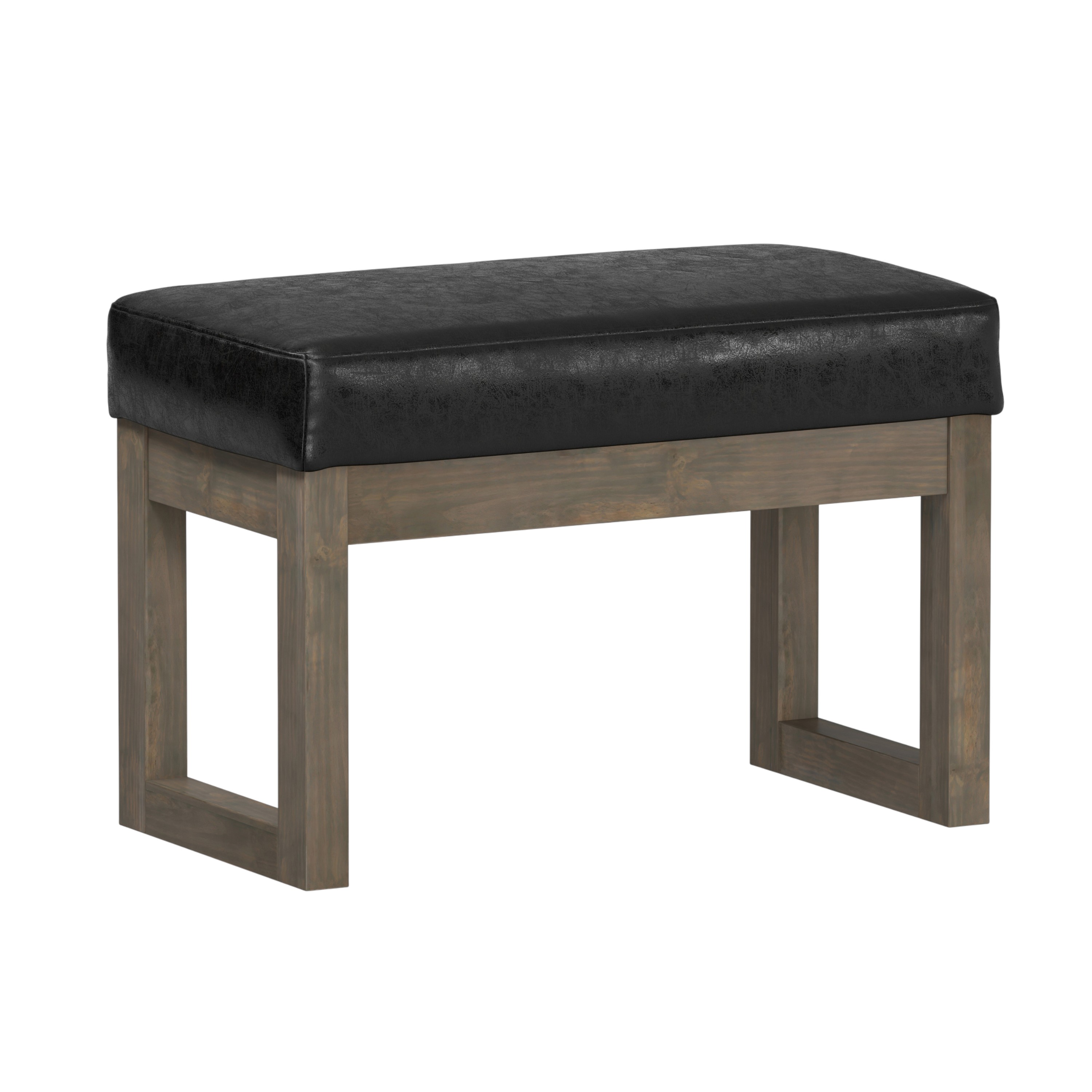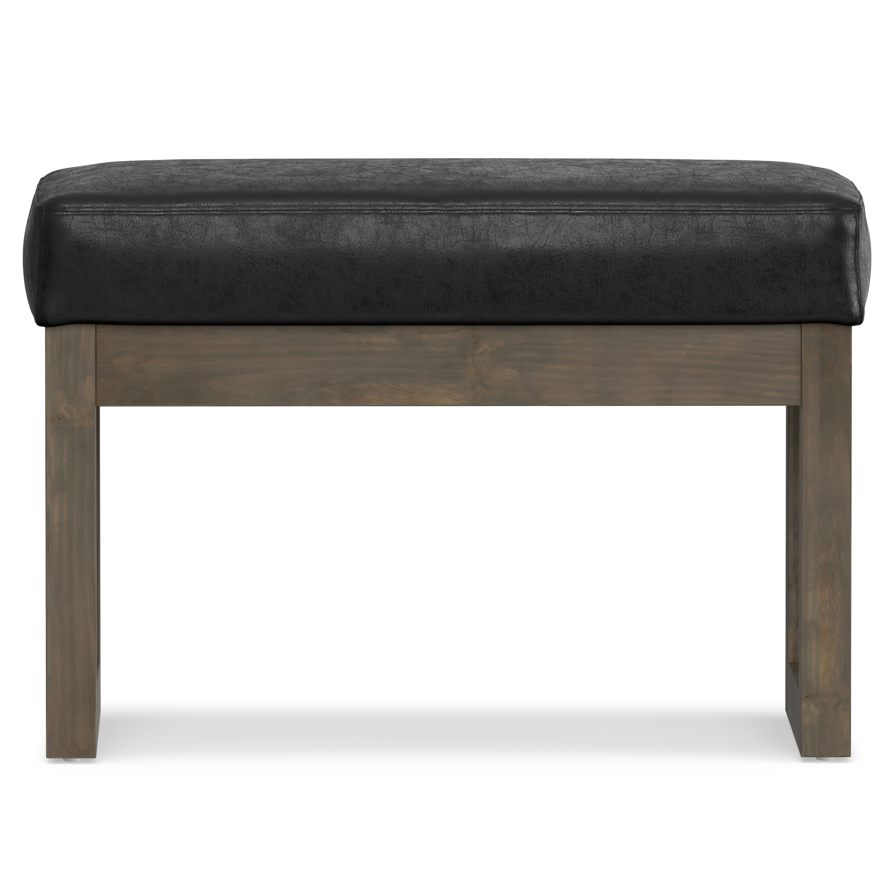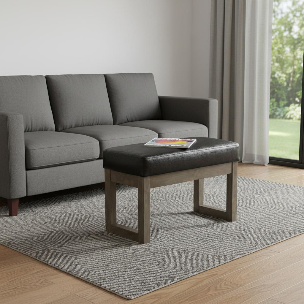 Get ready to relax with this 27-inch black and brown leather footstool. This footstool is a treasure at the end of the day as an ideal place to rest your feet and legs and can also be used for extra seating when needed in a pinch. The upholstery top of this ottoman is a nice contrast to the upholstery material. Complete with a purposefully distressed finish, this ottoman has an aged, vintage, and rustic feel. Expertly upholstered with padding in a soft solid color leather, this ottoman is as comfortable as it is good looking. Easy to blend into most any room, a ottoman is a way to add a good looking accent to your space that can also be practical and useful. 18.30-inch h x 26.80-inch w x 14.40-inch d.