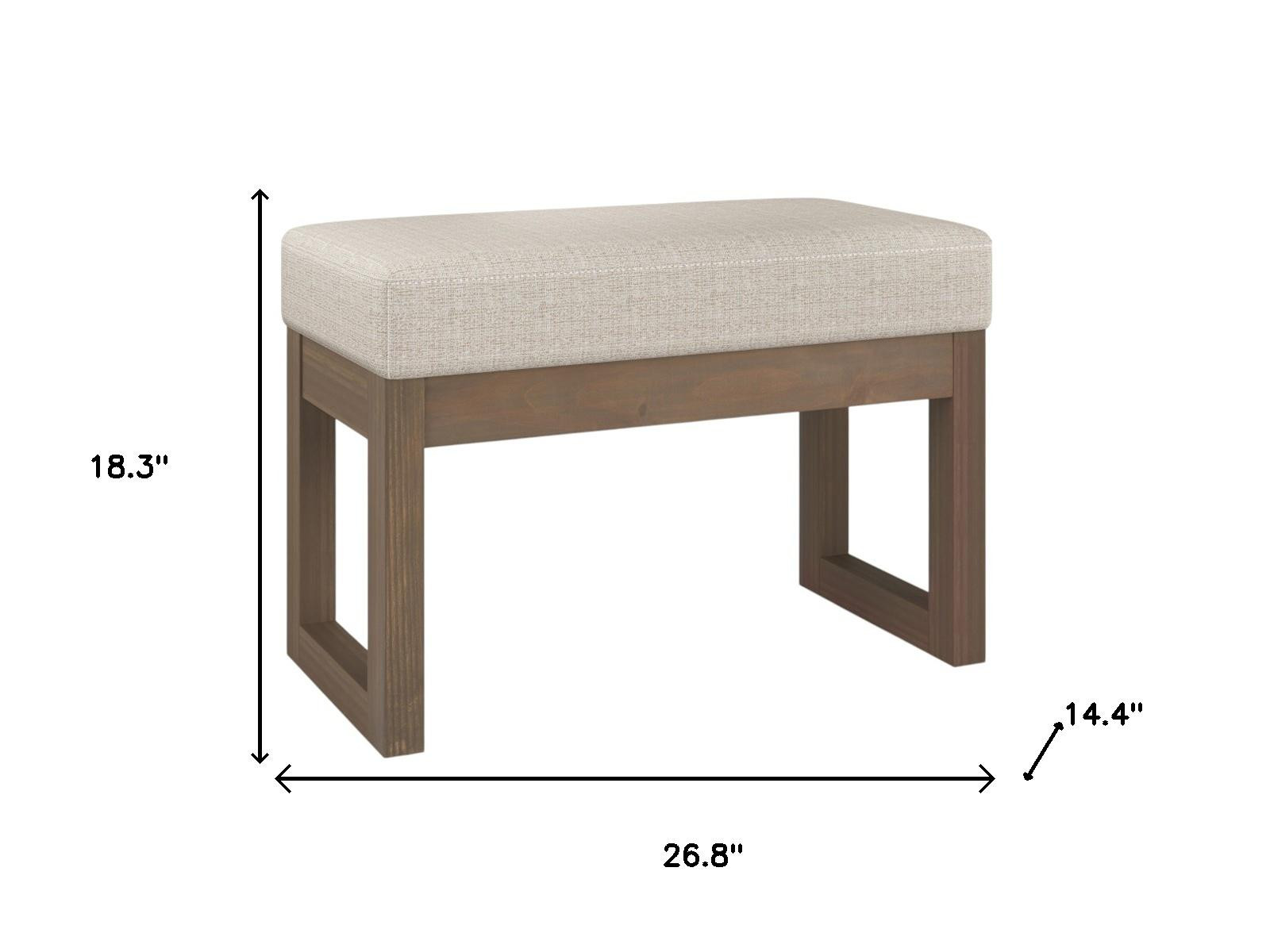 Optimize your space and add some charm to your room with the 27-inch platinum and brown fabric footstool. This footstool is a treasure at the end of the day as an ideal place to rest your feet and legs and can also be used for extra seating when needed in a pinch. The upholstery top of this ottoman is a nice contrast to the upholstery material. Expertly upholstered with padding in a soft solid color polyester, this ottoman is as comfortable as it is good looking. Ottomans are multi-functional additions to your space that add fashion and practical value. 18.30-inch h x 26.80-inch w x 14.40-inch d.