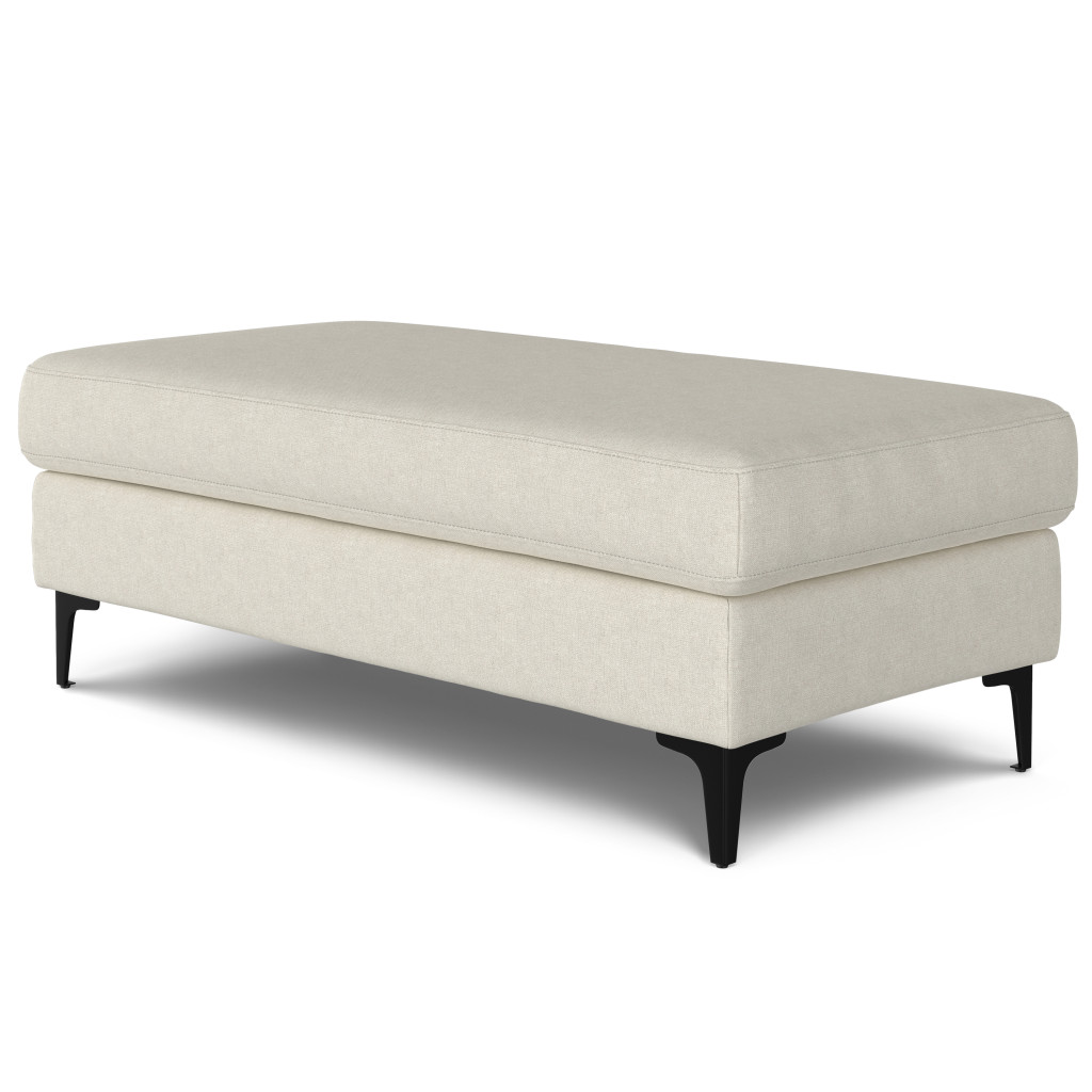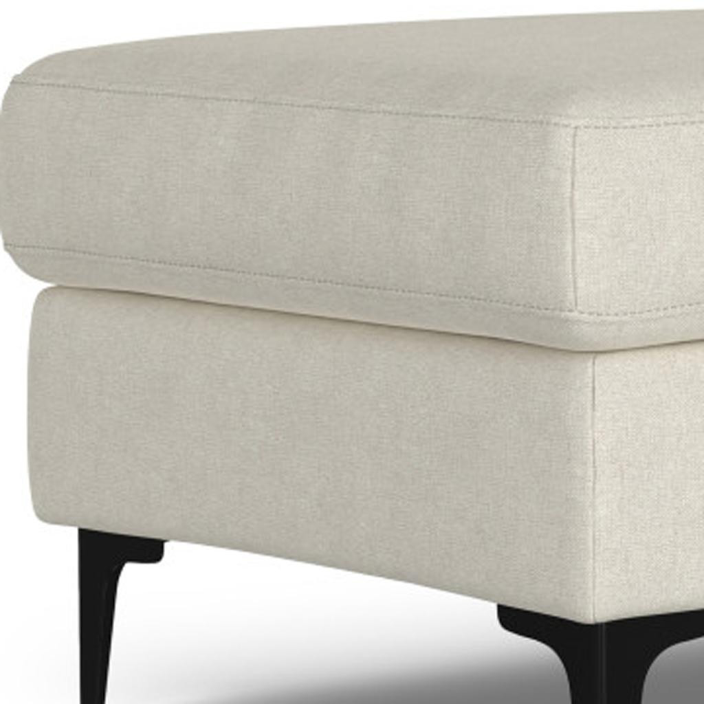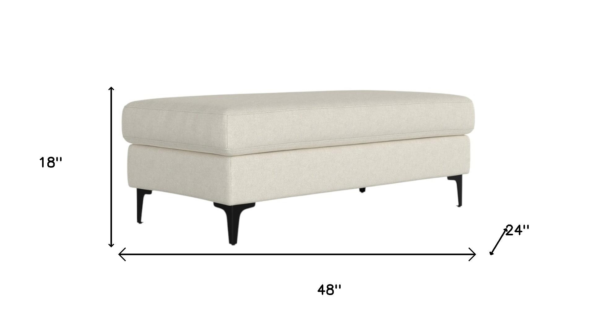 Practicality and fashion mix together with this handy 48-inch cream and black fabric ottoman. The upholstery top of this ottoman is a nice contrast to the upholstery material. Expertly upholstered with padding in a soft solid color fabric, this ottoman is as comfortable as it is good looking. Easy to blend into most any room, a ottoman is a way to add a good looking accent to your space that can also be practical and useful. 18.00-inch h x 48.00-inch w x 24.00-inch d.