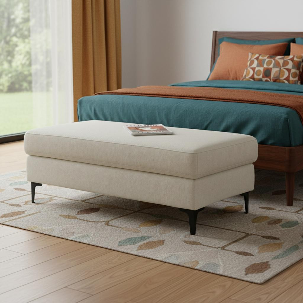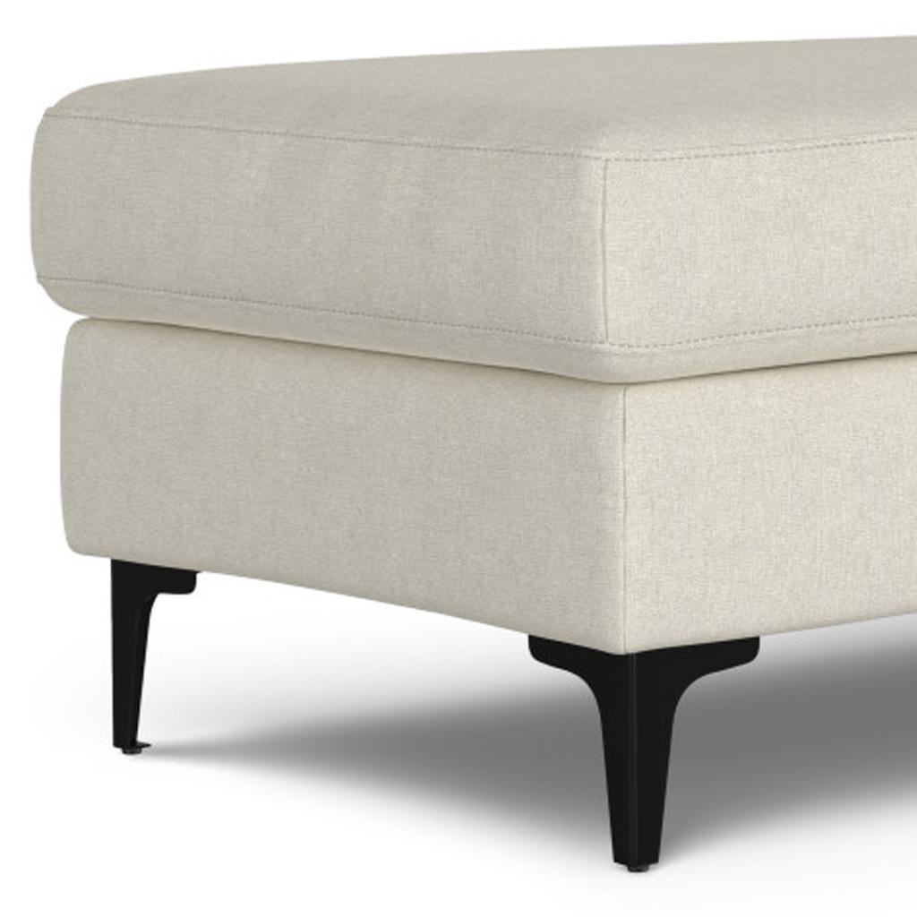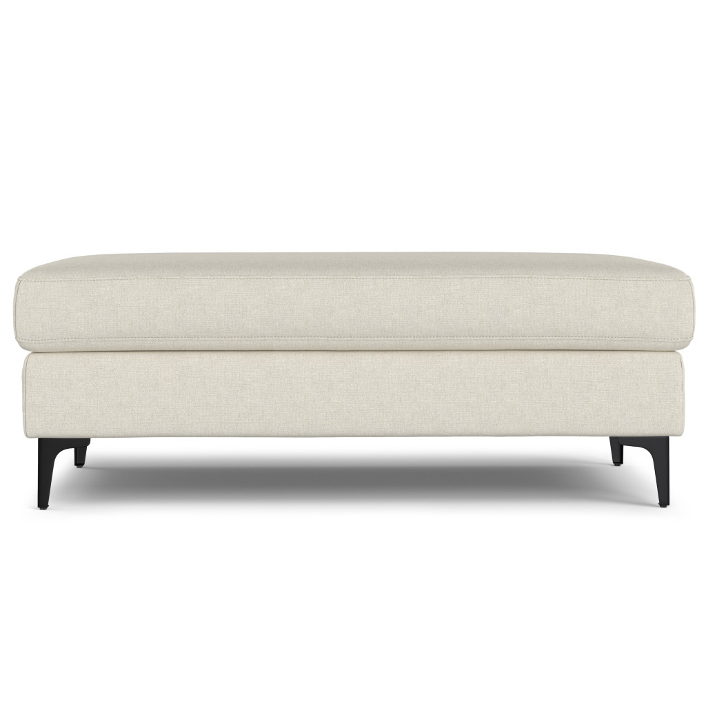 Practicality and fashion mix together with this handy 48-inch cream and black fabric ottoman. The upholstery top of this ottoman is a nice contrast to the upholstery material. Expertly upholstered with padding in a soft solid color fabric, this ottoman is as comfortable as it is good looking. Easy to blend into most any room, a ottoman is a way to add a good looking accent to your space that can also be practical and useful. 18.00-inch h x 48.00-inch w x 24.00-inch d.